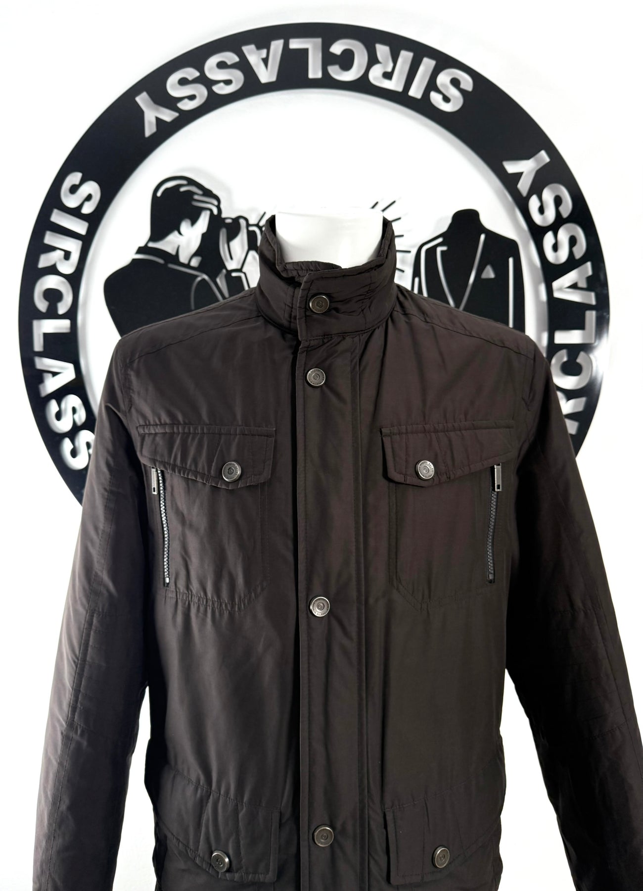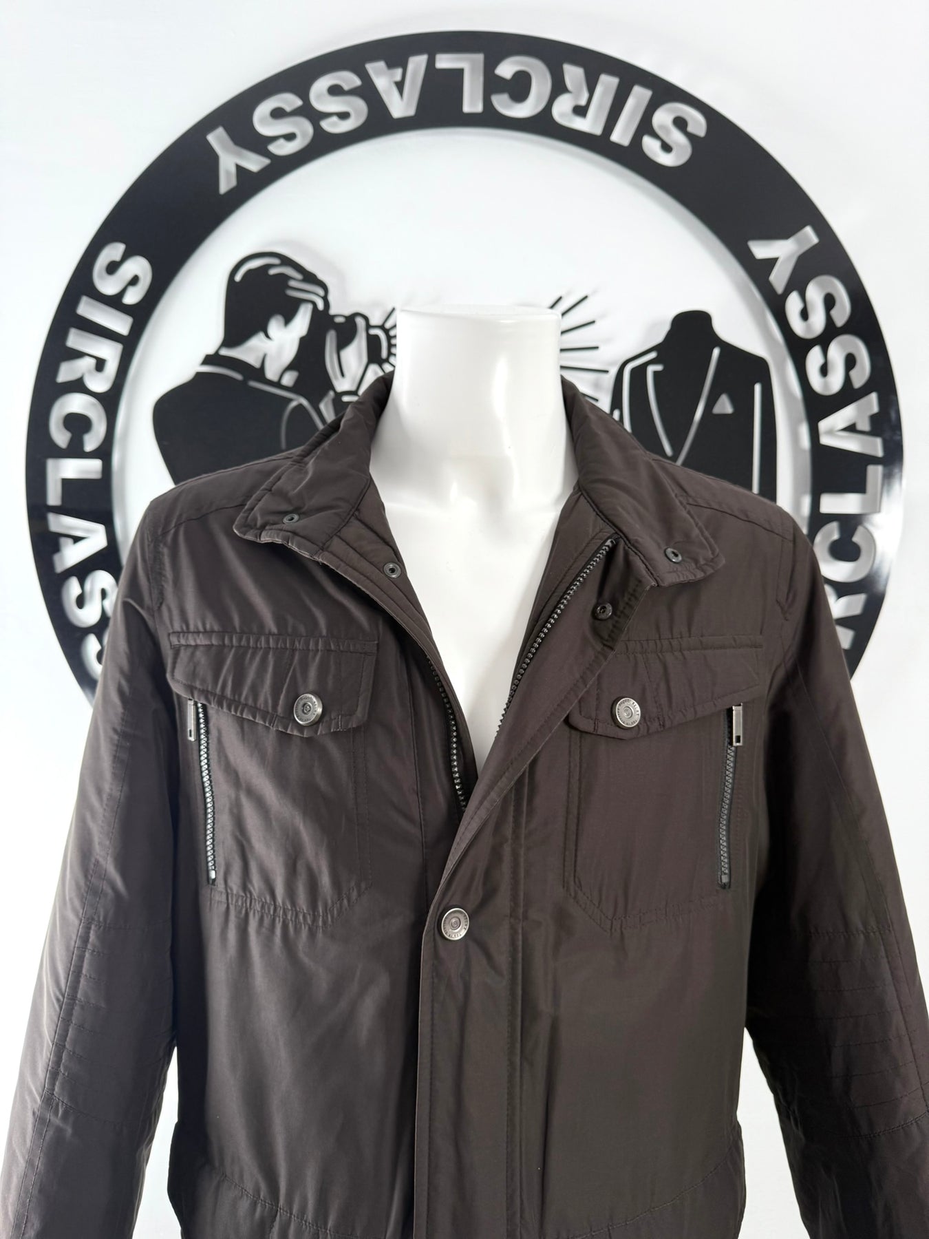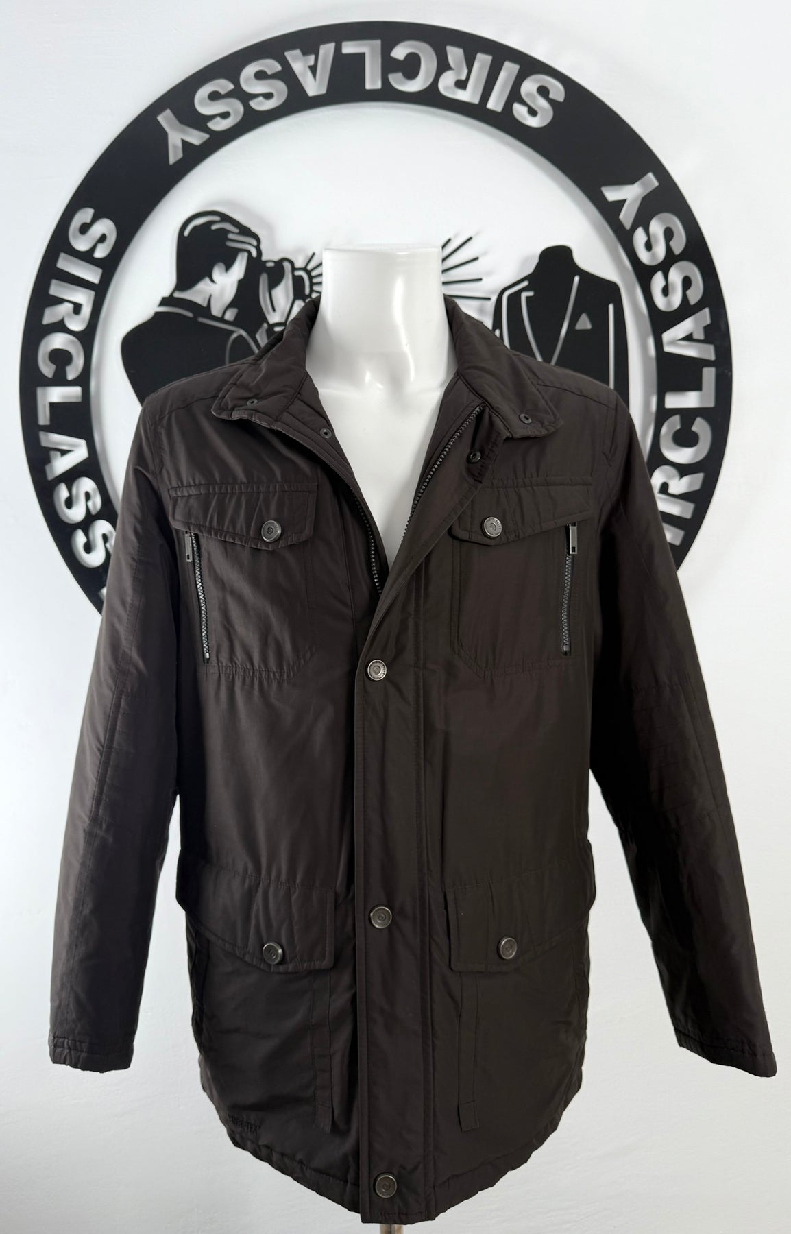 Abrigo Bugatti color marrón oscuro talla 50 (L) en perfecto estado (prácticamente nuevo con poco uso). Gran calidad de poliéster y algodón con forro interior de poliamida, cuenta con todos los botones y cremalleras originales.