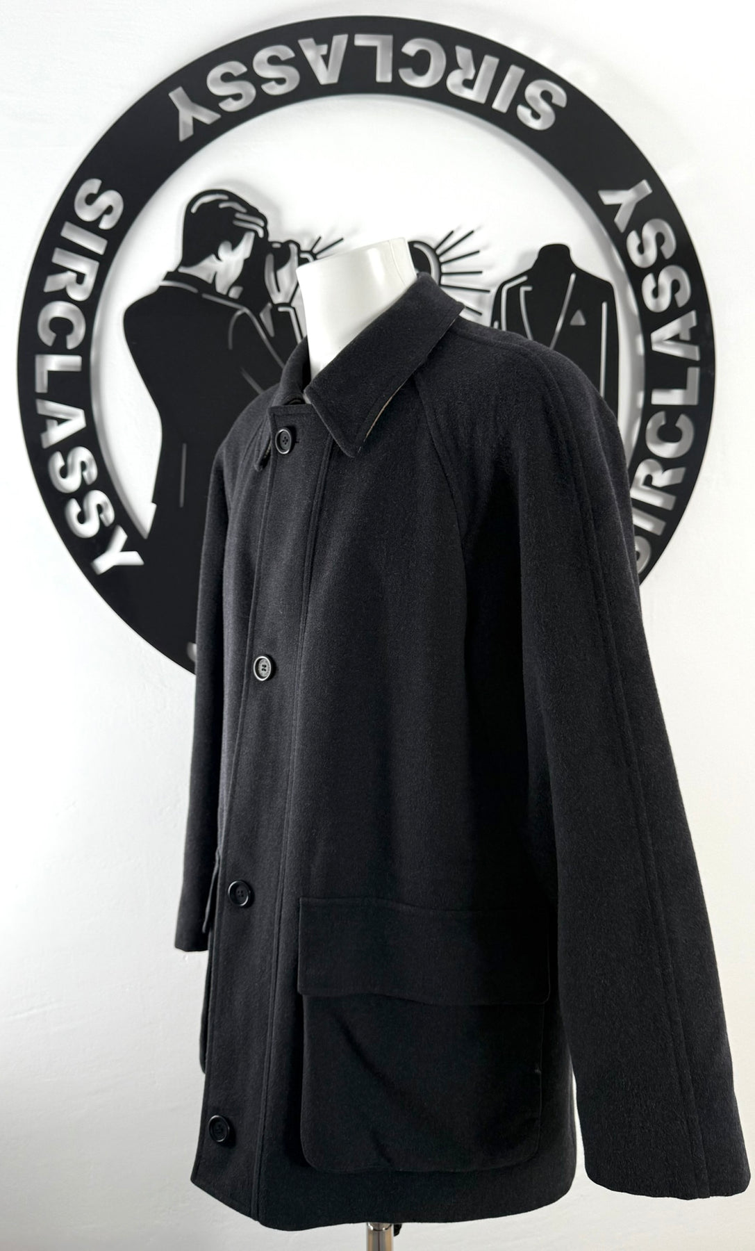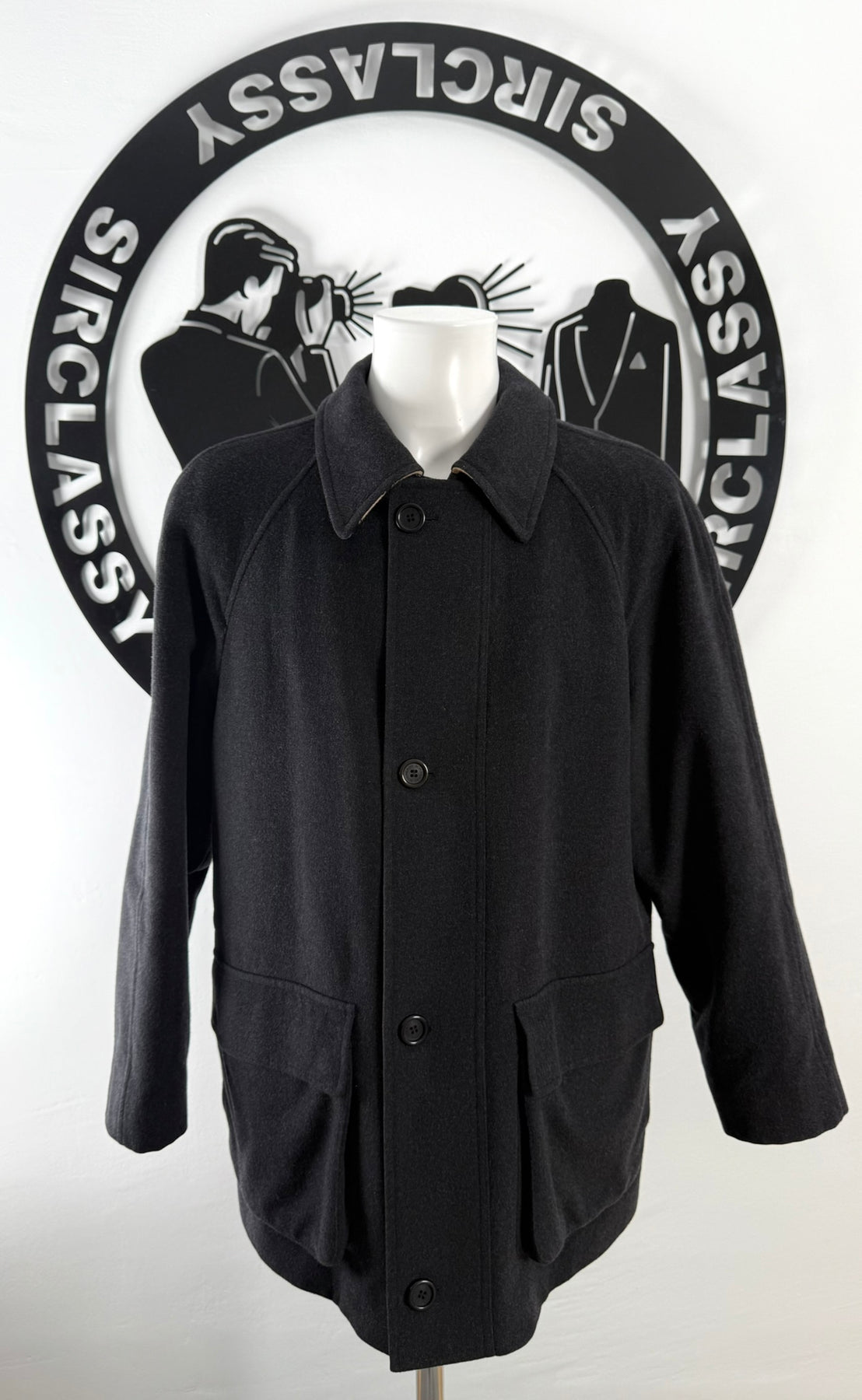 Abrigo de lana Burberry color gris oscuro talla 4 (L) en perfecto estado (prácticamente nuevo con poco uso). Gran calidad de lana y poliamida con forro interior de poliéster, cuenta con todos los botones y cremalleras originales.