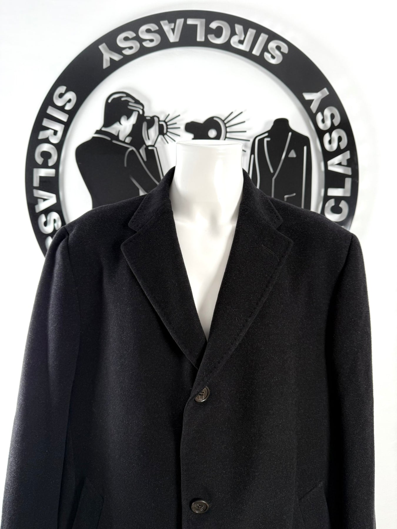 Abrigo largo de lana Corneliani color gris oscuro talla 58 (XXL) en perfecto estado (prácticamente nuevo con poco uso). Gran calidad de lana, poliamida y cachemir con forro interior de acetato y viscosa, cuenta con todos los botones originales.