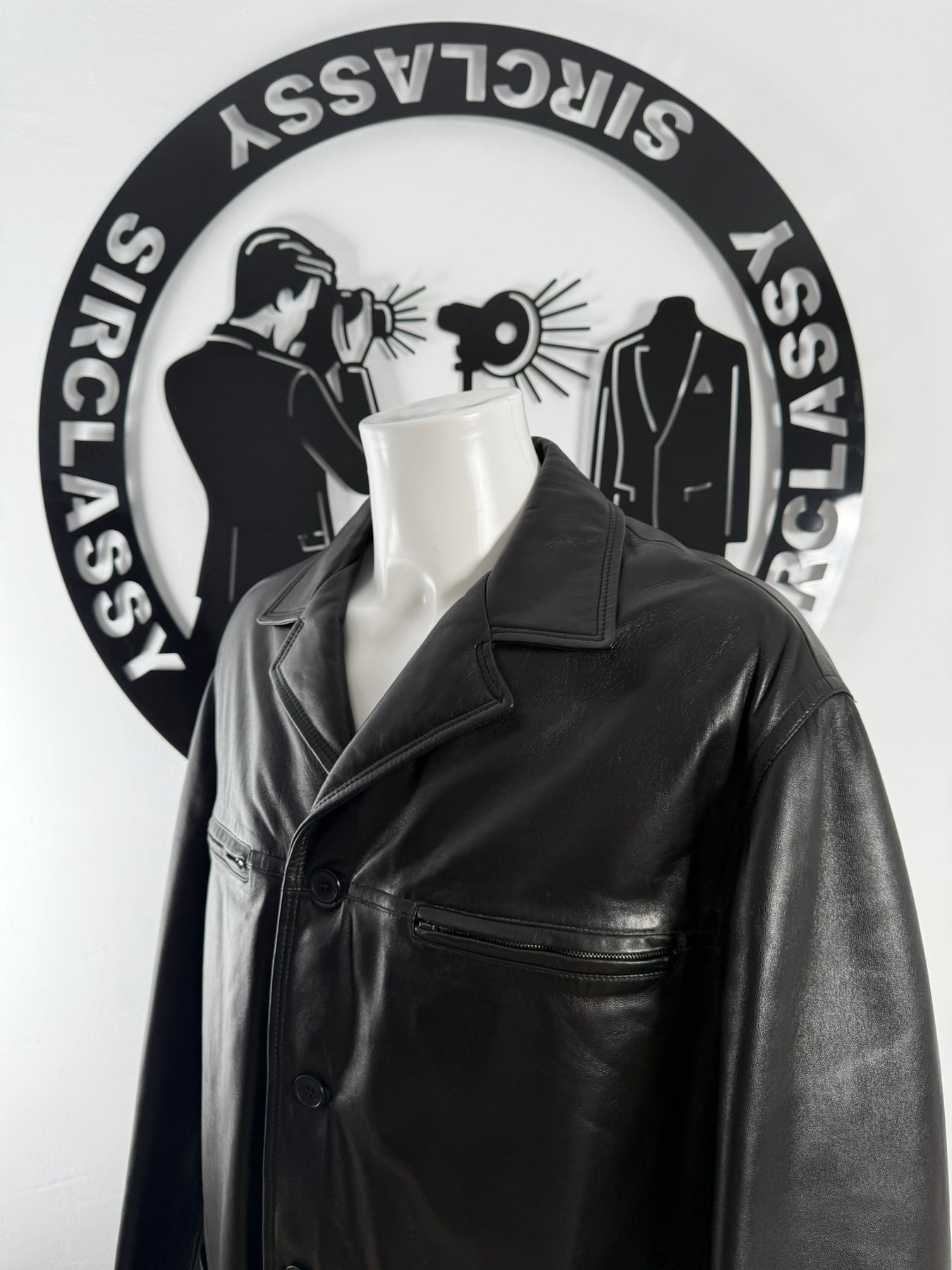 Abrigo de piel Versace Classic color negro talla (XL) en perfecto estado (prácticamente nuevo con poco uso y sin la etiqueta de composición). Gran calidad de piel con forro interior de viscosa, cuenta con todos los botones y cremalleras originales.