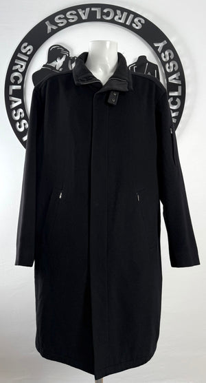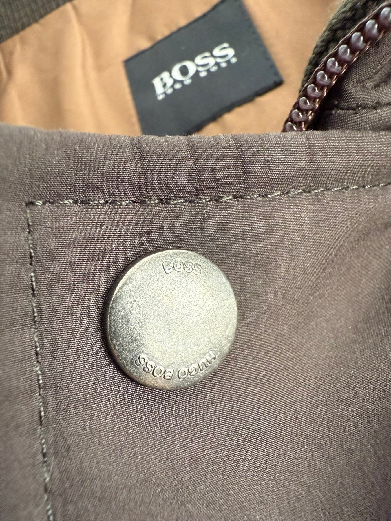 Abrigo impermeable Hugo Boss color marrón oscuro talla 52 (L) en perfecto estado (prácticamente nuevo con poco uso). Gran calidad de poliéster, con todos los botones y cremalleras originales.