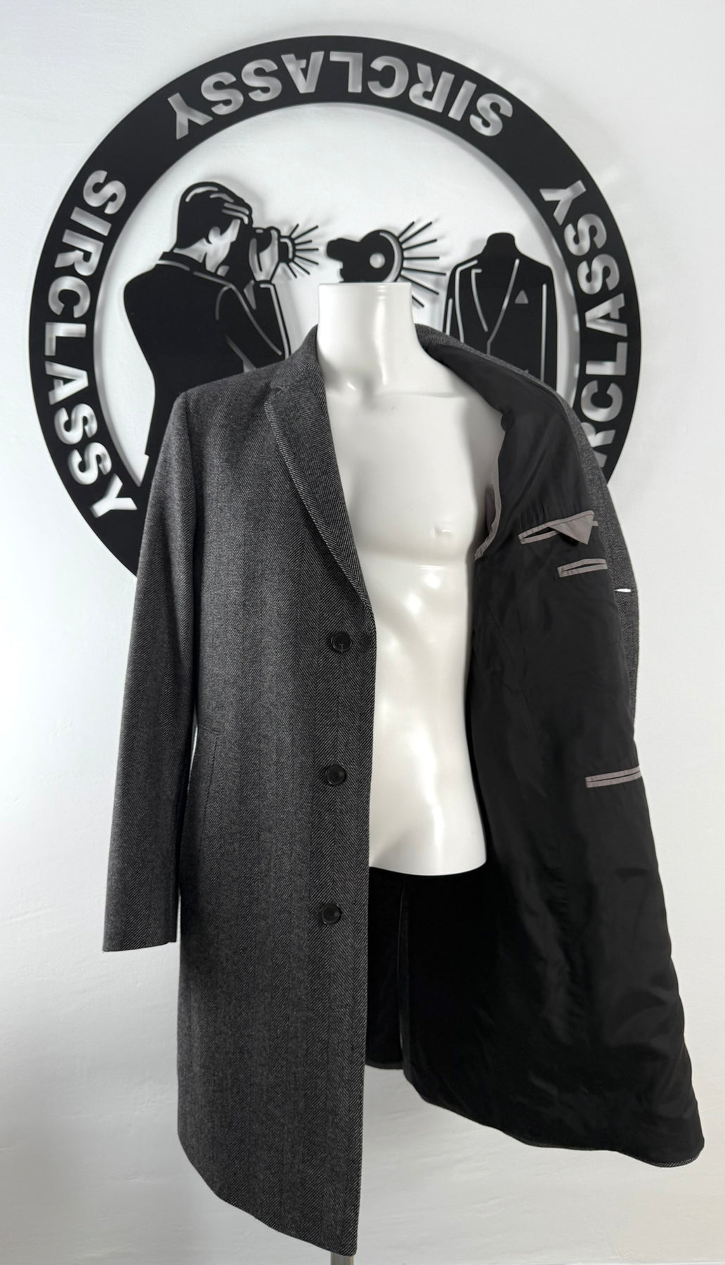 Abrigo largo de lana Hugo Boss color gris talla 52 (L) en perfecto estado (prácticamente nuevo con poco uso). Gran calidad de lana y poliéster con forro interior de lana y poliéster, cuenta con todos los botones originales.