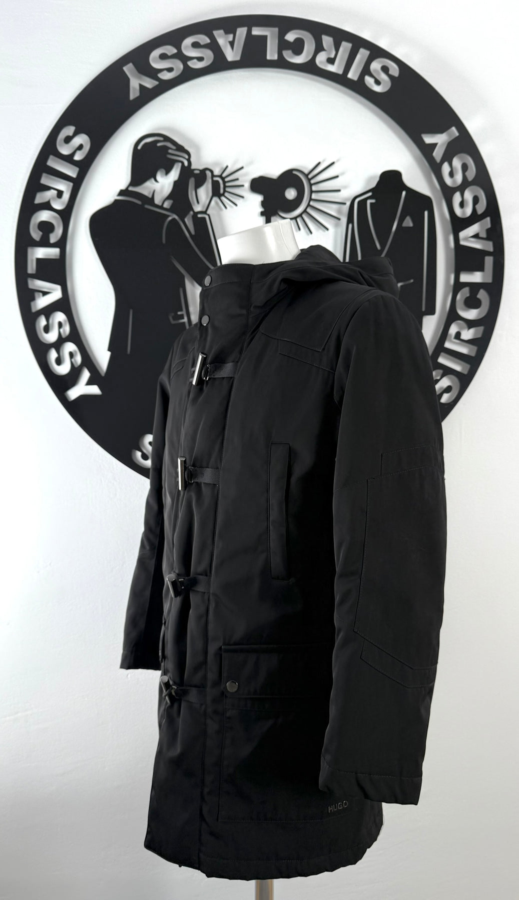 Abrigo acolchado impermeable Hugo Boss color negro talla 46 (S) en perfecto estado (prácticamente nuevo con poco uso). Gran calidad de poliéster, cuenta con todos los botones y cremalleras originales.