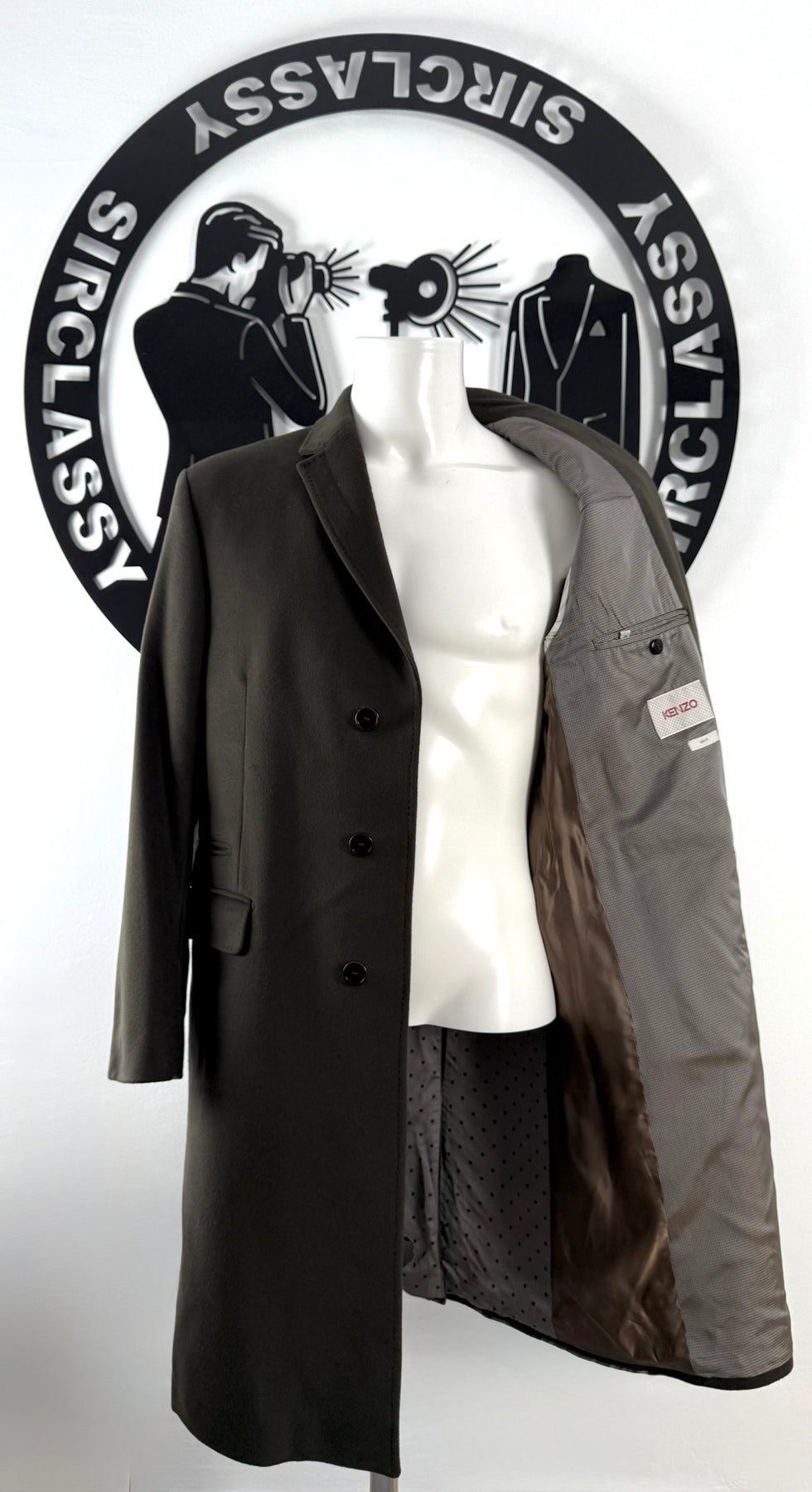 Abrigo largo de lana y cachemir Kenzo color caqui talla 52 (M) en perfecto estado (prácticamente nuevo con poco uso). Gran calidad de lana y cachemira con forro interior de viscosa, cuenta con todos los botones originales.