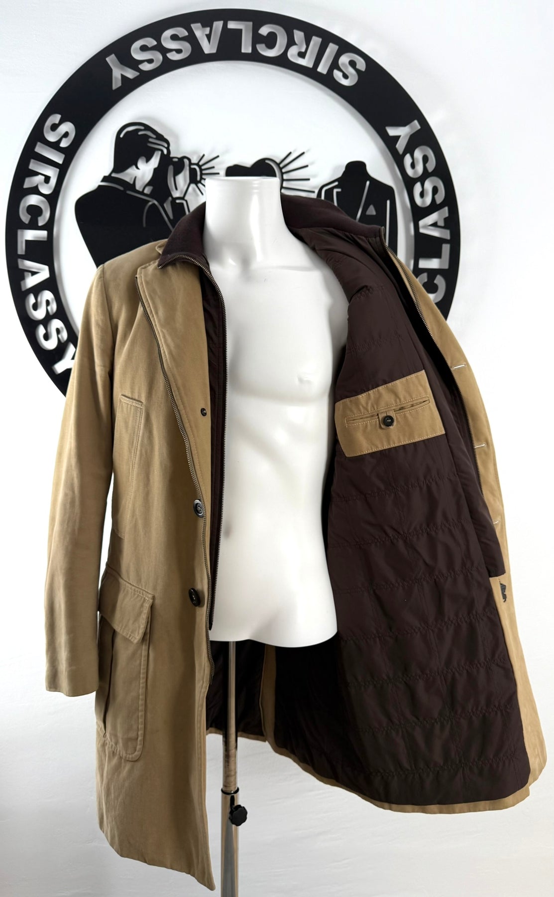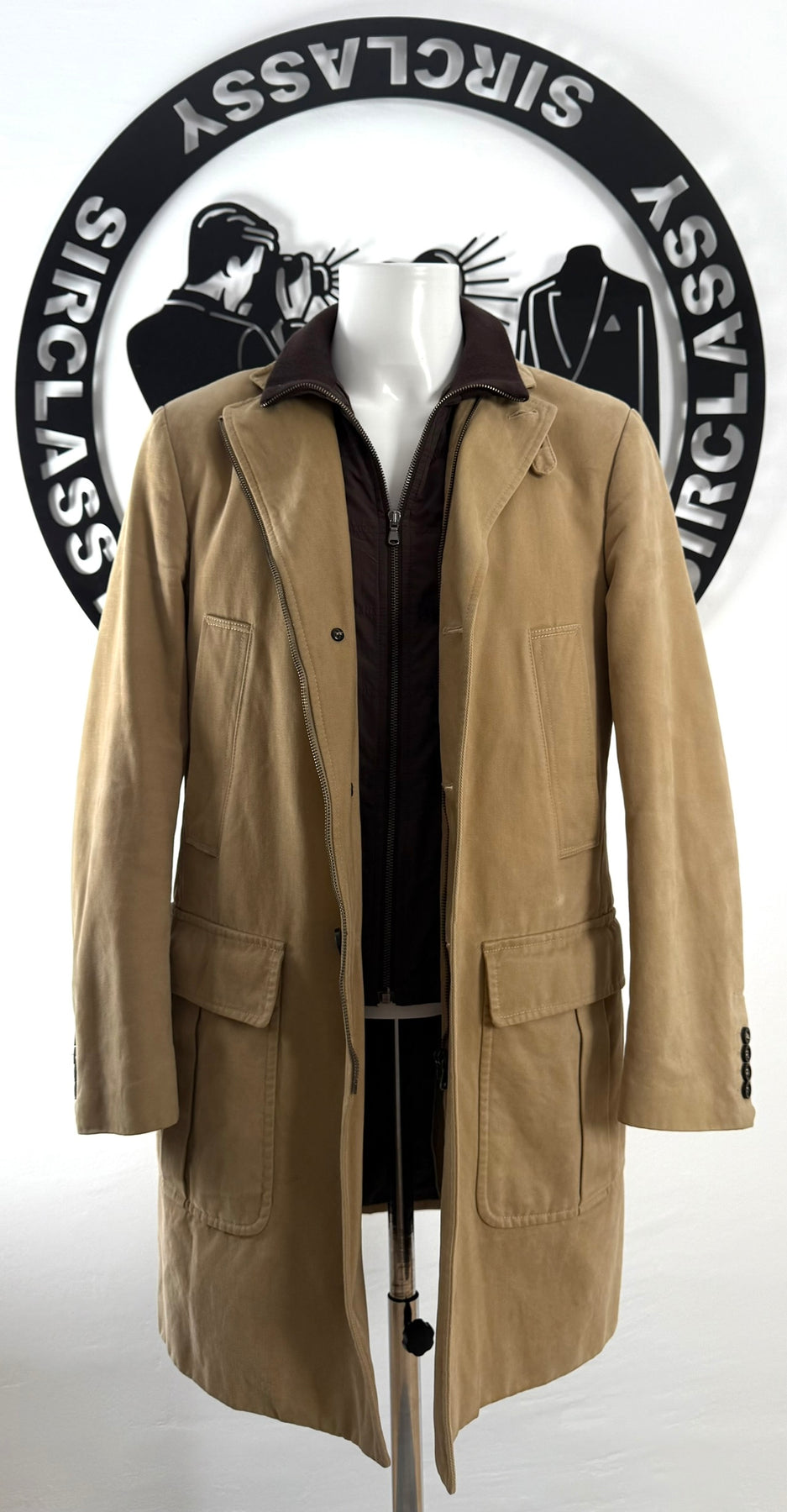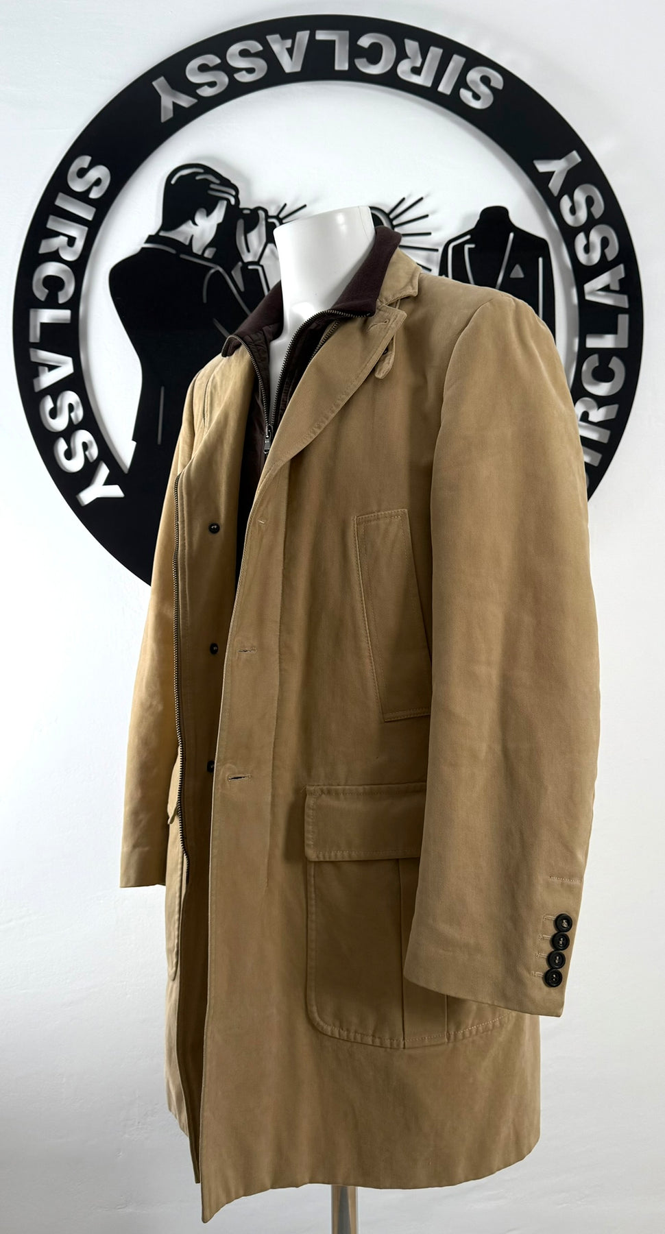 Abrigo con chaleco Pal Zileri color beige y chaleco marrón talla 50 (M) en perfecto estado (prácticamente nuevo con poco uso). Gran calidad de algodón con forro interior de poliéster, cuenta con todos los botones y cremalleras originales.