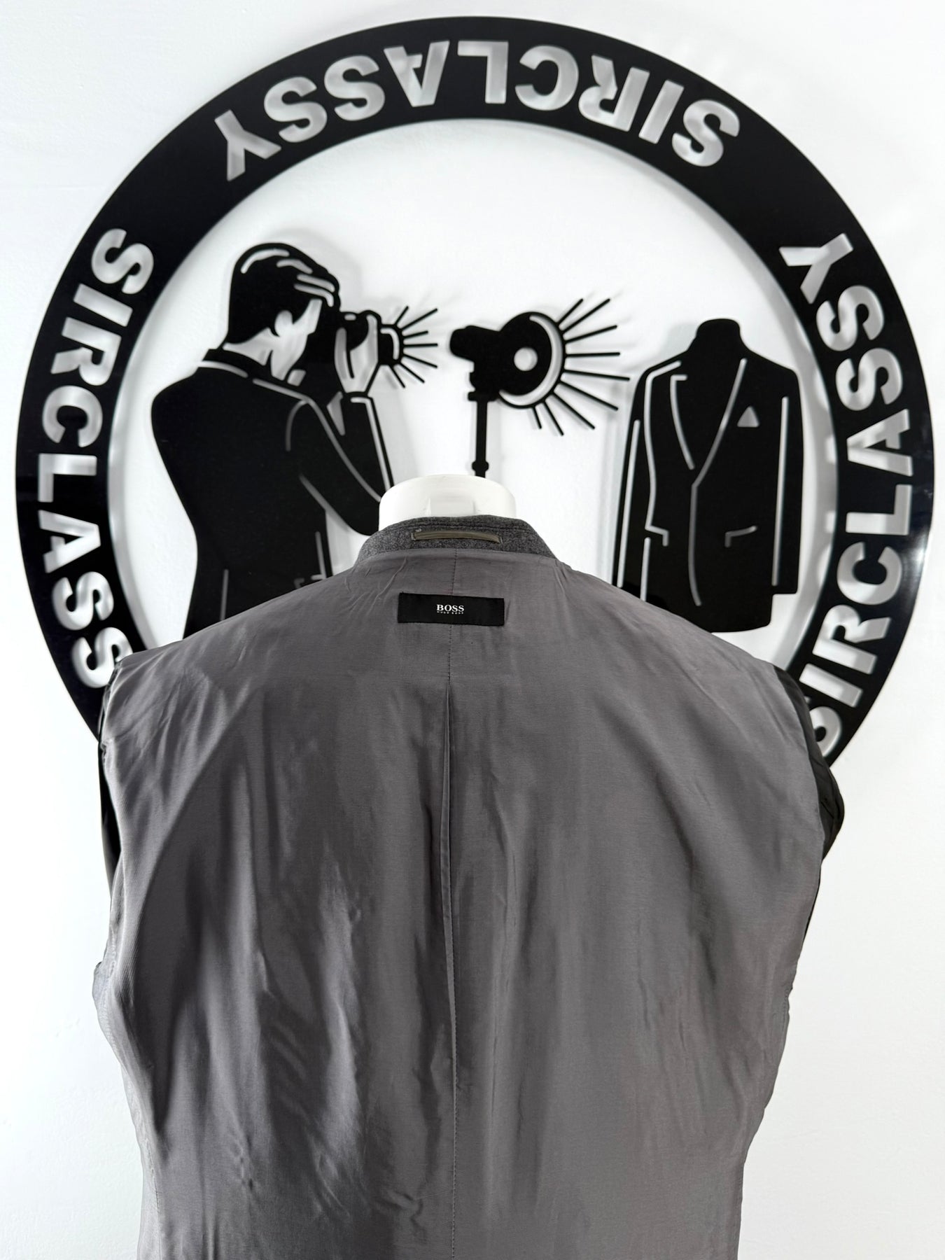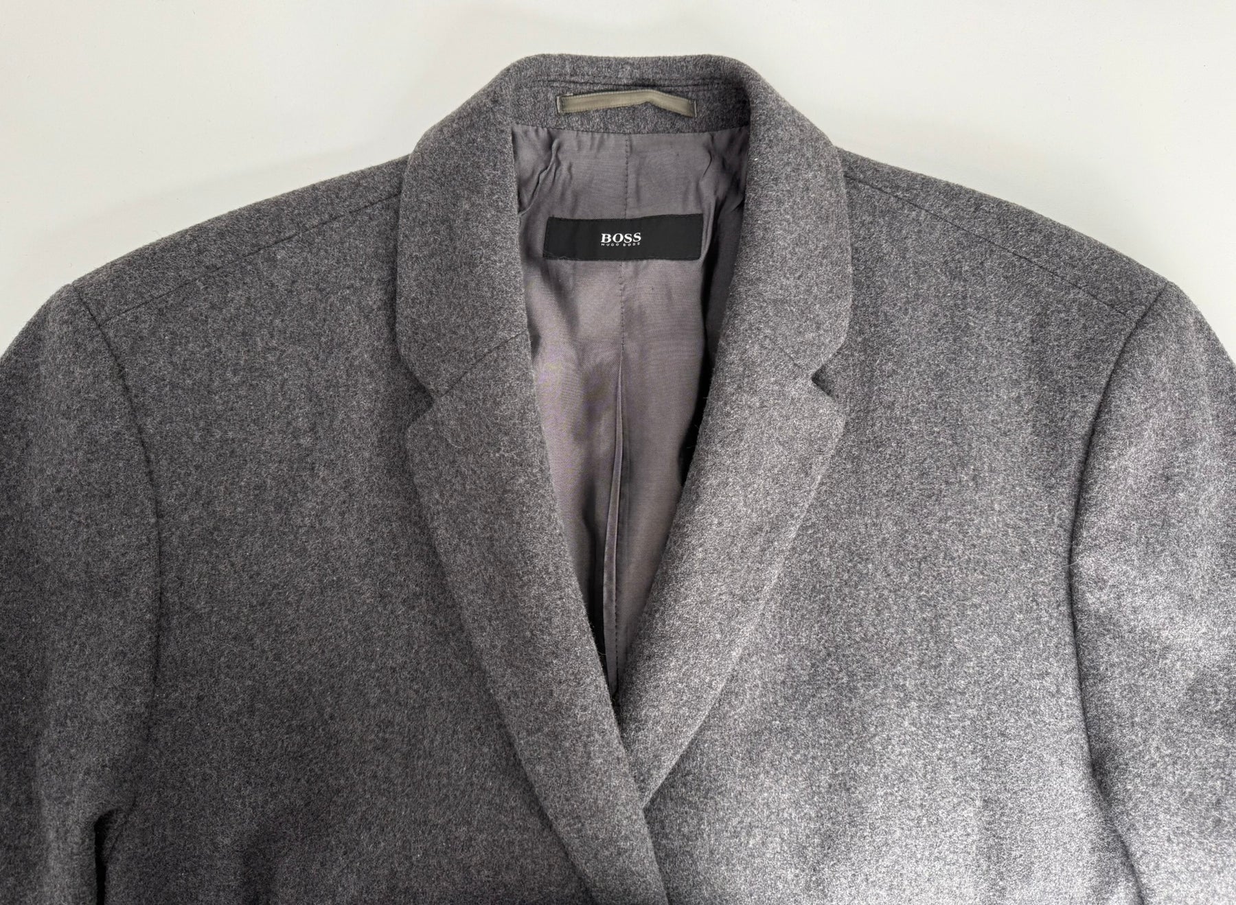 Abrigo de lana Hugo Boss color gris talla 56 (XL) en perfecto estado (prácticamente nuevo con poco uso). Gran calidad de lana y poliamida con forro interior de viscosa y acetato, cuenta con todos los botones originales.