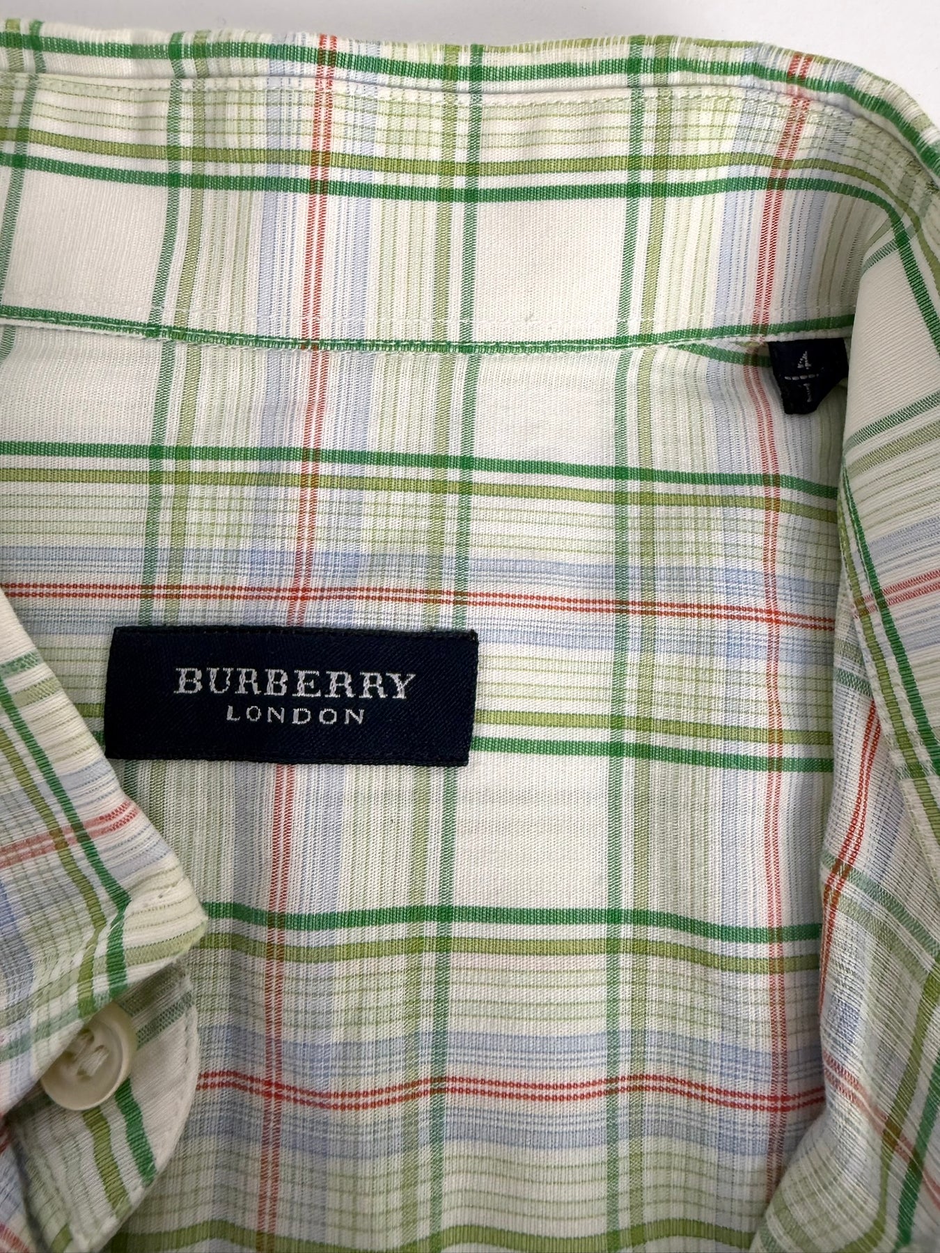 Camisa de algodón Burberry color verde y blanco talla 4 (L) en perfecto estado (prácticamente nuevo con poco uso). Gran calidad de algodón, con todos los botones originales.