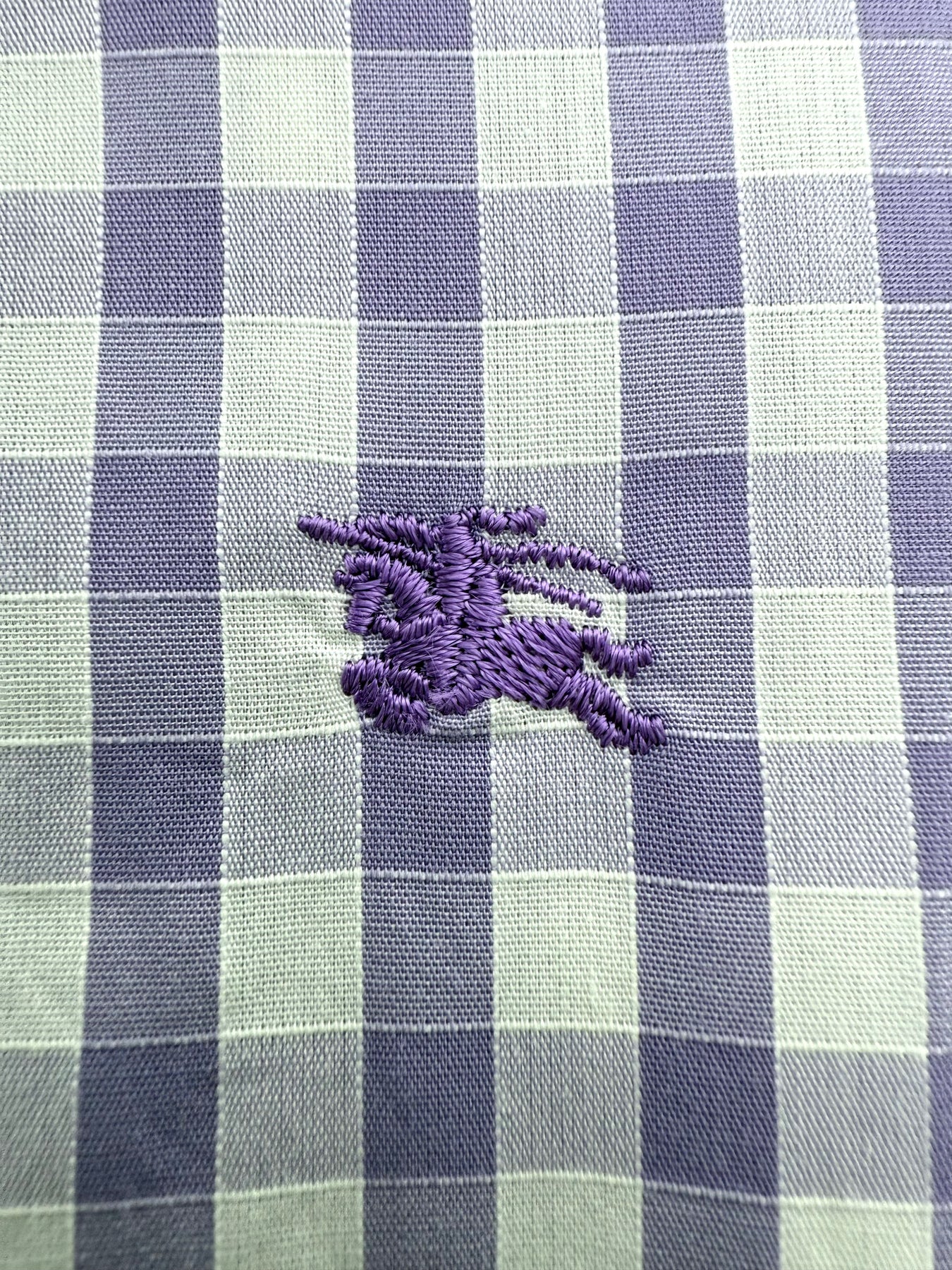Camisa de cuadros de algodón Burberry color blanco y lila talla 16 (S) en muy buen estado (pequeña mancha en la parte baja de la espalda y desgaste de la etiqueta de composición). Gran calidad de algodón, con todos los botones originales.