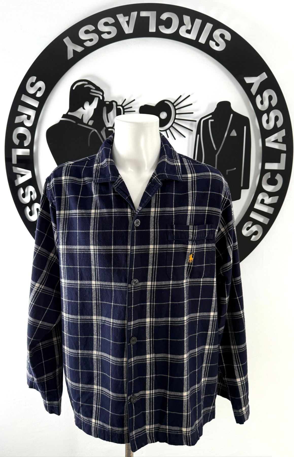 Camisa de dormir Ralph Lauren color azul oscuro y rayas blancas talla (XL) en perfecto estado (prácticamente nuevo con poco uso). Gran calidad de algodón, con todos los botones originales.
