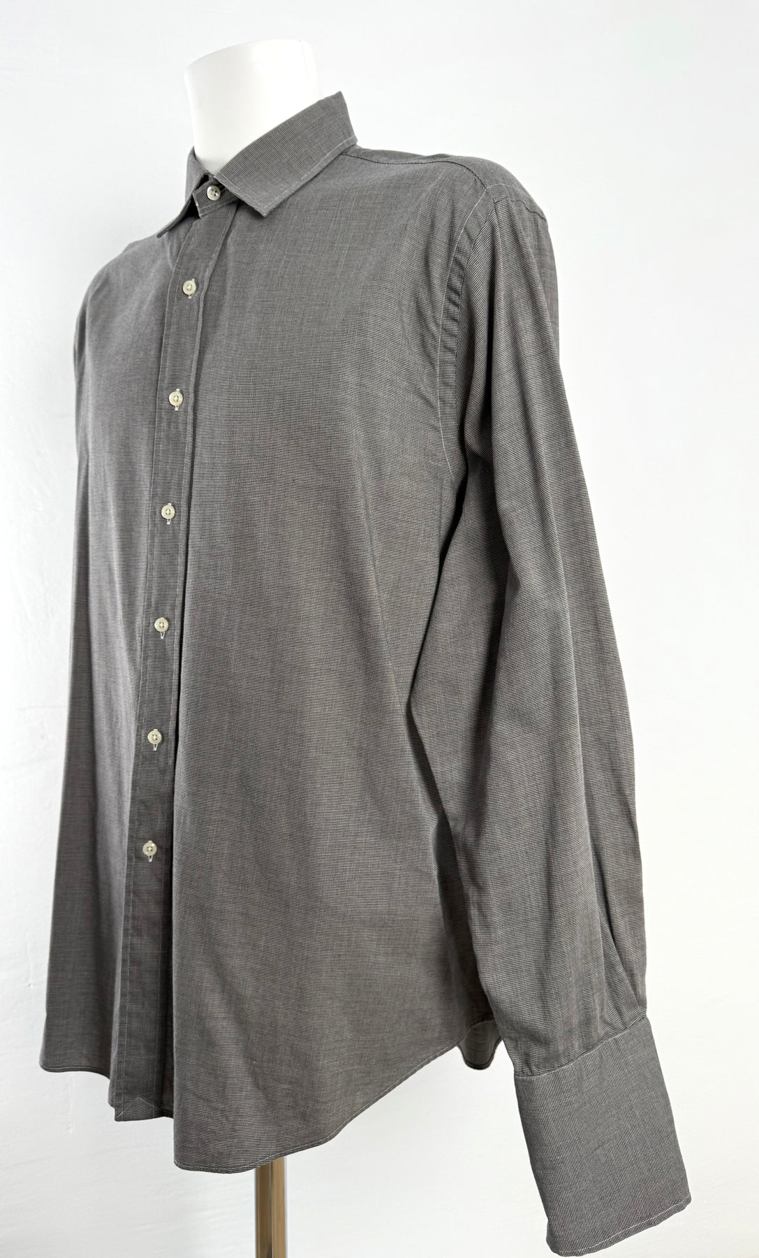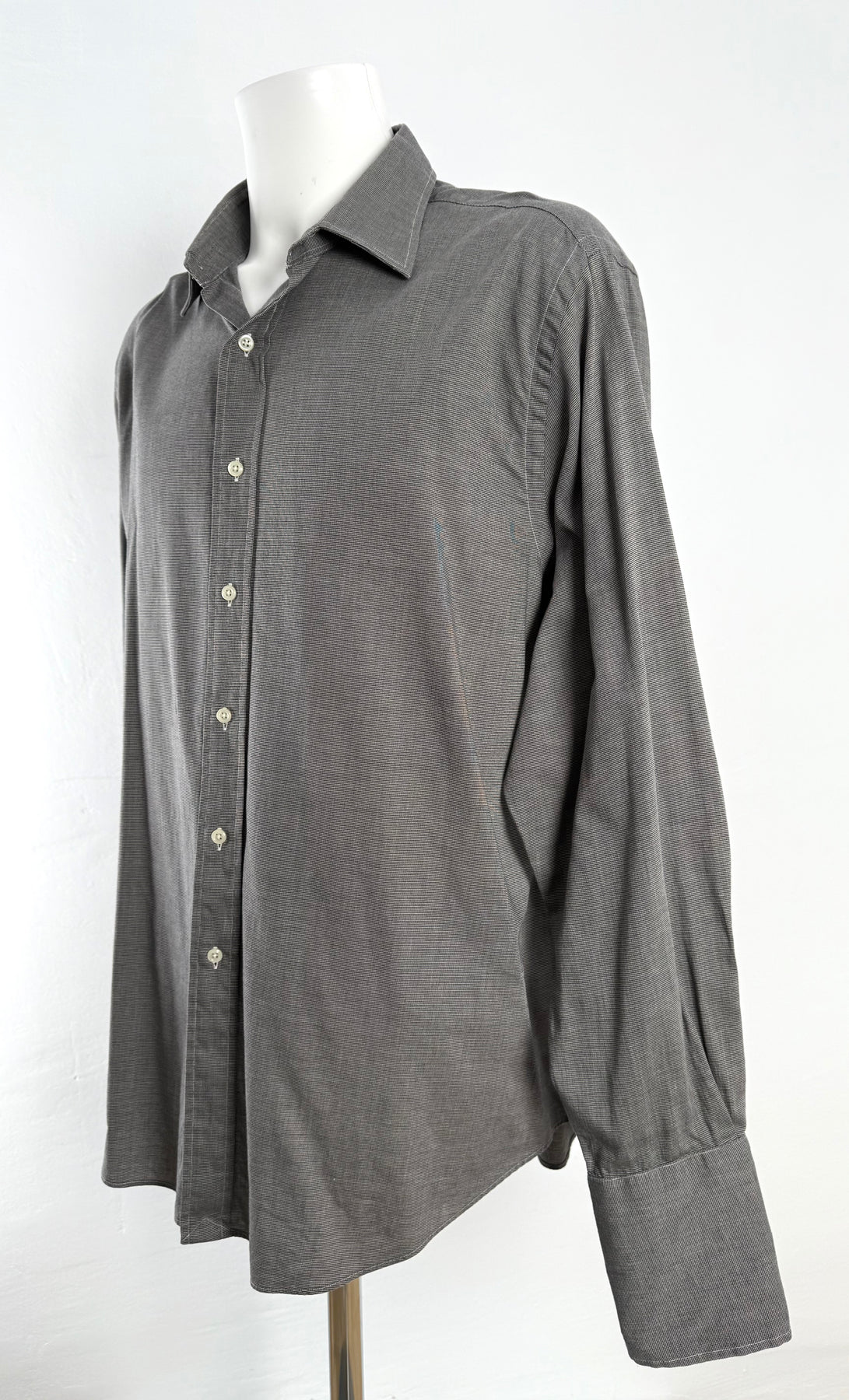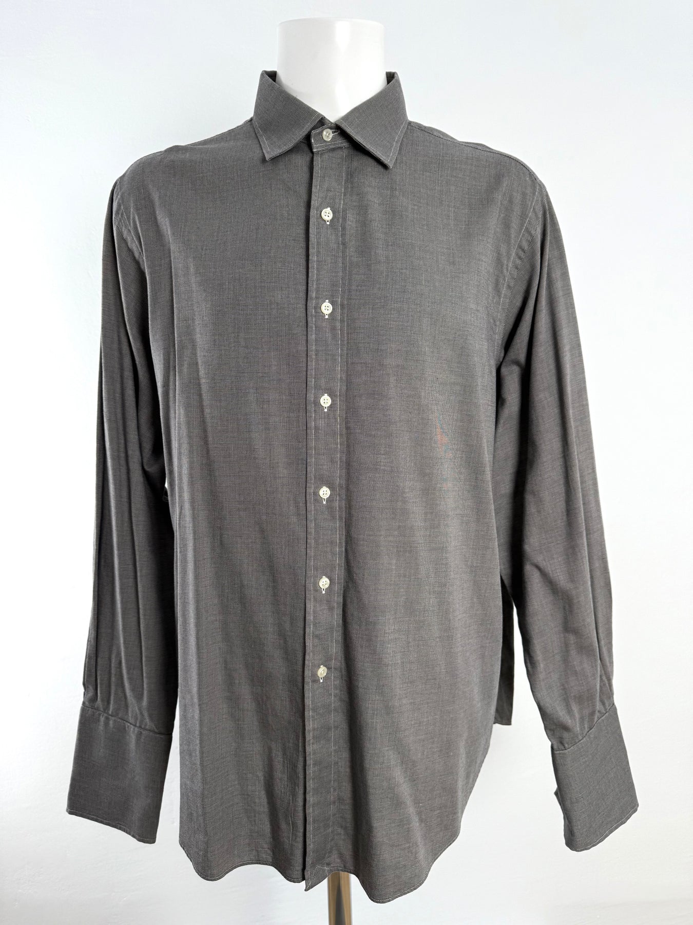 Camisa de algodón Ralph Lauren color gris talla 44 (XXL) en perfecto estado (prácticamente nuevo con poco uso). Gran calidad de algodón, con todos los botones originales. Es una camisa para usar gemelos.