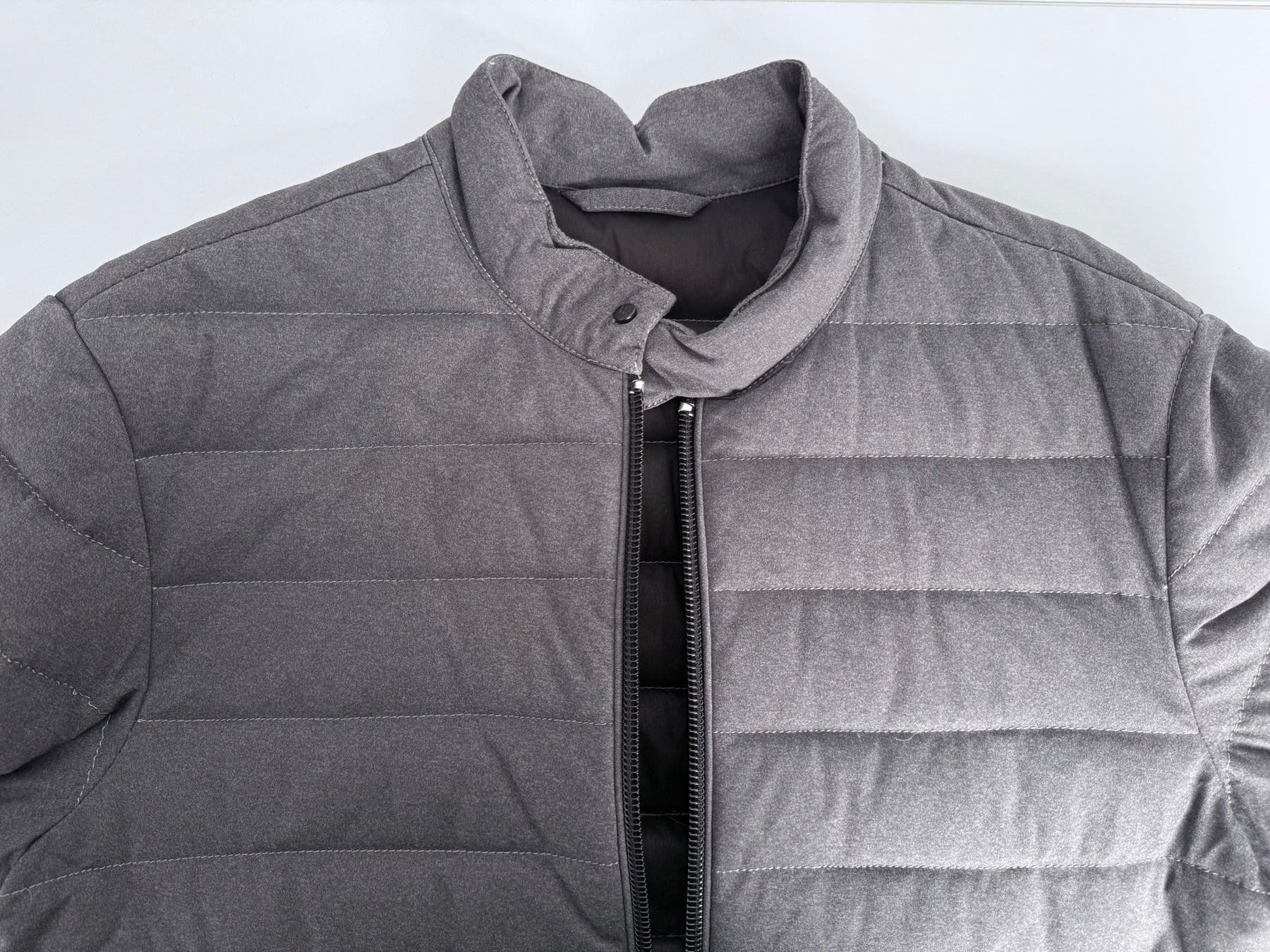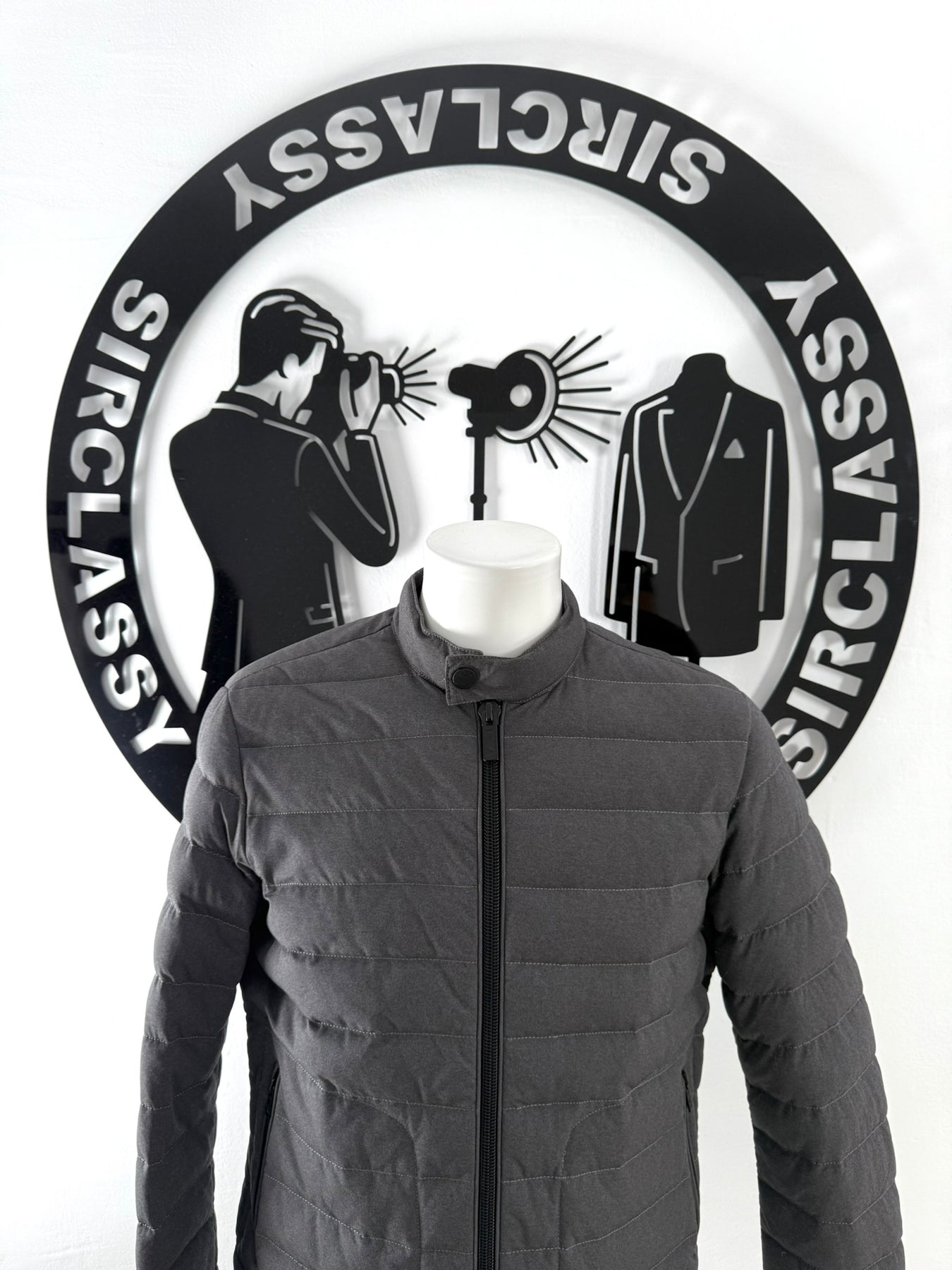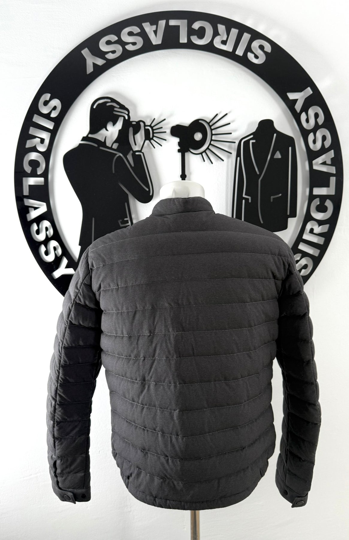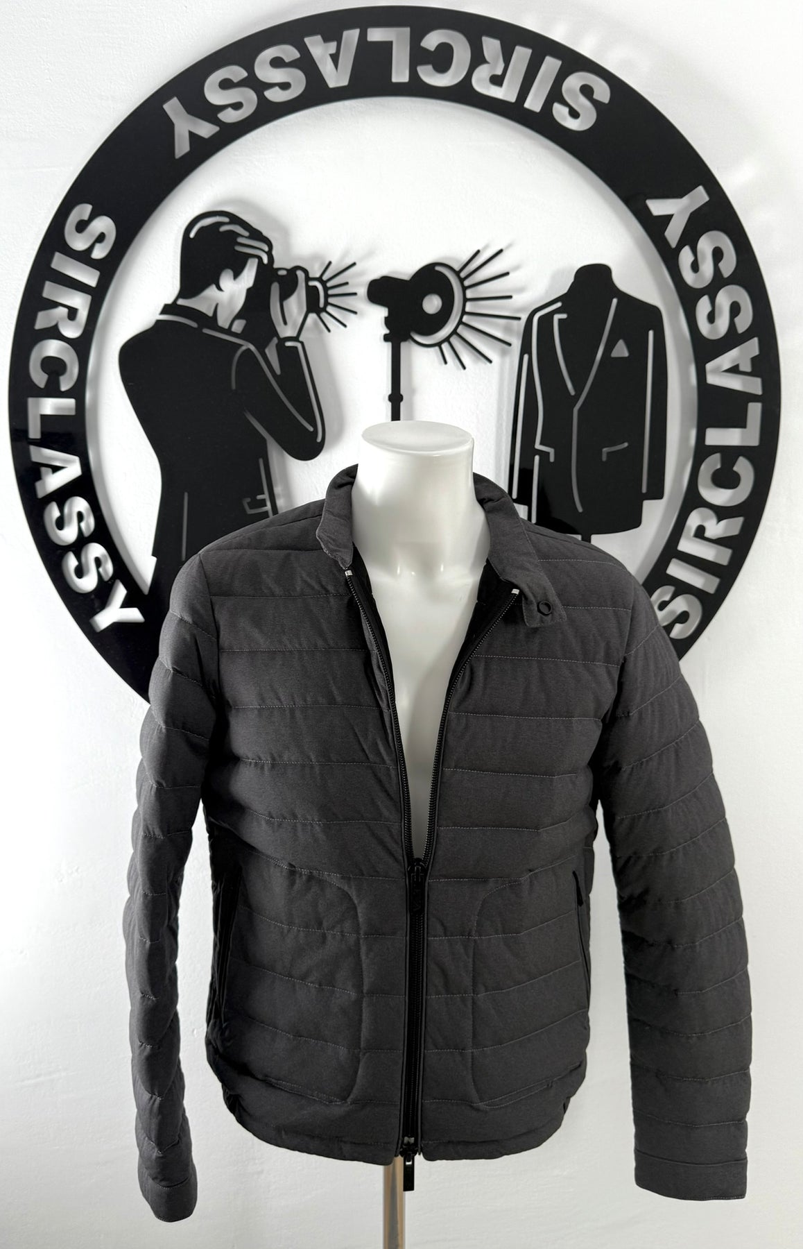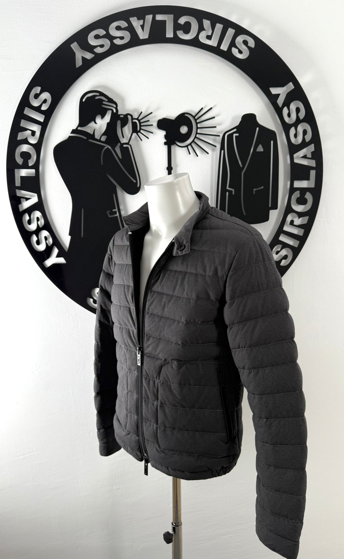 Cazadora de plumas Emporio Armani color gris talla (M internacional, aunque la etiqueta marca una L, talla más pequeño) en perfecto estado (prácticamente nuevo con poco uso). Gran calidad de poliéster y poliamida con relleno de plumas, cuenta con todas las cremalleras originales.