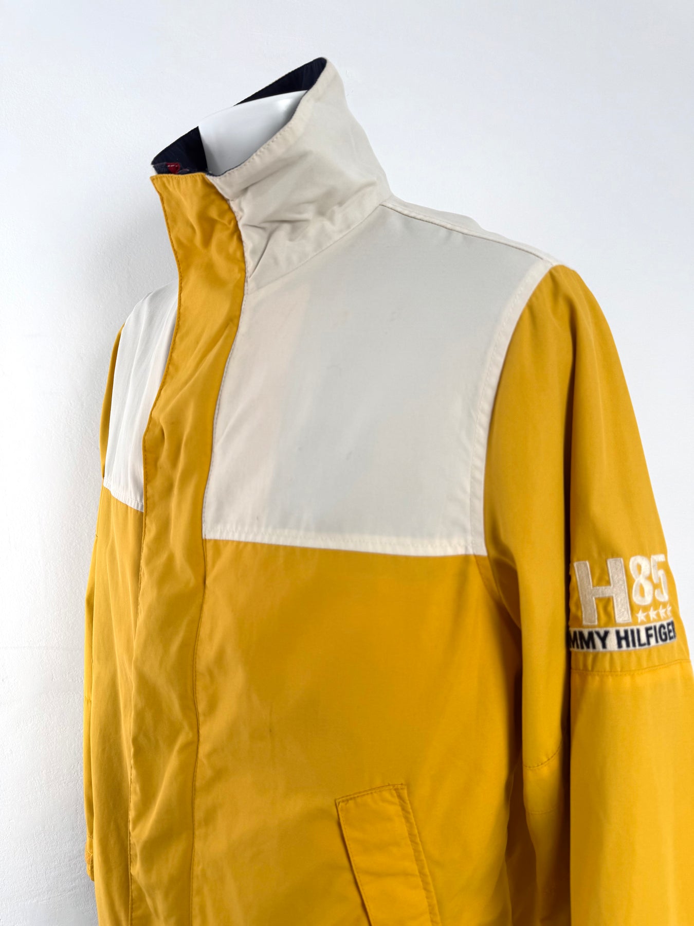 Cazadora Tommy Hilfiger color blanco y amarillo talla (M, aunque ponga en la etiqueta S talla más grande) en perfecto estado (prácticamente nuevo). Gran calidad de poliéster y nailon, con todos los botones y cremallera originales.