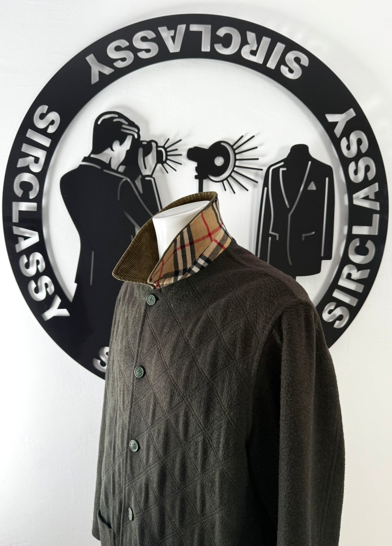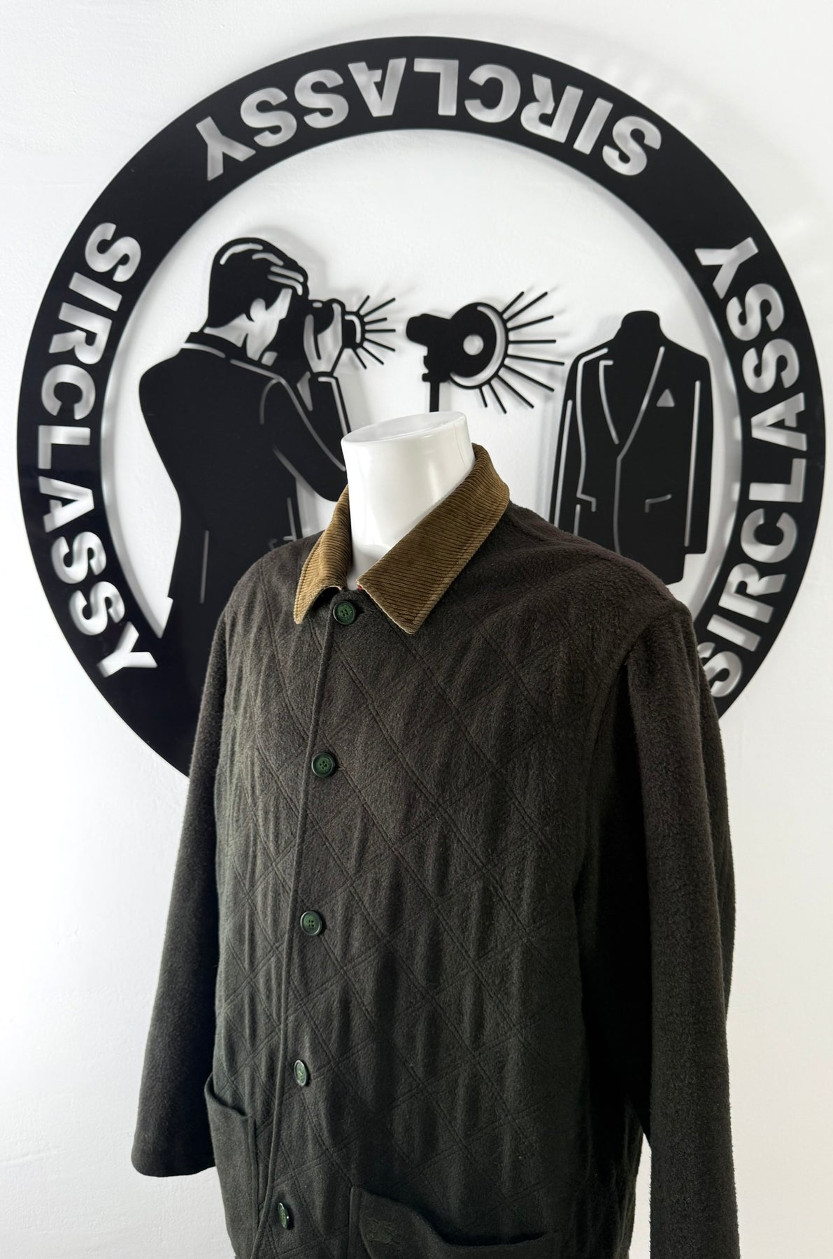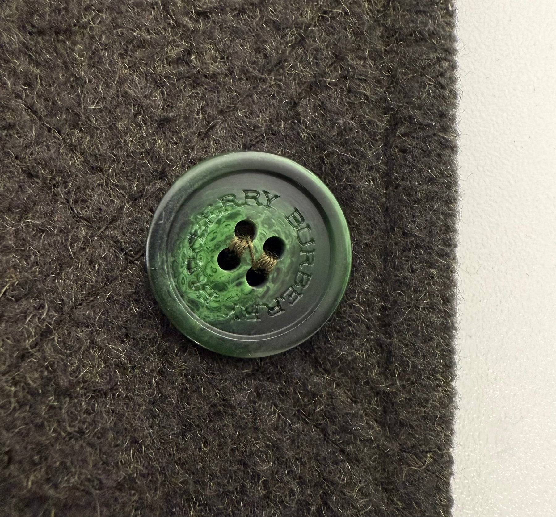 Chaqueta Burberry color verde oscuro talla 7 (XL) en muy buen estado (con poco uso y desgaste de la etiqueta de composición). Gran calidad de lana y algodón, con todos los botones originales.