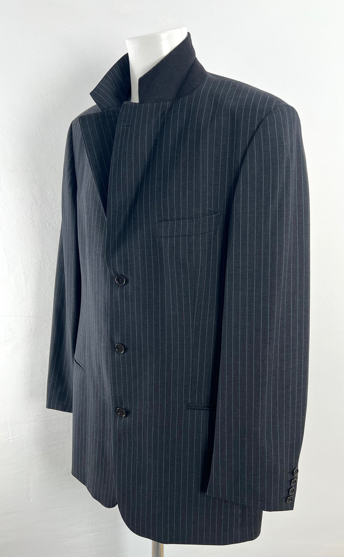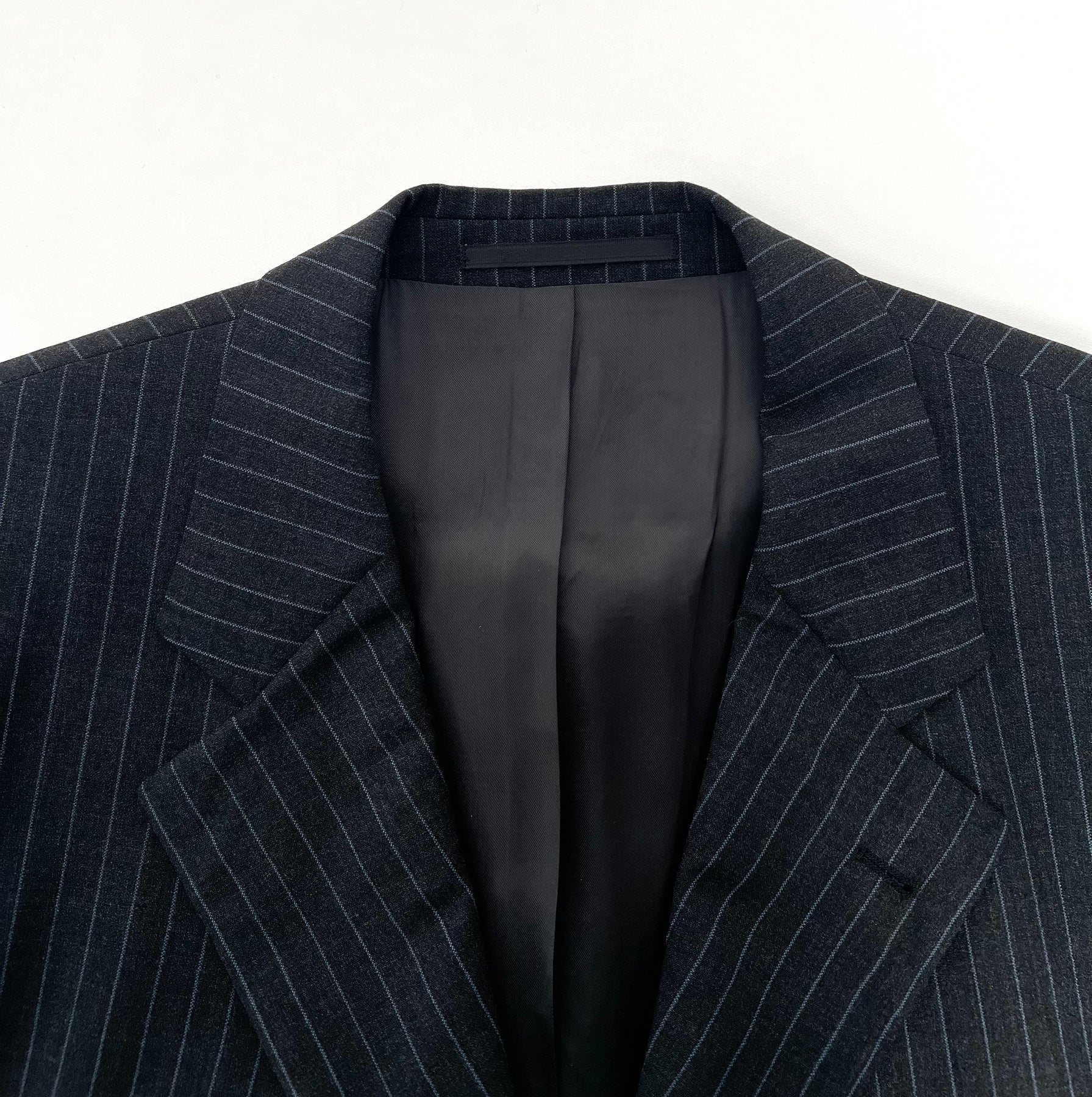 Chaqueta de lana Hugo Boss color negro con rayas azul marino talla 106 (XXL), en perfecto estado (prácticamente nuevo, con un pequeño agujero bajo el cuello en la espalda). Gran calidad de lana, con todos los botones originales.