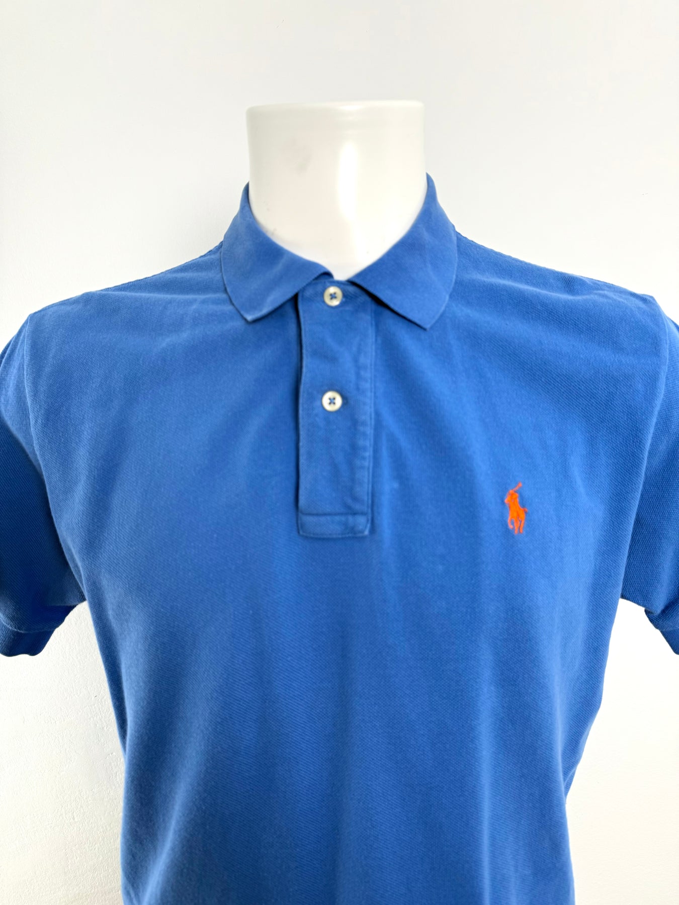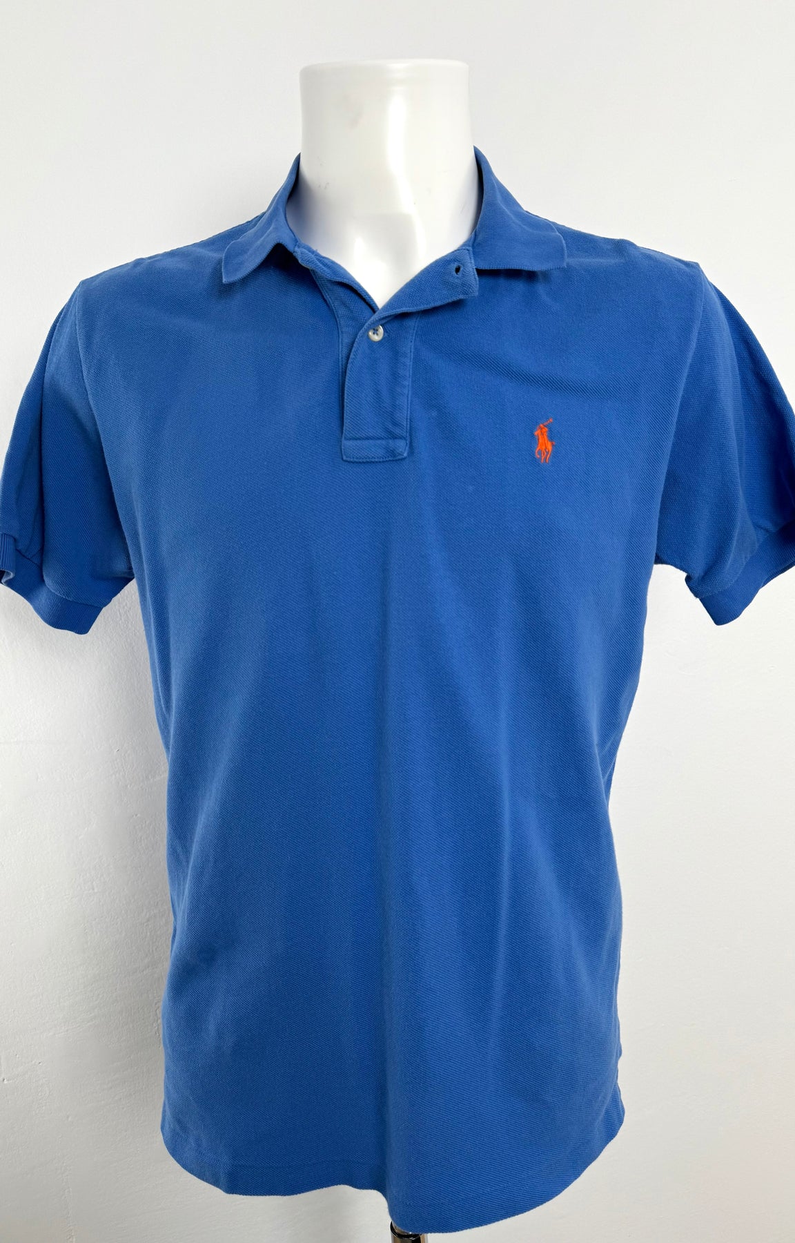 Polo de algodón Ralph Lauren color azul talla (M) en muy buen estado (prácticamente nuevo con pequeñas manchas poco visibles en la parte delantera, se ven más en las fotos que en la realidad por los focos de luz). Gran calidad de algodón, con todos los botones originales.