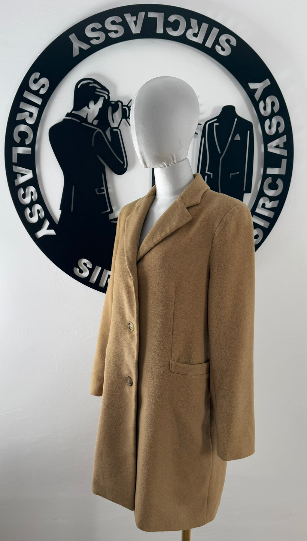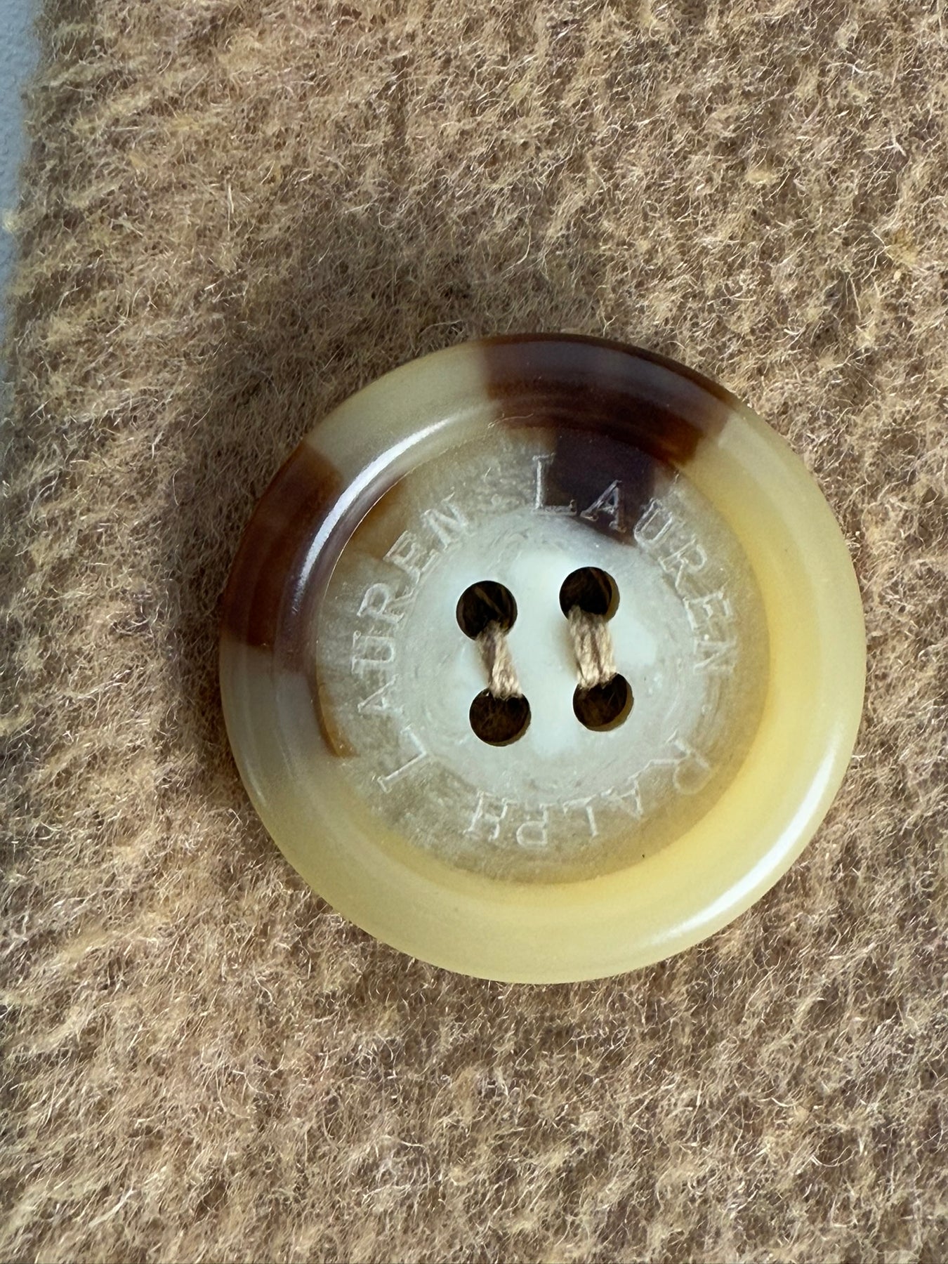 Abrigo de lana Ralph Lauren color beige talla 38 (M) en muy buen estado estado (prácticamente nuevo con solo reparado el forro interior). Gran calidad de lana, poliéster, viscosa y otras fibras, cuenta con todos los botones originales.