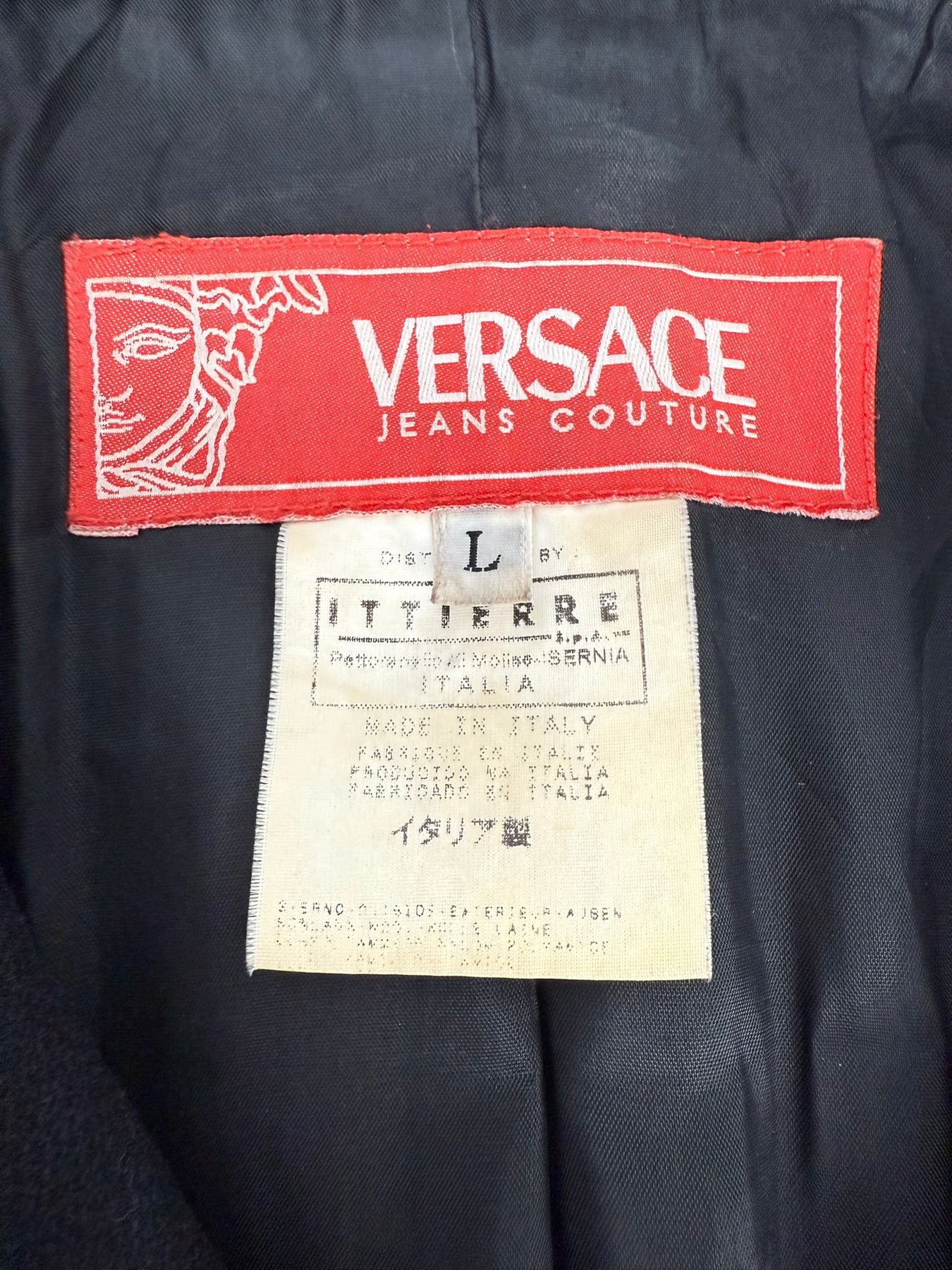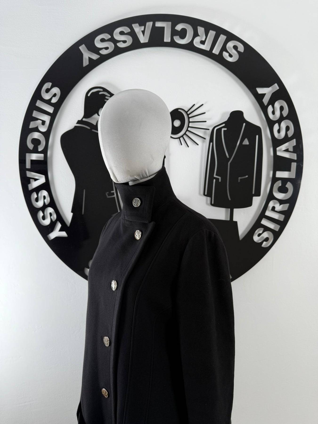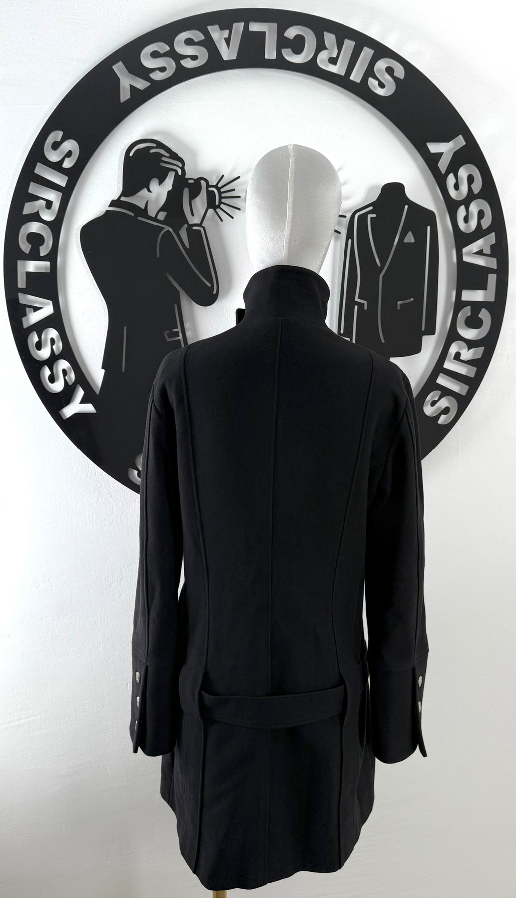 Abrigo largo de lana Versace Jeans color negro talla (M internacional, aunque la talla marca una L, talla más pequeño) en muy buen estado (prácticamente nuevo con pequeño roce en el hombro izquierdo muy poco visible). Gran calidad de lana, con todos los botones originales.