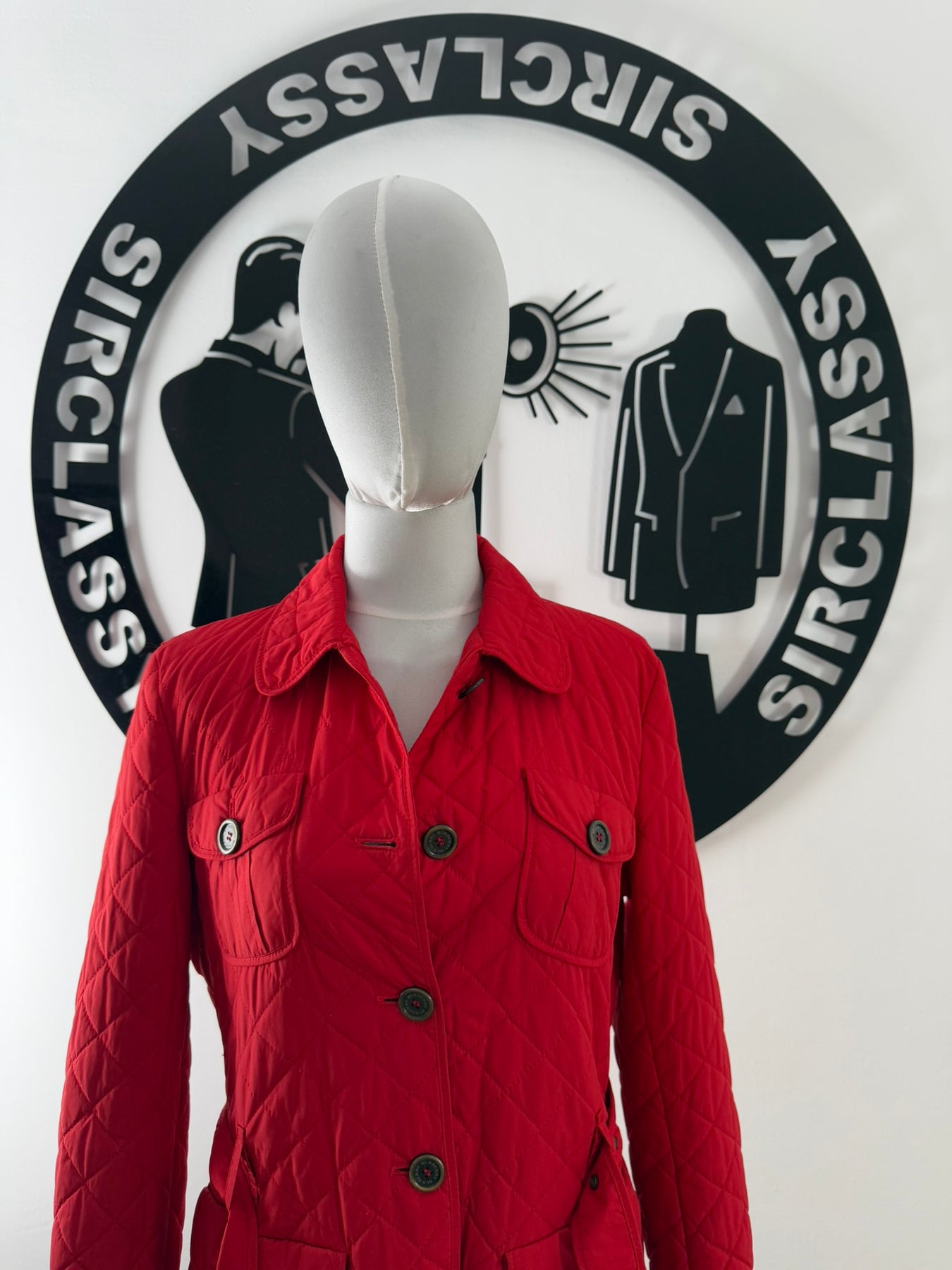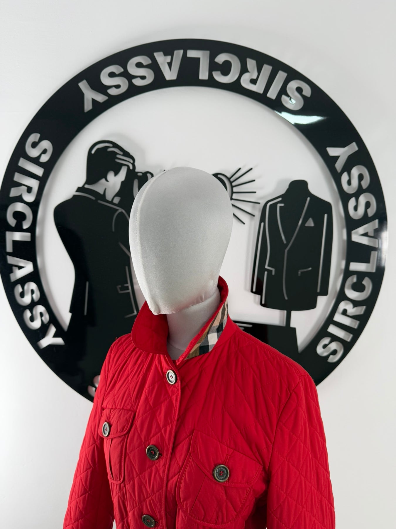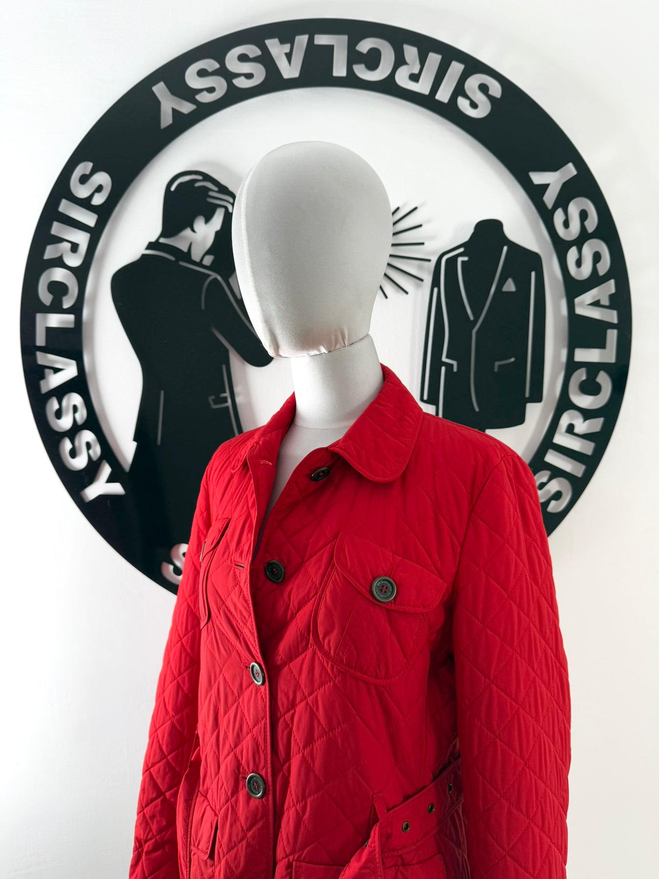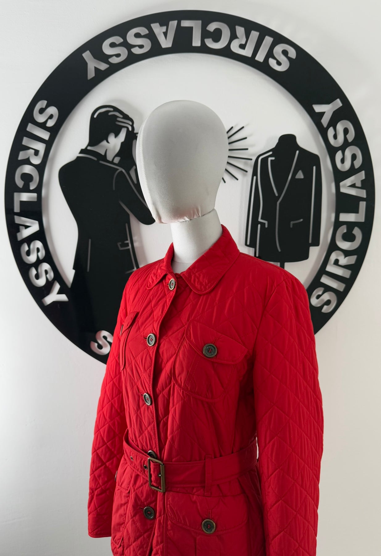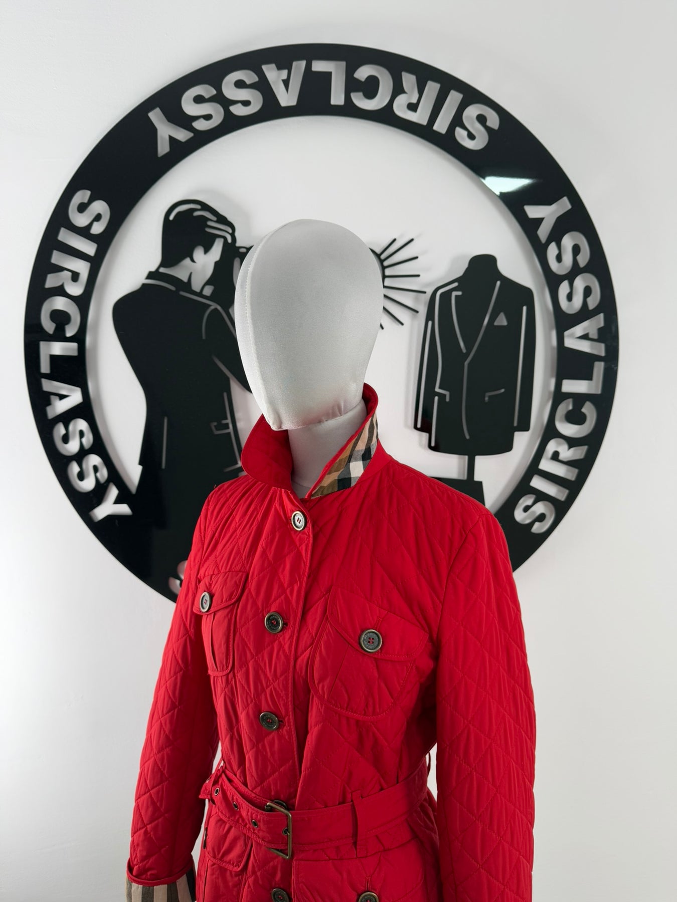Cazadora acolchada Burberry color rojo talla 40 (S) en perfecto estado (prácticamente nuevo con poco uso). Gran calidad de poliéster con forro interior de algodón, cuenta con todos los botones y cinturón originales.