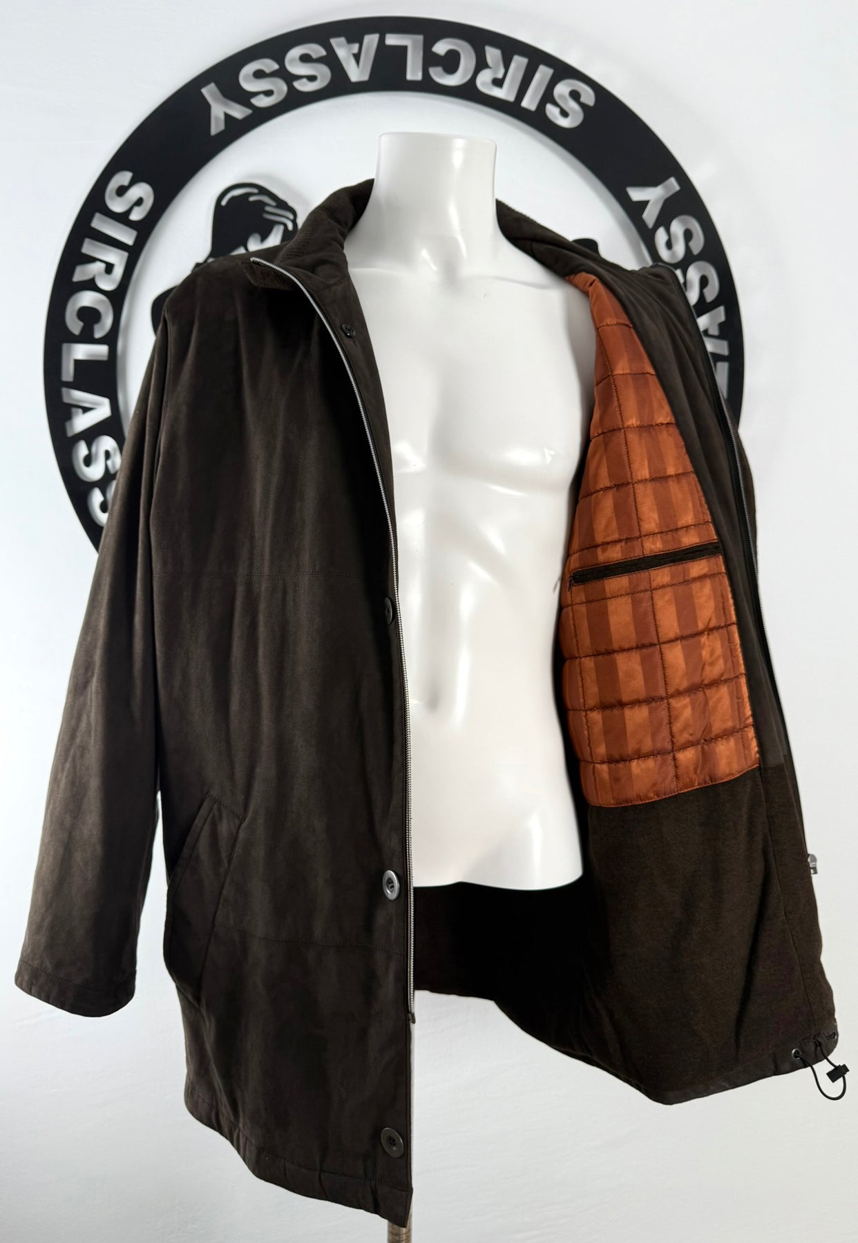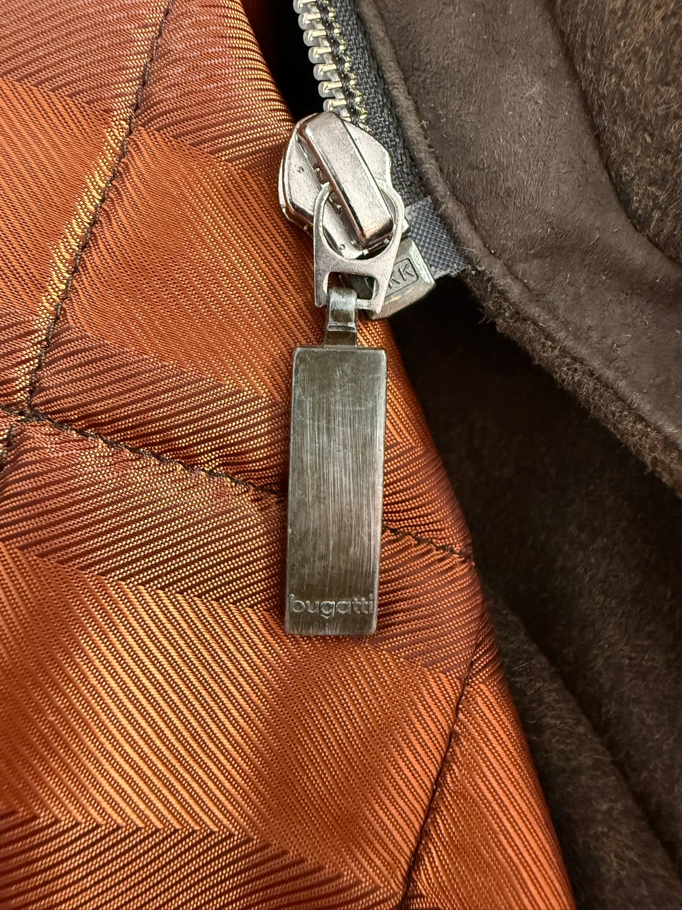 Abrigo Bugatti Color marrón talla 52 (L) en muy buen estado (pequeñas marcas de uso). Gran calidad de poliamida y poliuretano con forro interior de acetato y poliamida, cuenta con todos los botones y cremalleras originales.