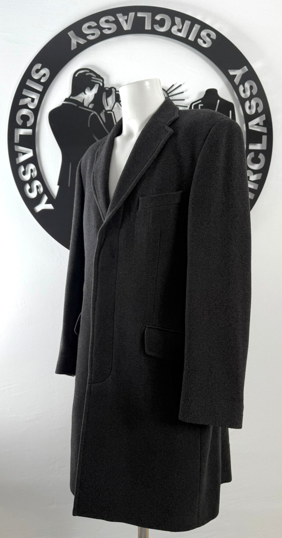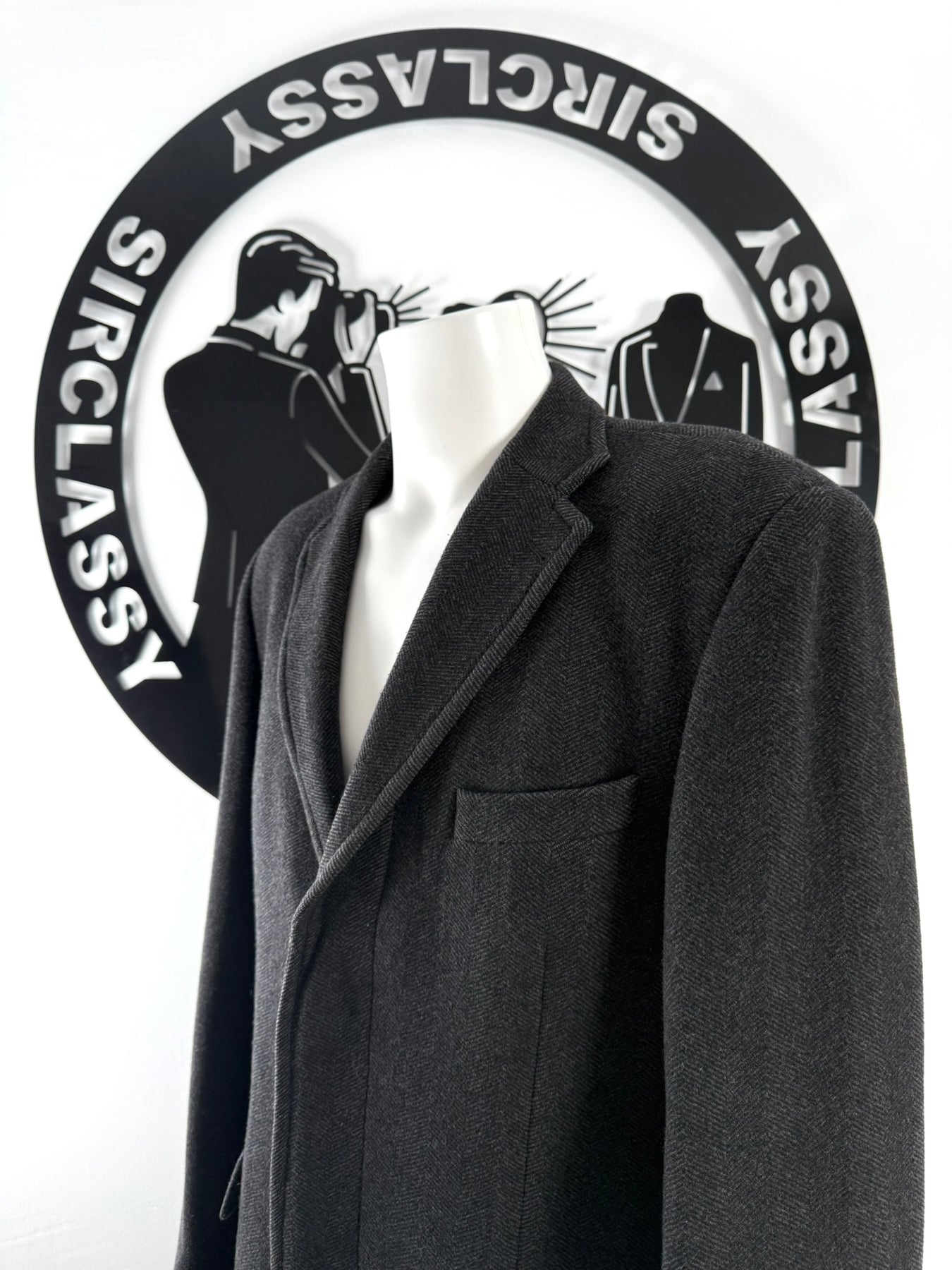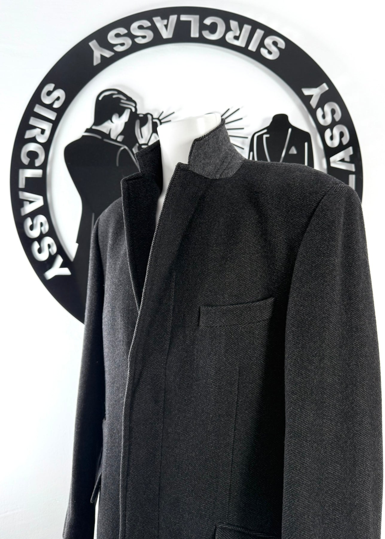 Abrigo largo de lana Balmain color gris oscuro talla (L) en perfecto estado (prácticamente nuevo con poco uso). Gran calidad de lana y poliamida con forro interior de poliéster y viscosa, con todos los botones originales.