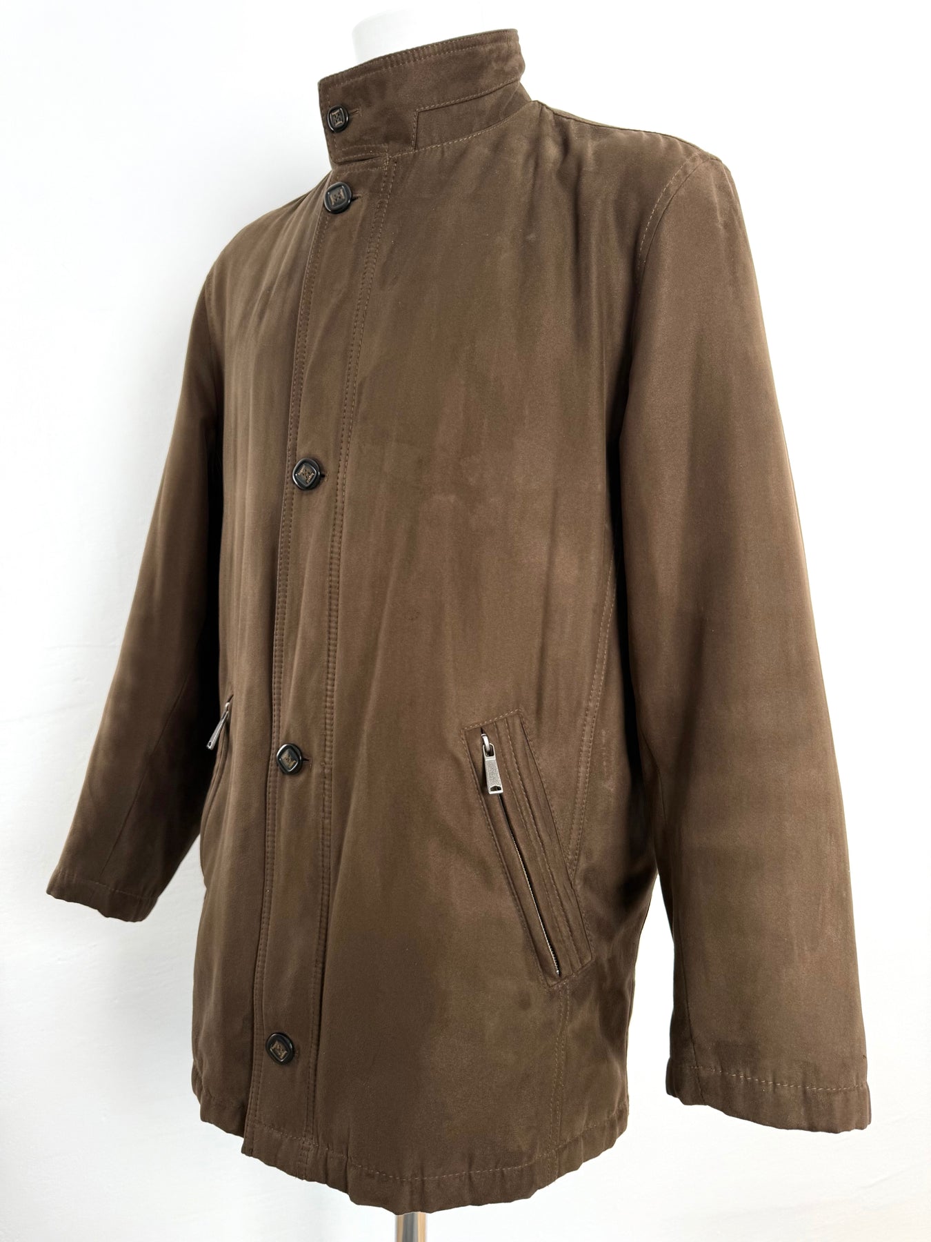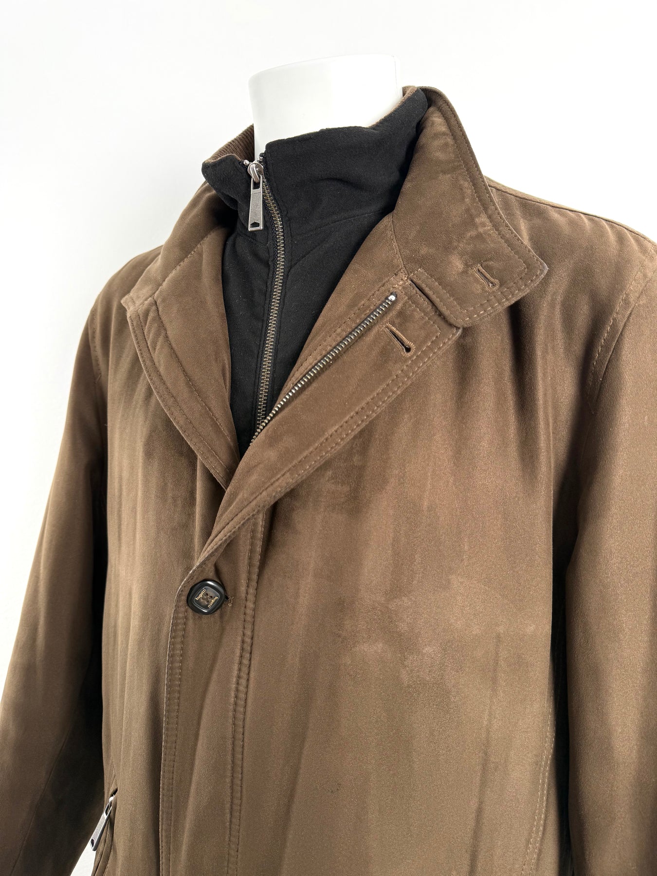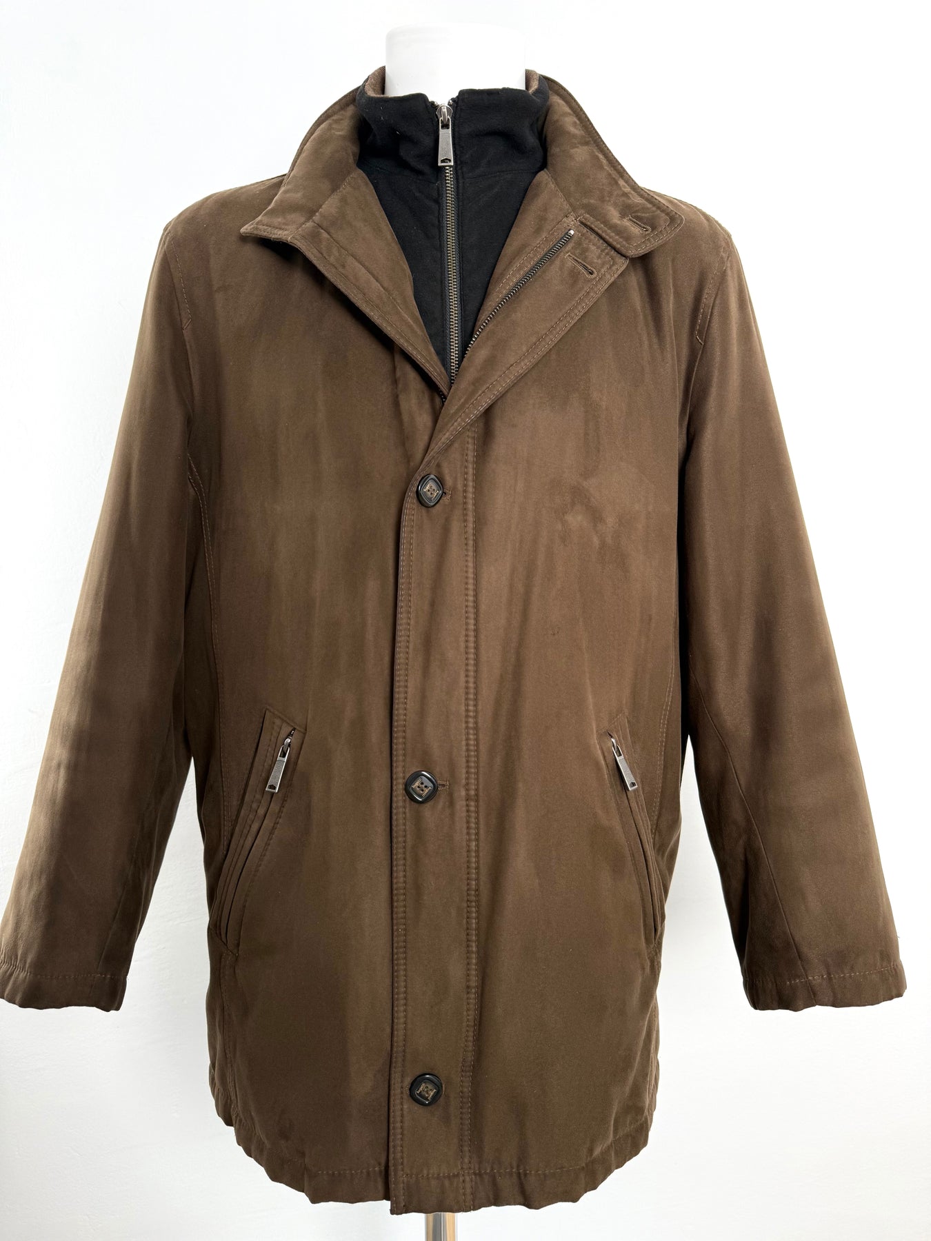 Abrigo Bugatti color marrón talla 50 (L) en muy buen estado (prácticamente nuevo con pequeño cosido en el cuello prácticamente invisible). Gran calidad de poliéster con forro interior de viscosa y poliéster , cuenta con todos los botones originales.