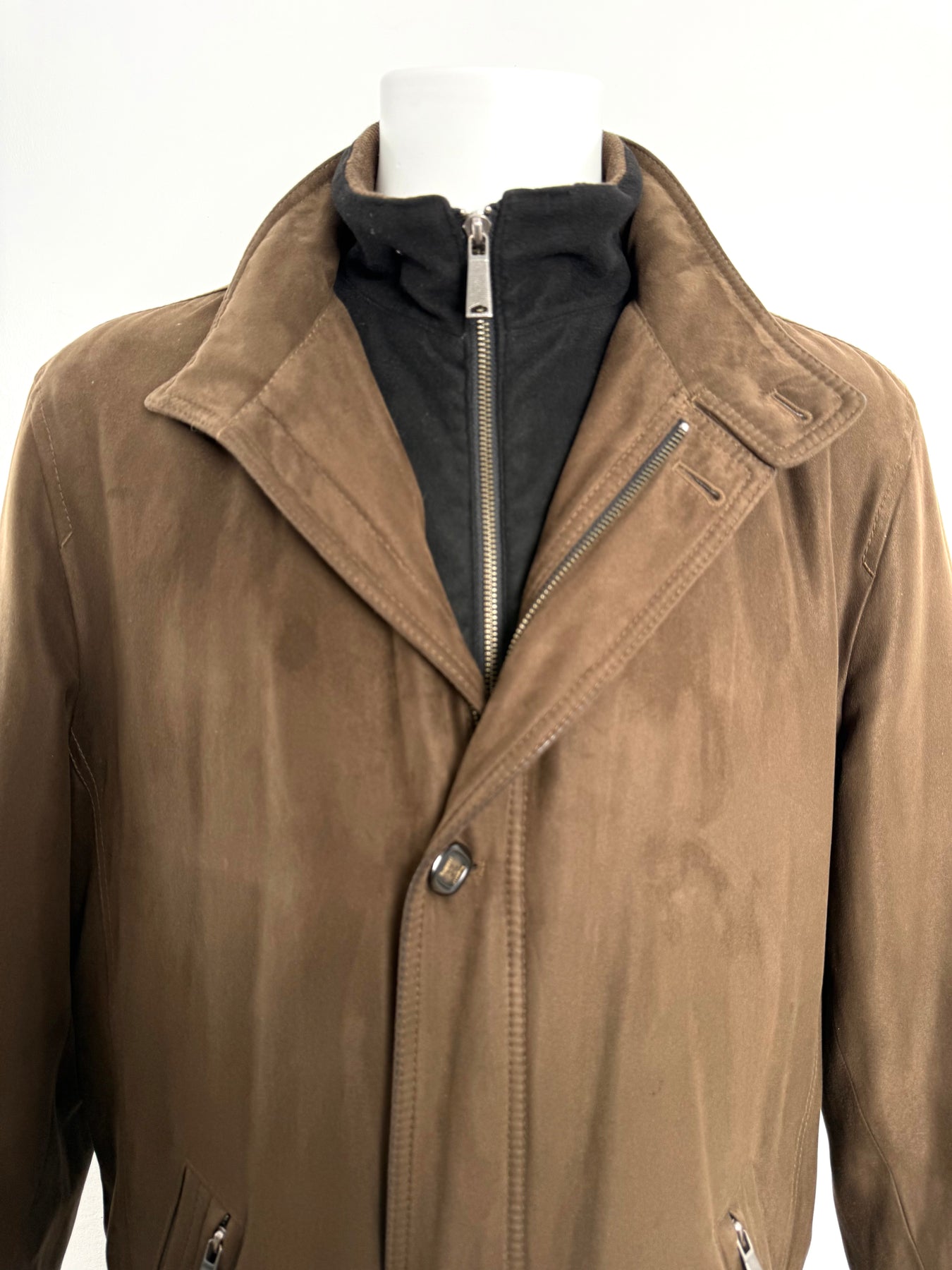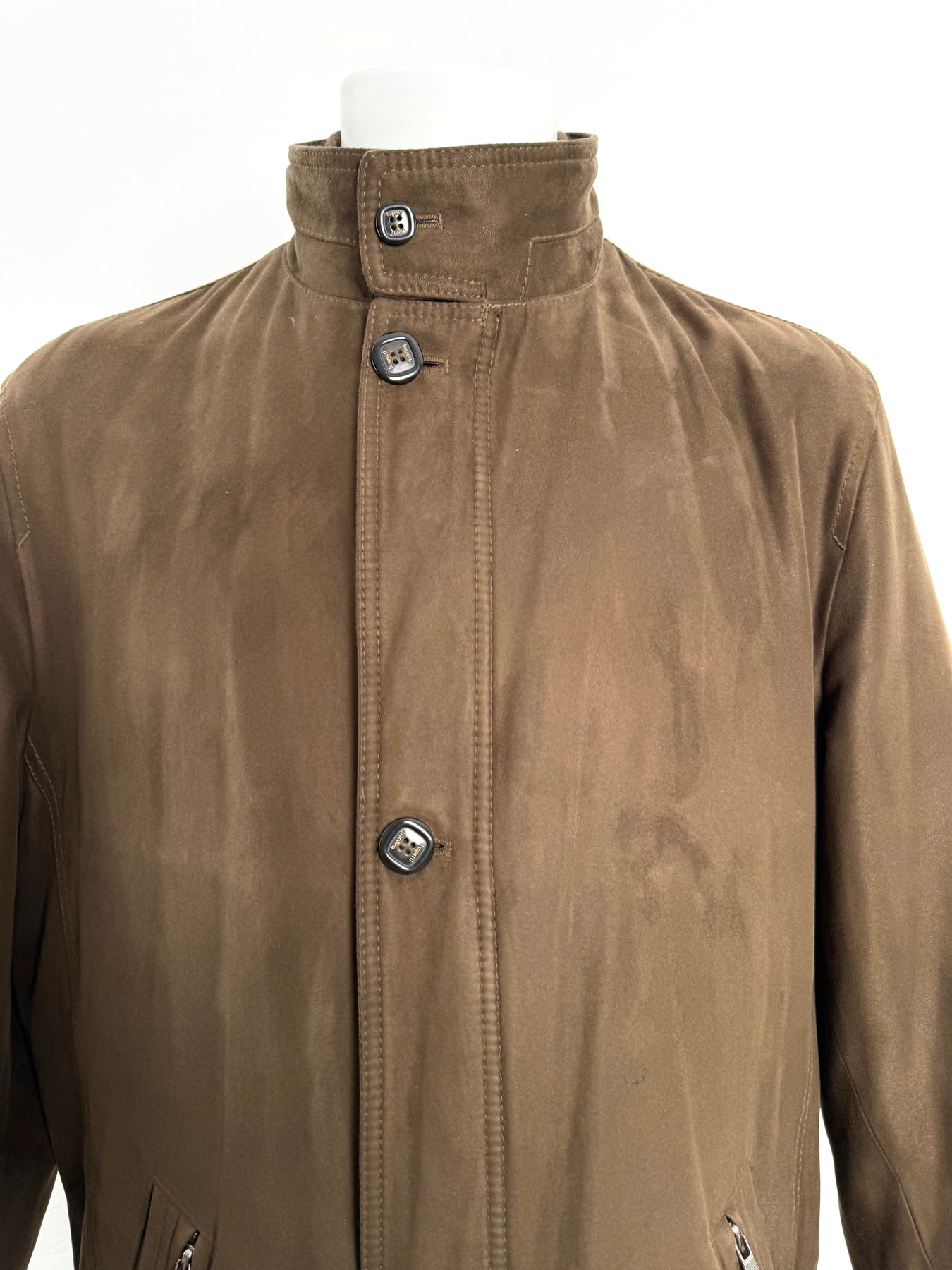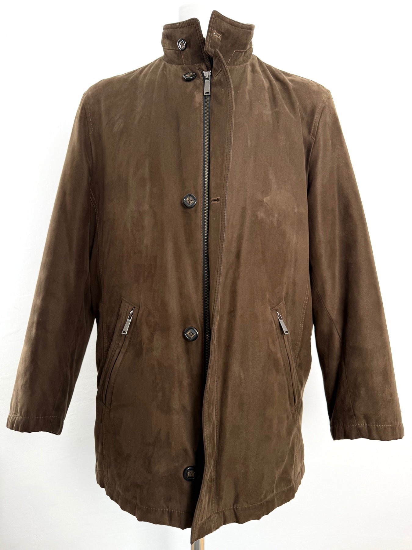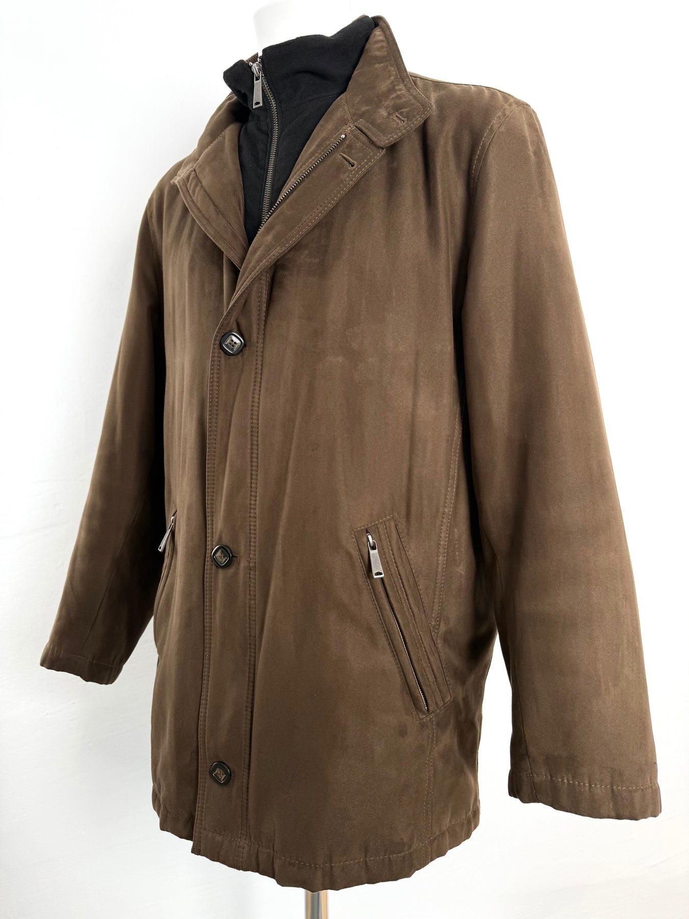 Abrigo Bugatti color marrón talla 50 (L) en muy buen estado (prácticamente nuevo con pequeño cosido en el cuello prácticamente invisible). Gran calidad de poliéster con forro interior de viscosa y poliéster , cuenta con todos los botones originales.