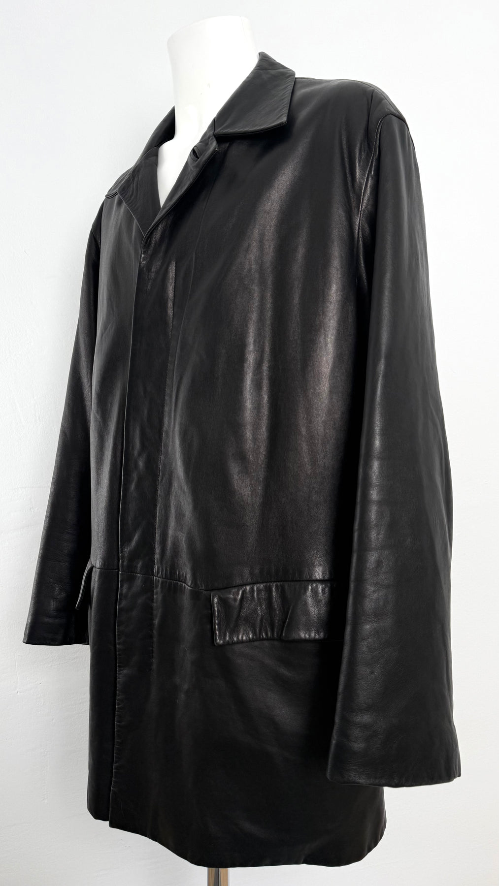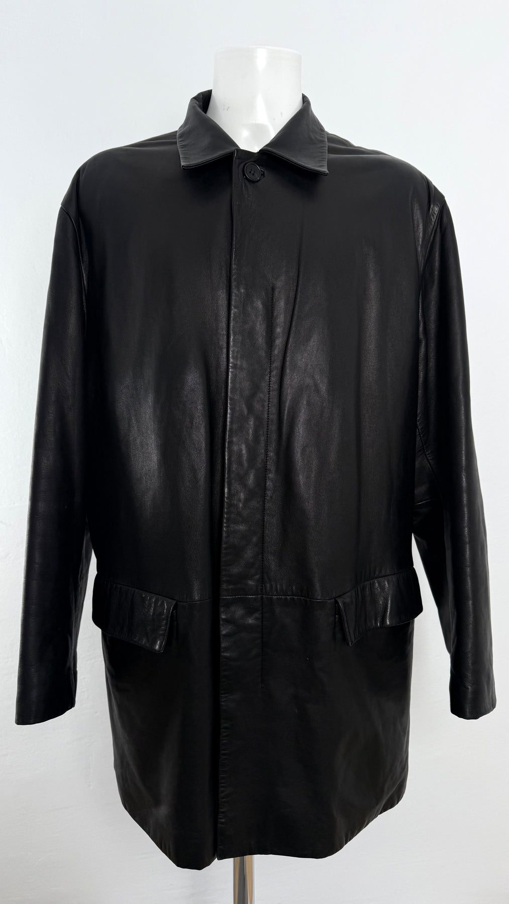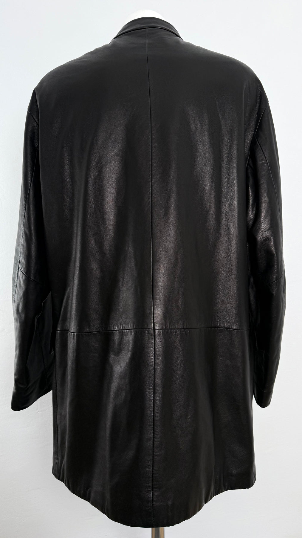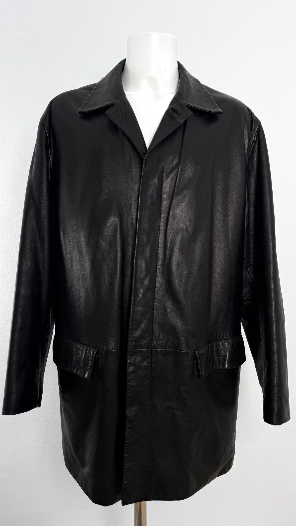 Abrigo de piel Hugo Boss color negro talla 56 (XXL) en perfecto estado (prácticamente nuevo con poco uso). Gran calidad de piel con forro interior de viscosa y acetato, cuenta con todos los botones originales.