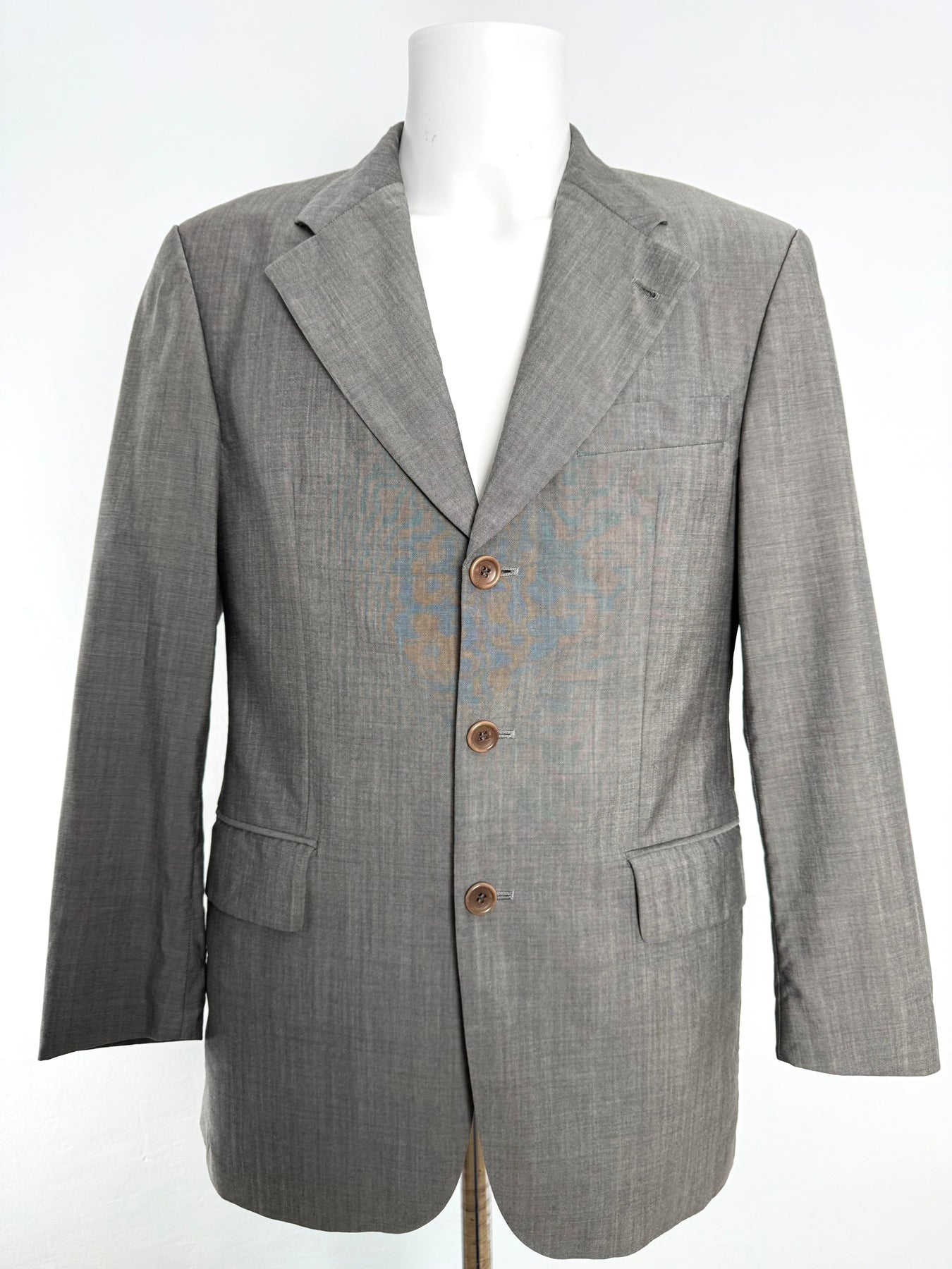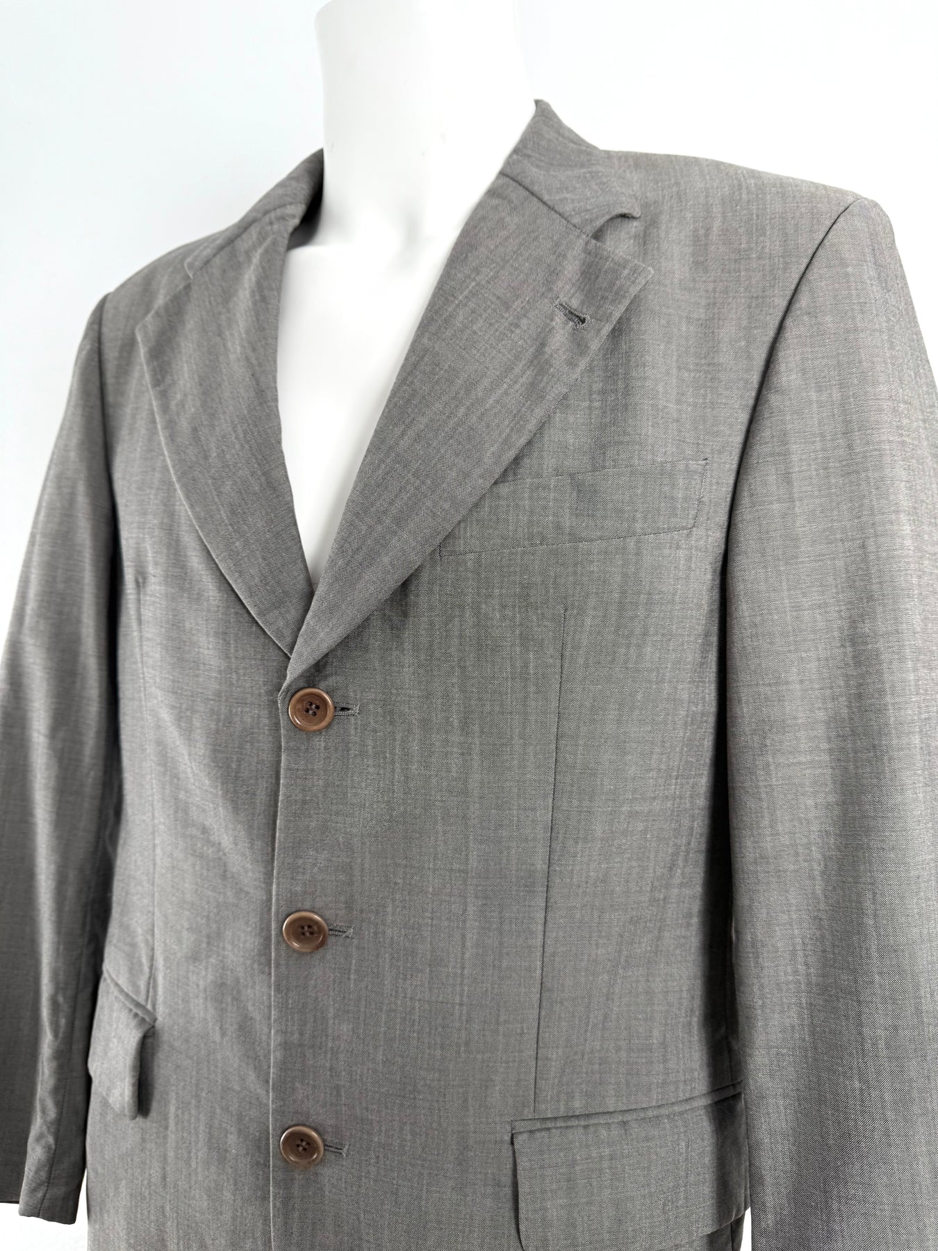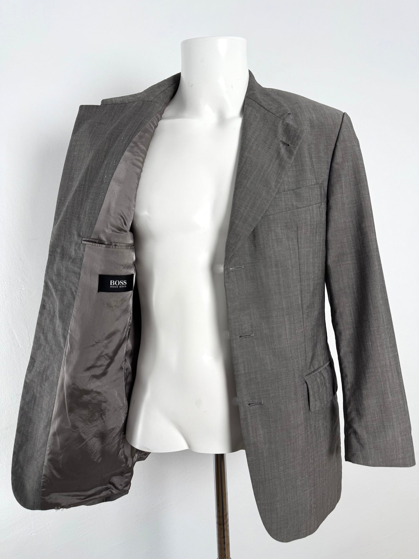 Americana de lana Hugo Boss color gris talla 46 (S) en perfecto estado (prácticamente nuevo con poco uso). Gran calidad de lana y mohair con torro interior de viscosa, cuenta con todos los botones originales.