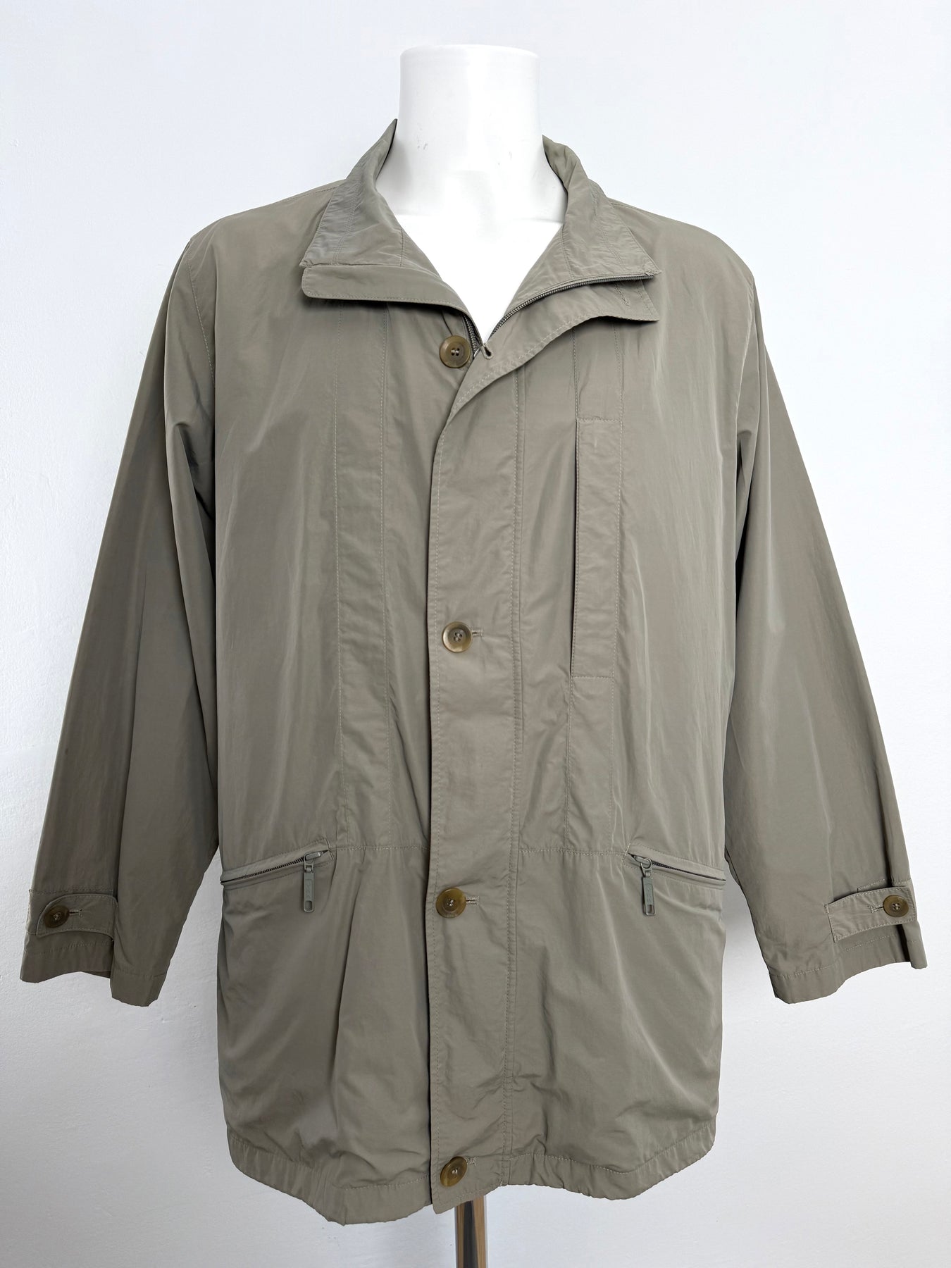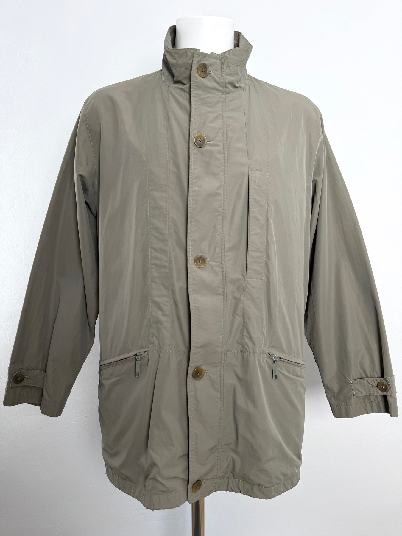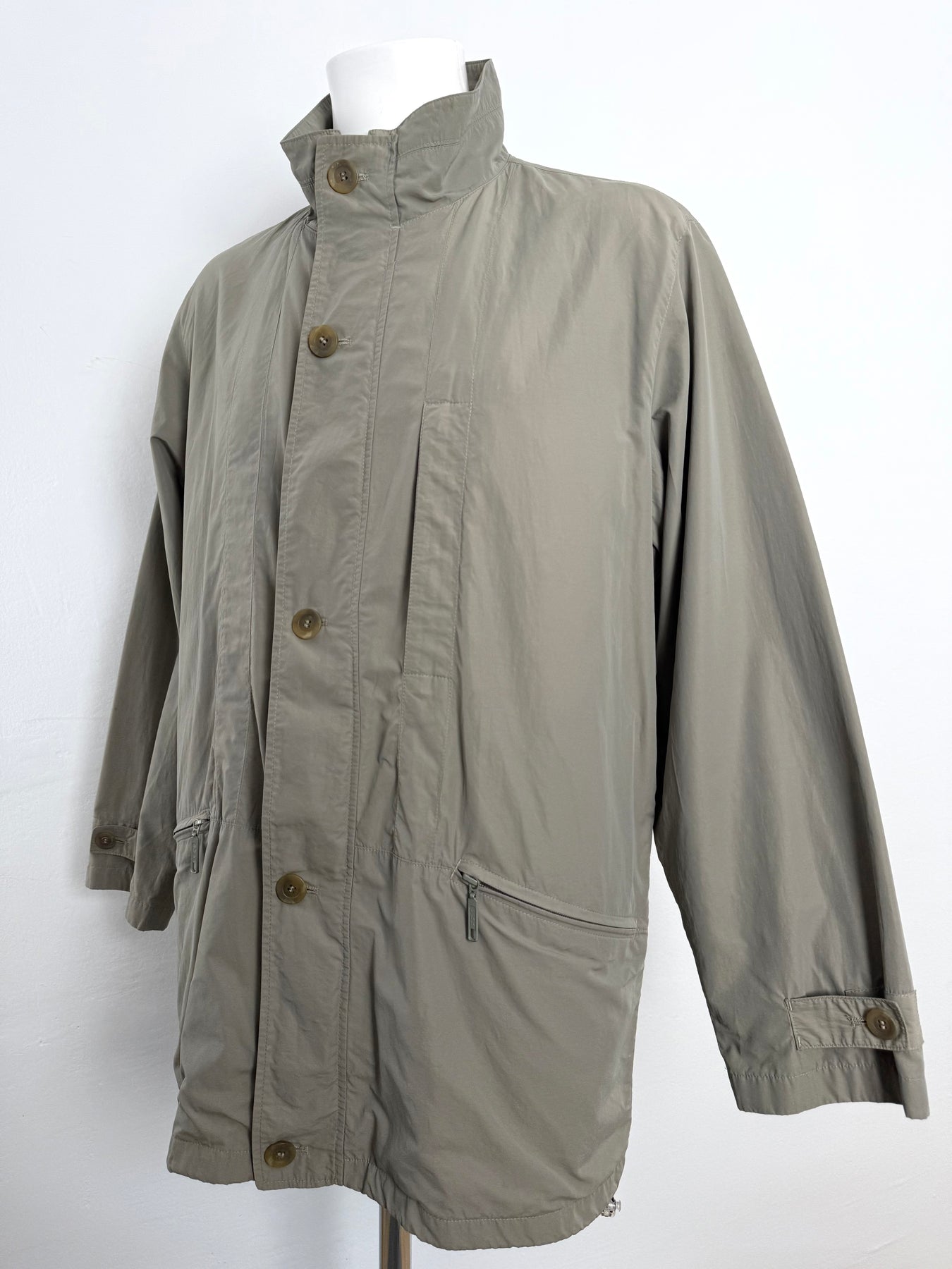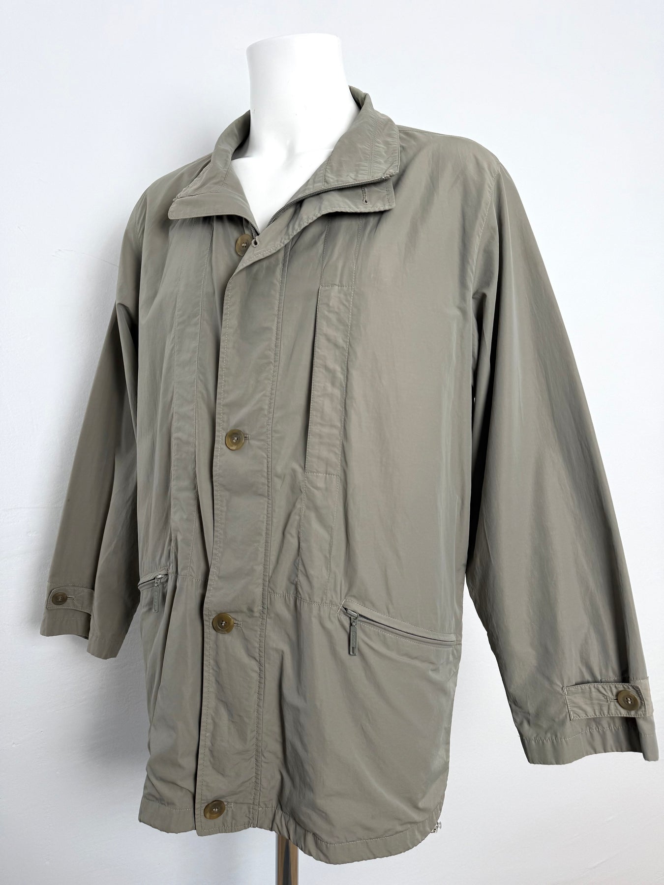 Cazadora Bugatti color caqui talla 50 (L) en perfecto estado (prácticamente nuevo con poco uso). Gran calidad de poliamida y algodón con forro interior de viscosa, con todos los botones y cremalleras originales.