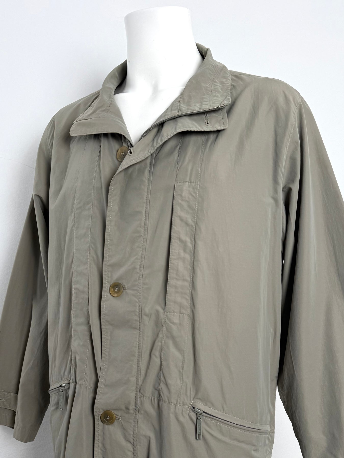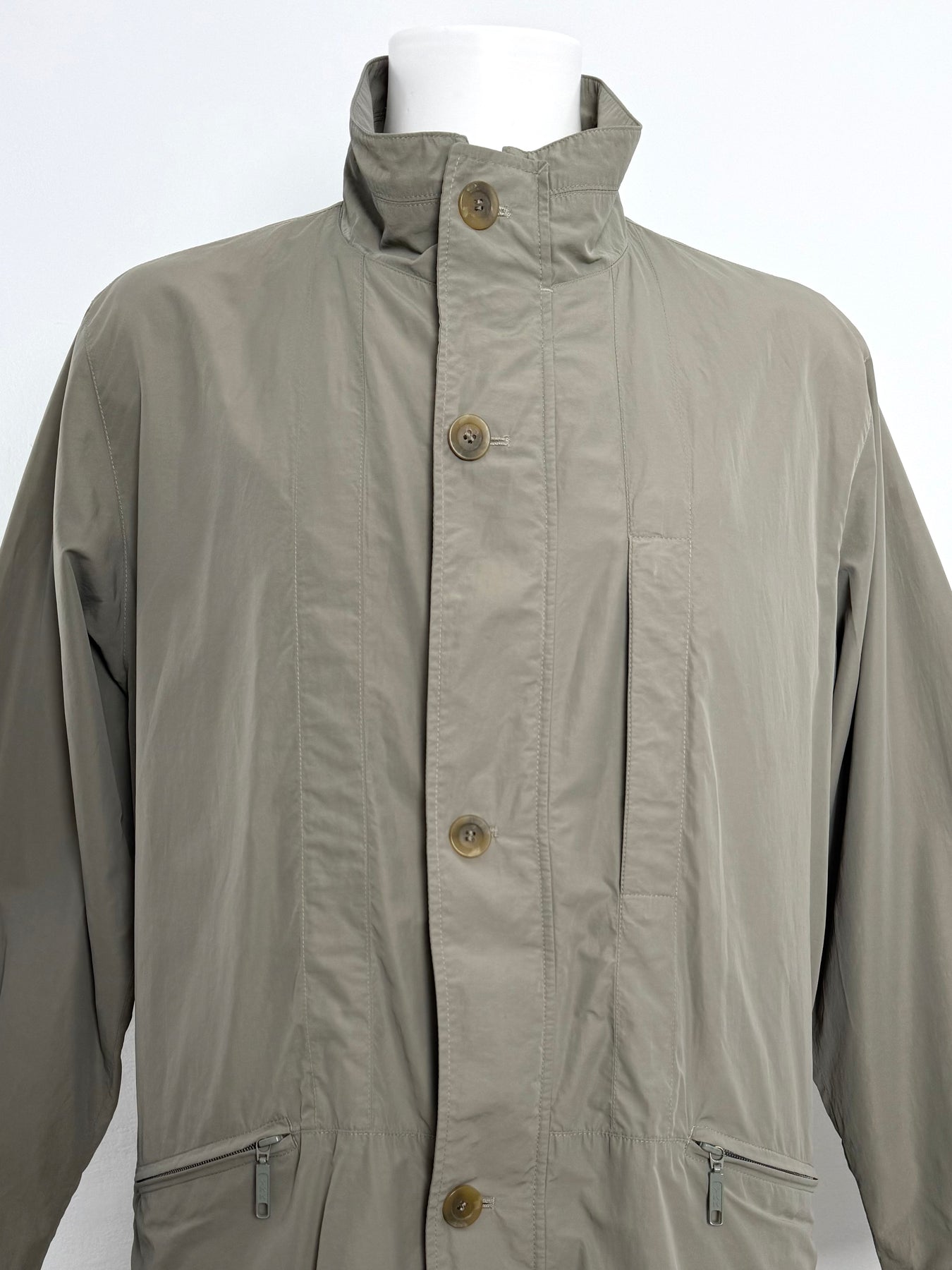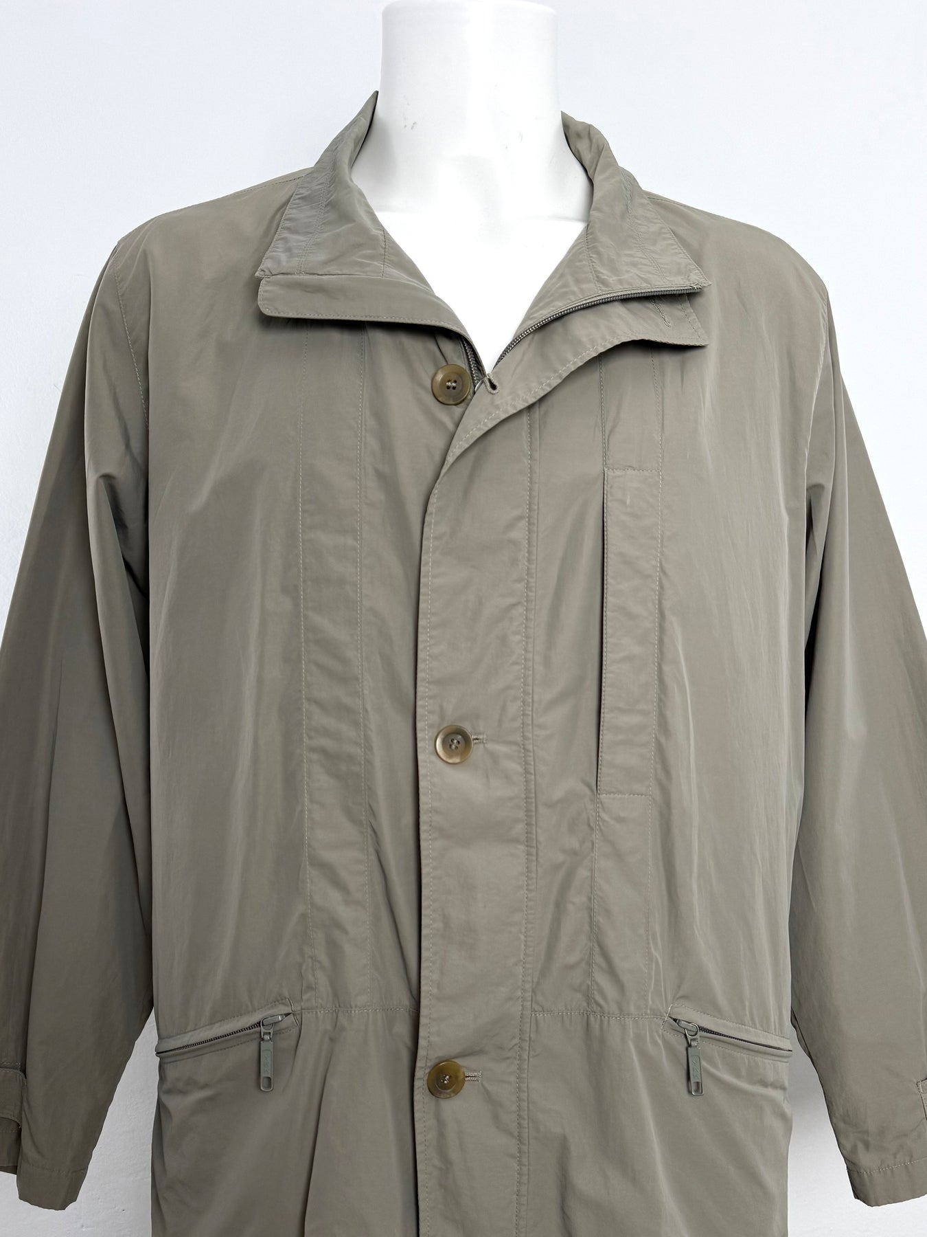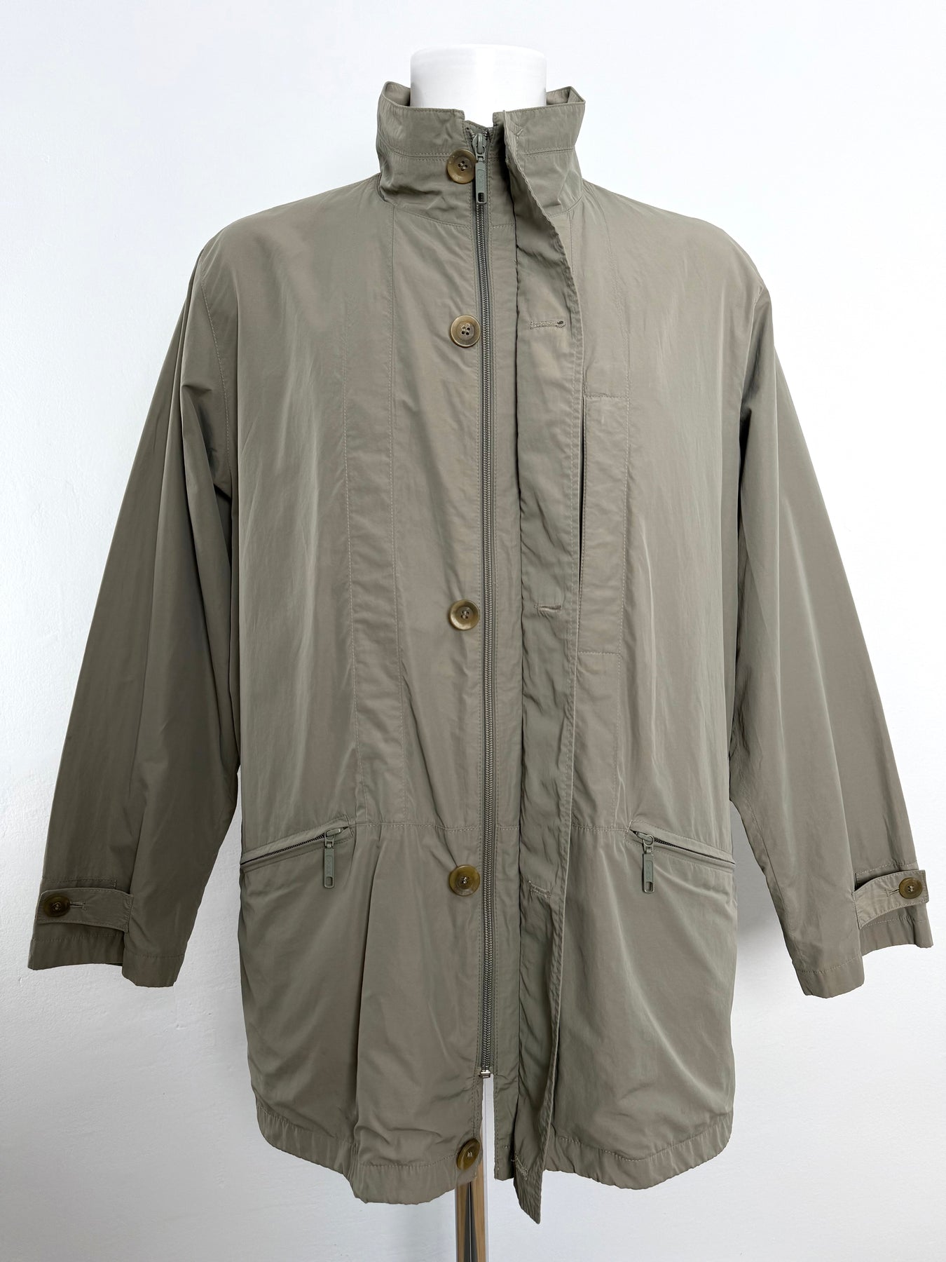 Cazadora Bugatti color caqui talla 50 (L) en perfecto estado (prácticamente nuevo con poco uso). Gran calidad de poliamida y algodón con forro interior de viscosa, con todos los botones y cremalleras originales.