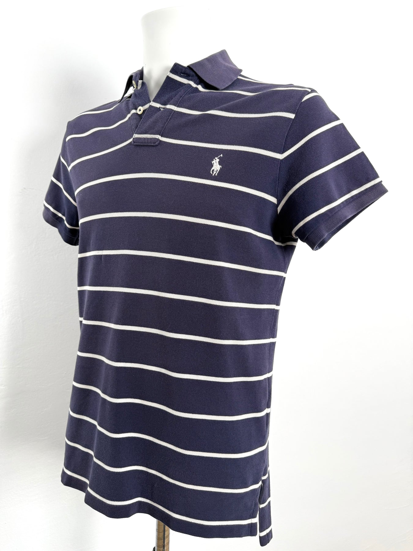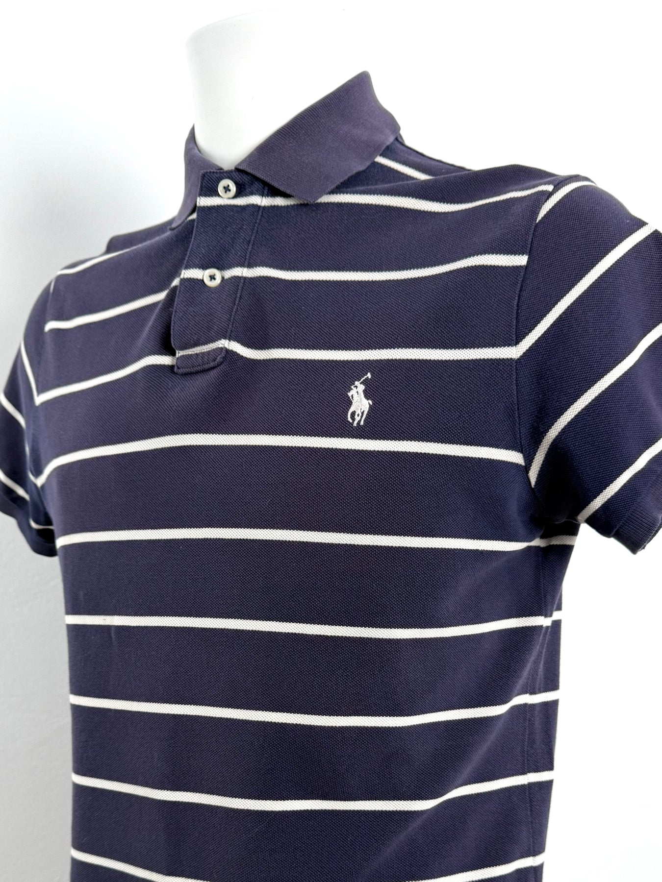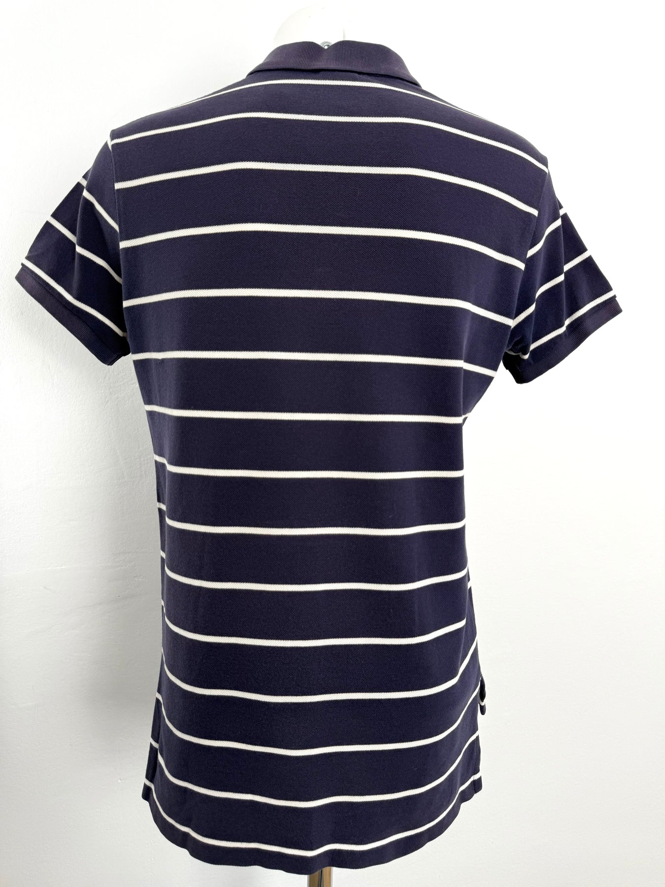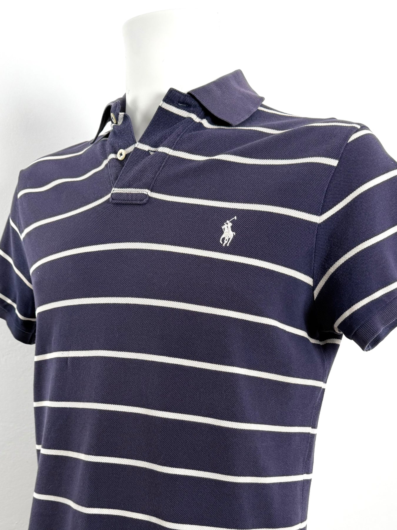 Polo Ralph Lauren color blanco y morado talla M en muy buen estado (prácticamente nuevo con pequeñas marcas de uso). Gran calidad de algodón, cuenta con todos los botones originales.