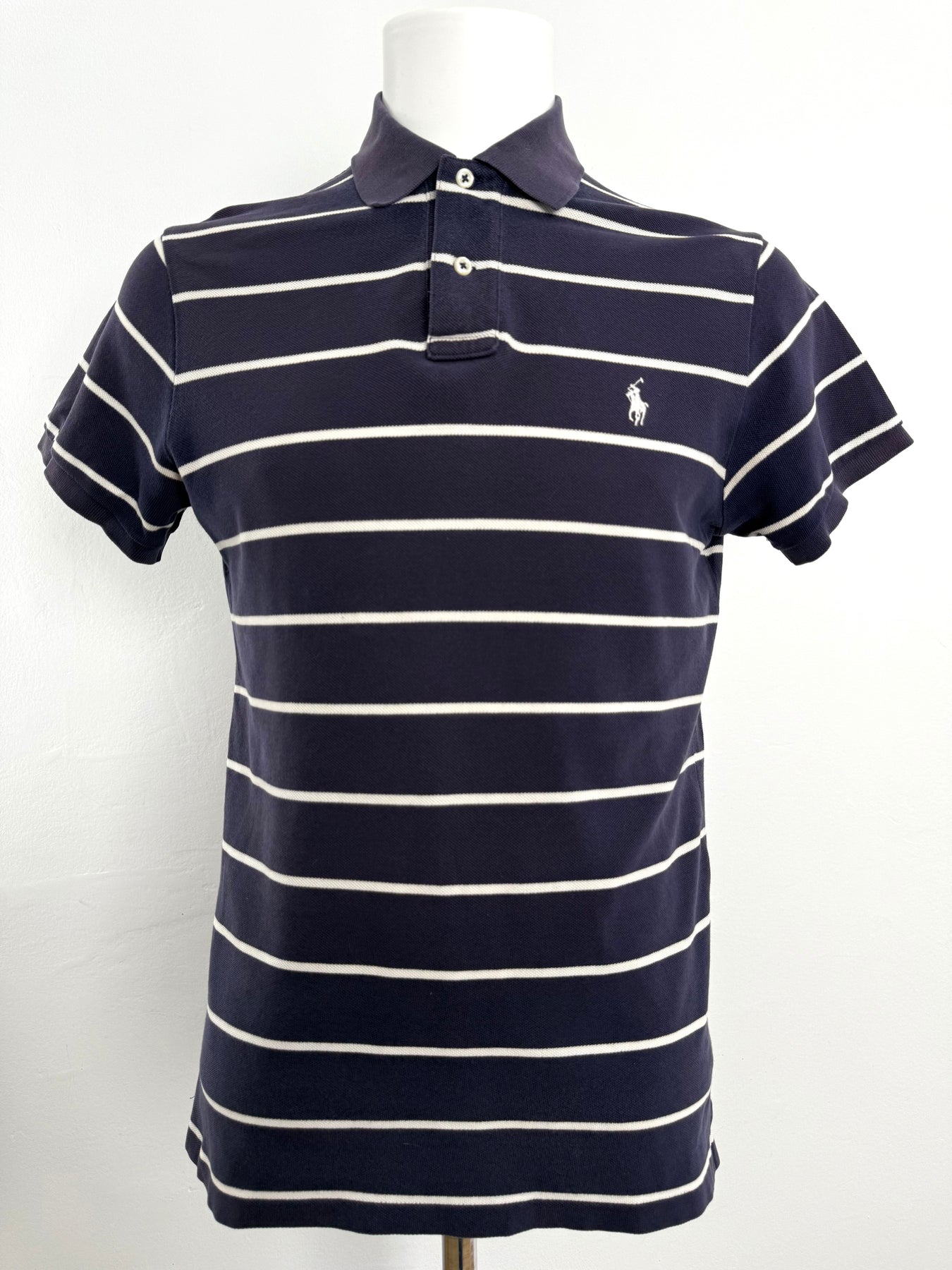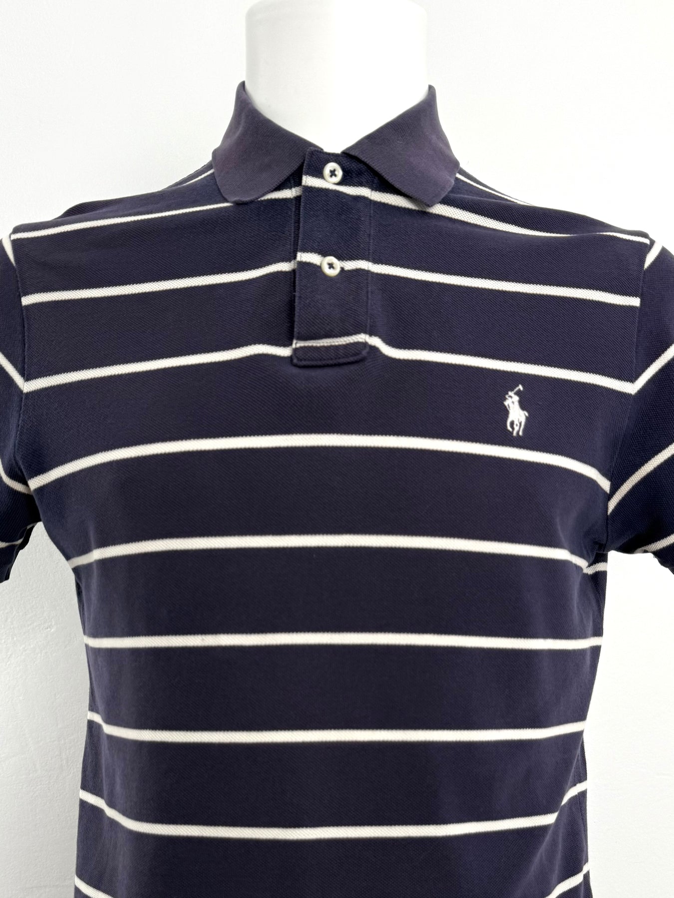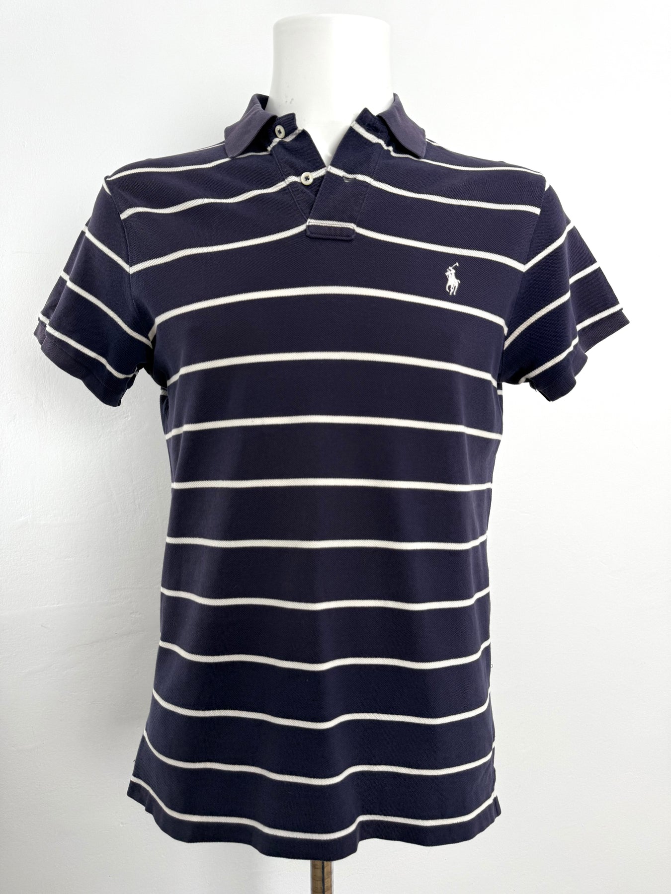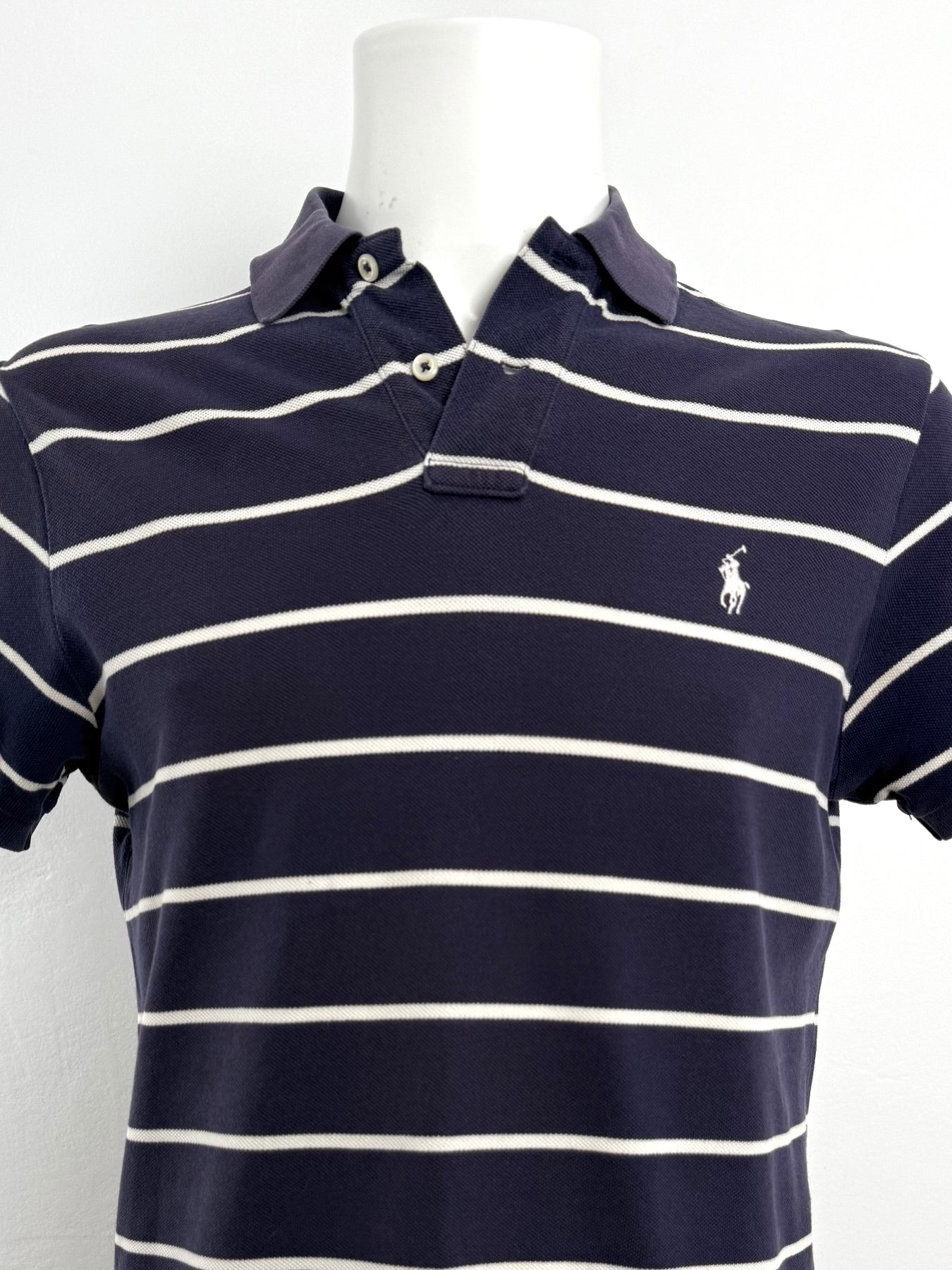 Polo Ralph Lauren color blanco y morado talla M en muy buen estado (prácticamente nuevo con pequeñas marcas de uso). Gran calidad de algodón, cuenta con todos los botones originales.