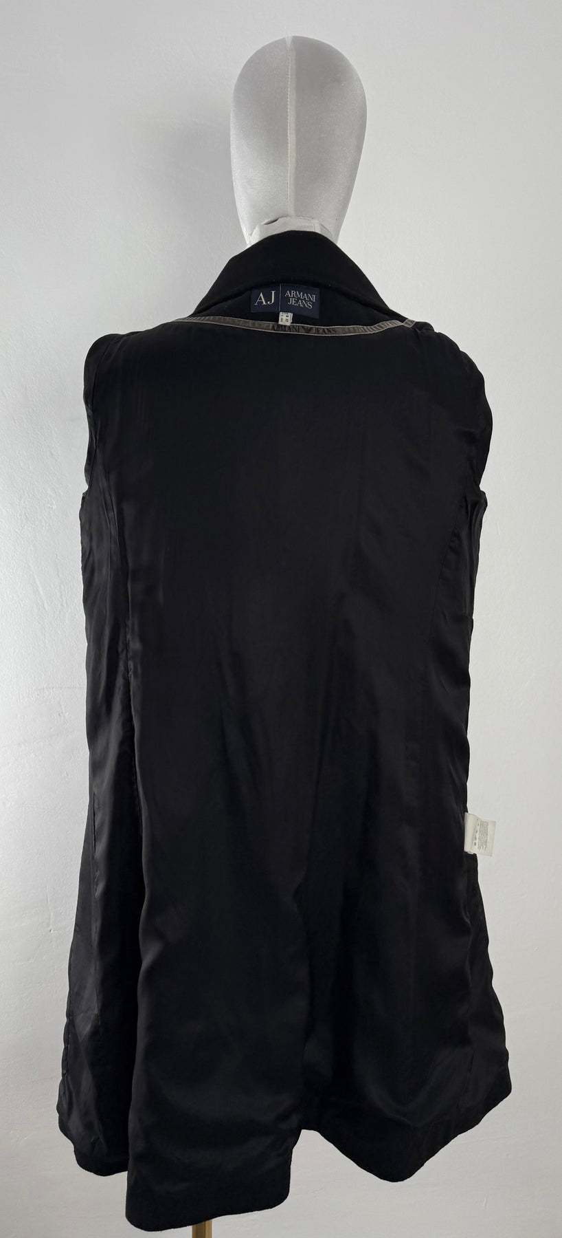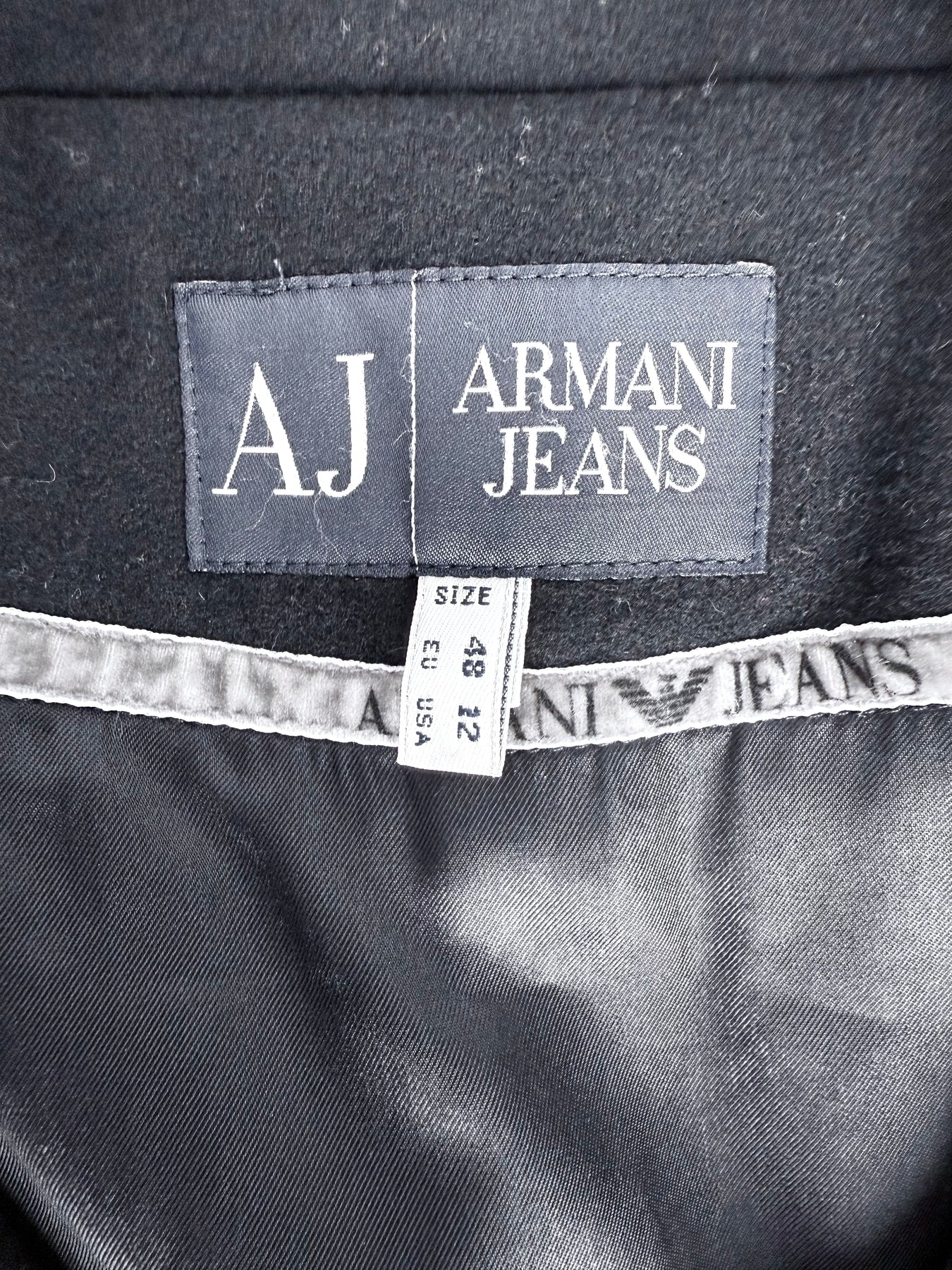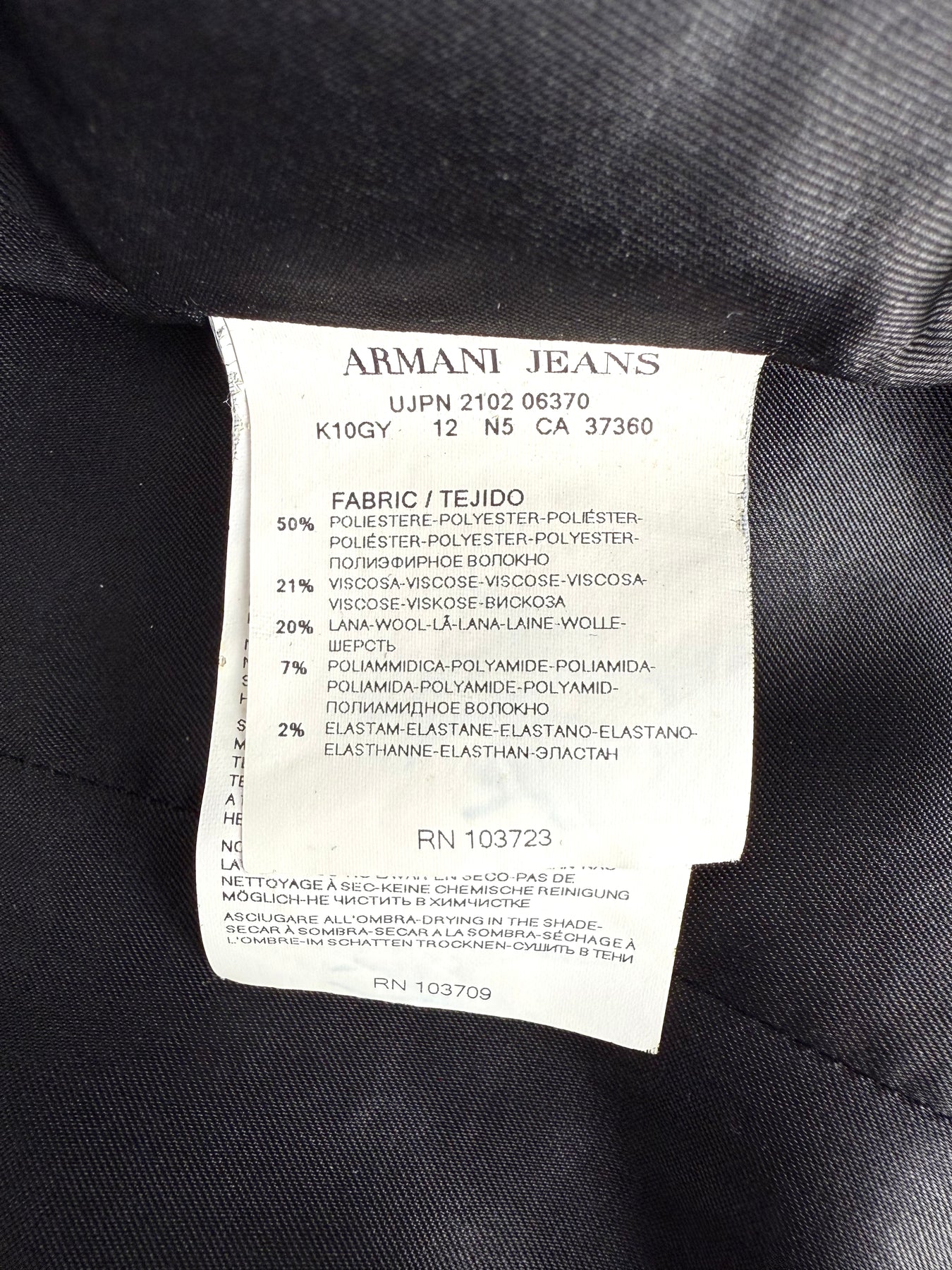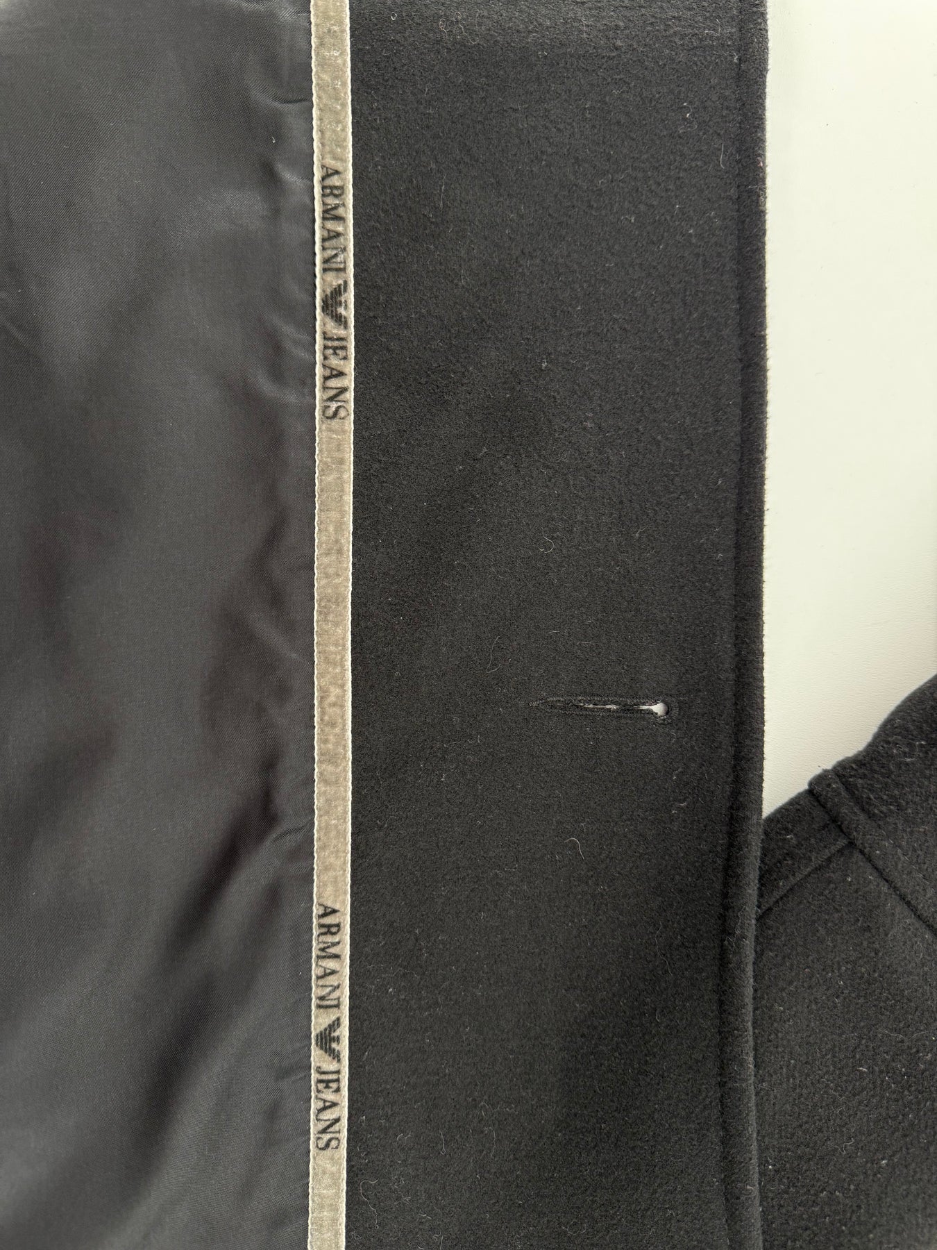 Abrigo Armani Jeans color negro talla 48 (L) en perfecto estado (prácticamente nuevo con poco uso). Gran calidad de poliéster, viscosa, lana, poliamida y elastano con forro interior de acetato y poliamida, cuenta con todos los botones originales.