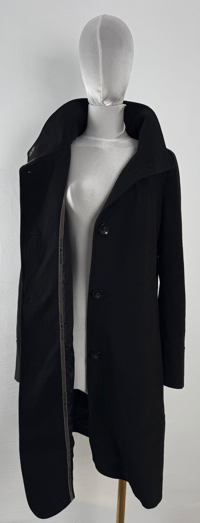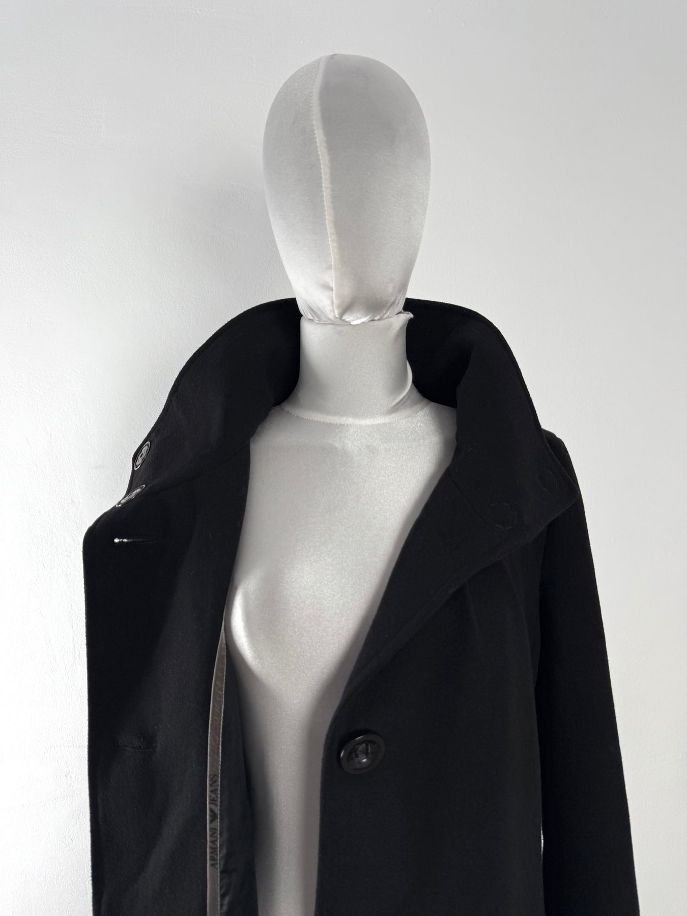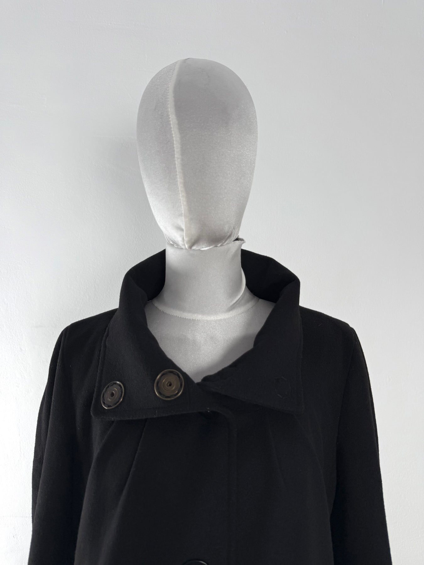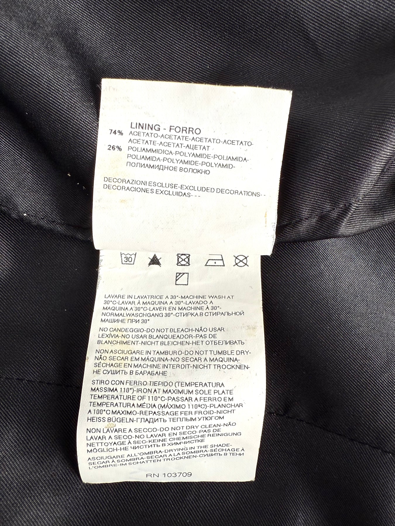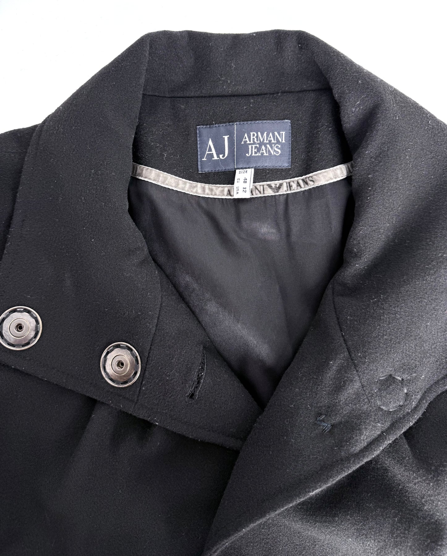Abrigo Armani Jeans color negro talla 48 (L) en perfecto estado (prácticamente nuevo con poco uso). Gran calidad de poliéster, viscosa, lana, poliamida y elastano con forro interior de acetato y poliamida, cuenta con todos los botones originales.