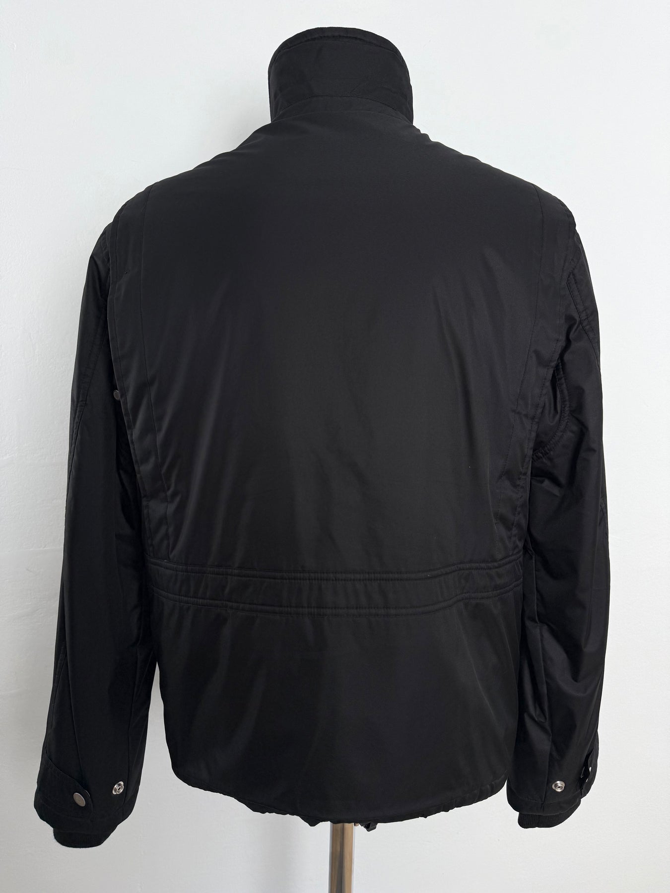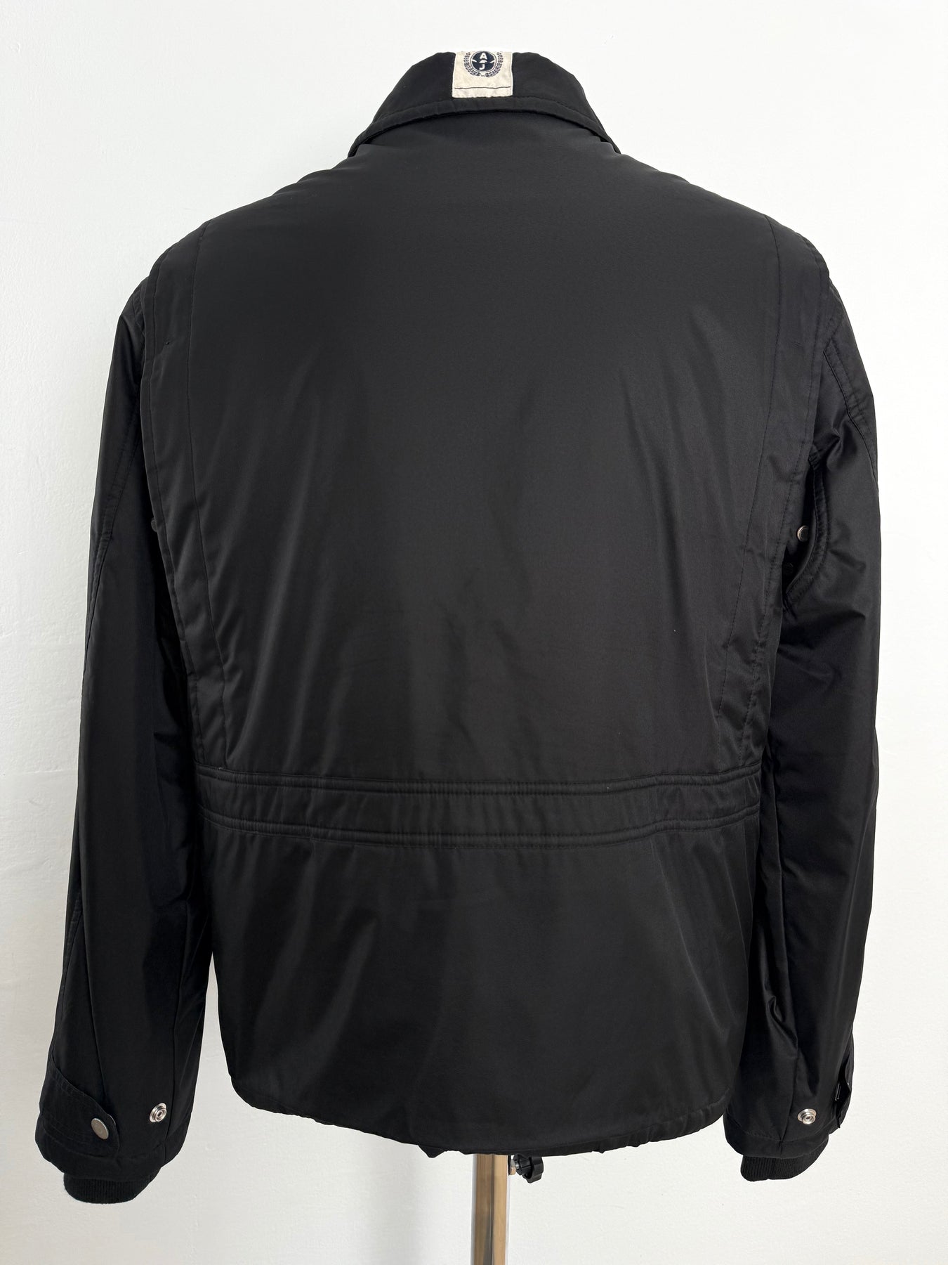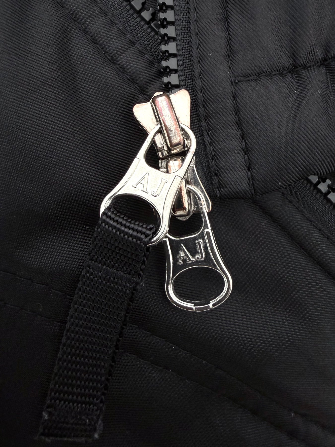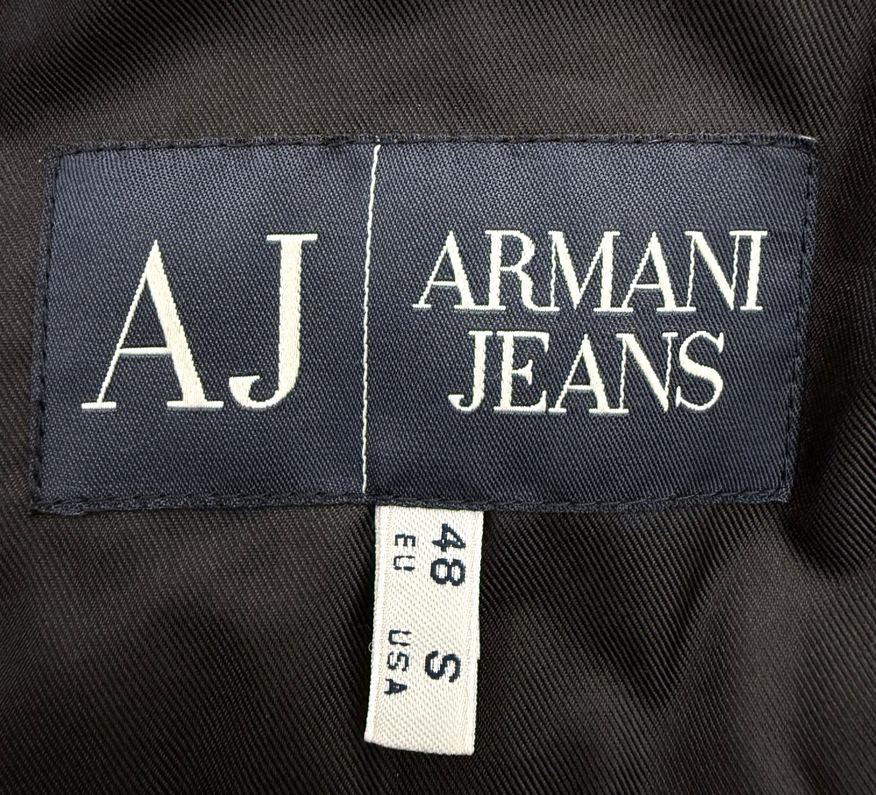 Abrigo Armani Jeans color negro talla 48 (S grande, se puede utilizar como M) en perfecto estado (prácticamente nuevo con poco uso, sin etiqueta de composición). Gran calidad de poliéster con forro interior de poliamida, cuenta con todos los botones y cremalleras originales.