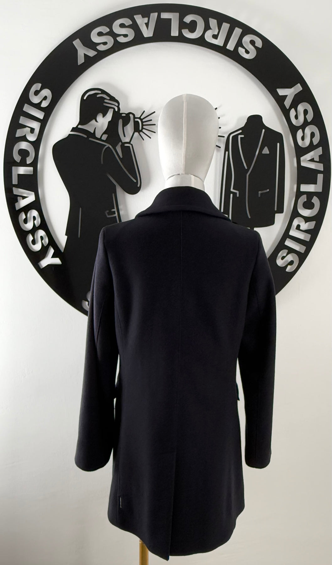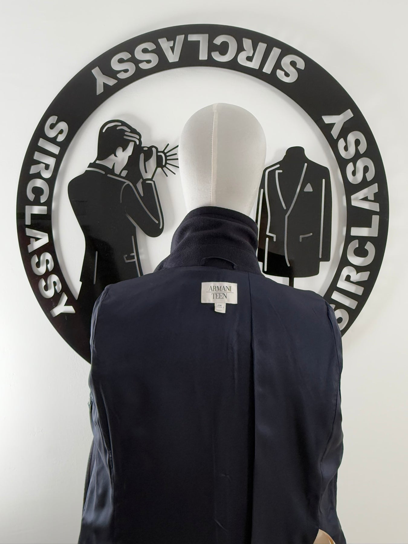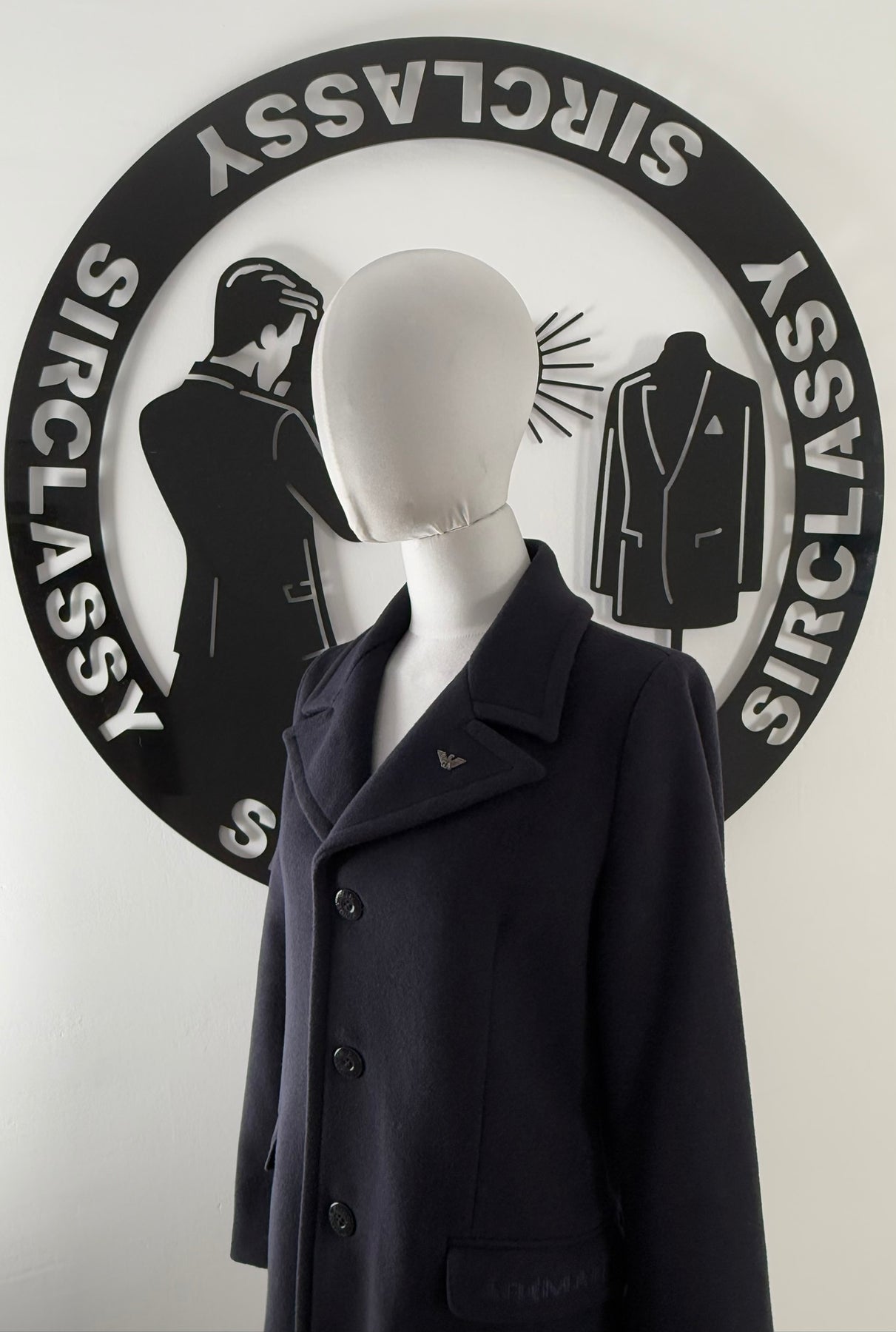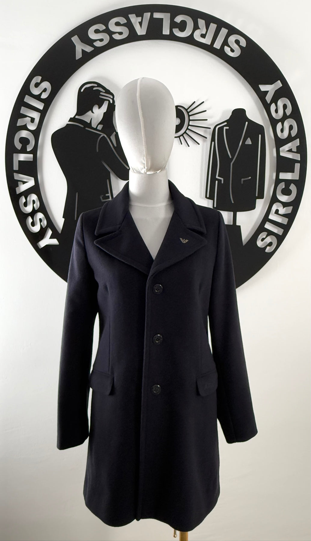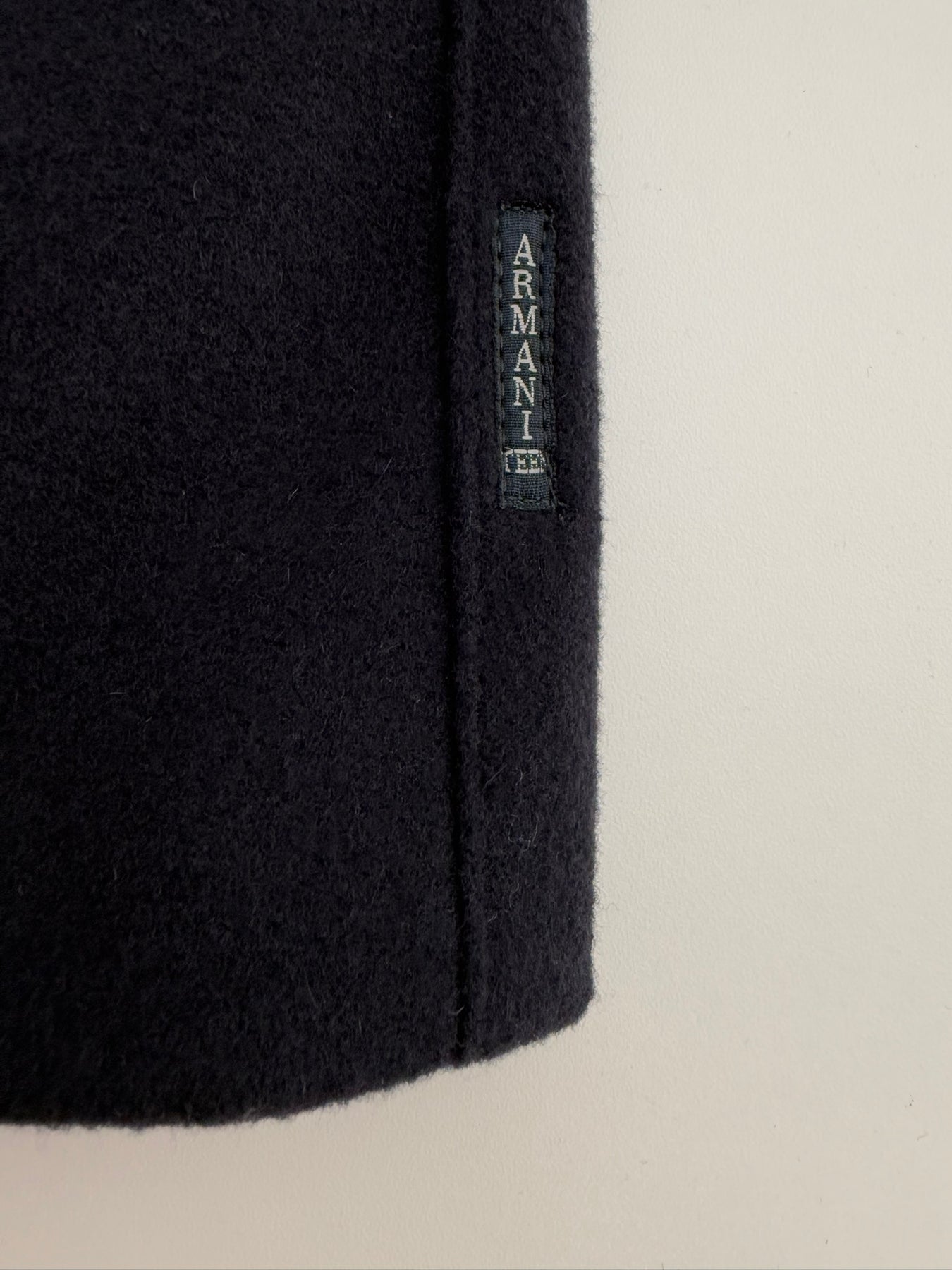 Abrigo de lana Armani Teen color azul oscuro talla 12 años (Equivalente a una S de mujer) en muy buen estado (pequeño roce en la lana de la parte frontal, poco visible). Gran calidad de lana, poliamida, angora y elastano con forro interior de acetato y poliamida, con todos los botones originales.