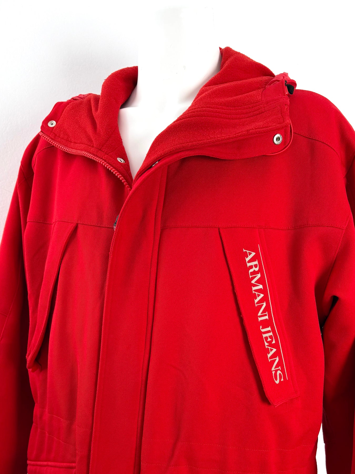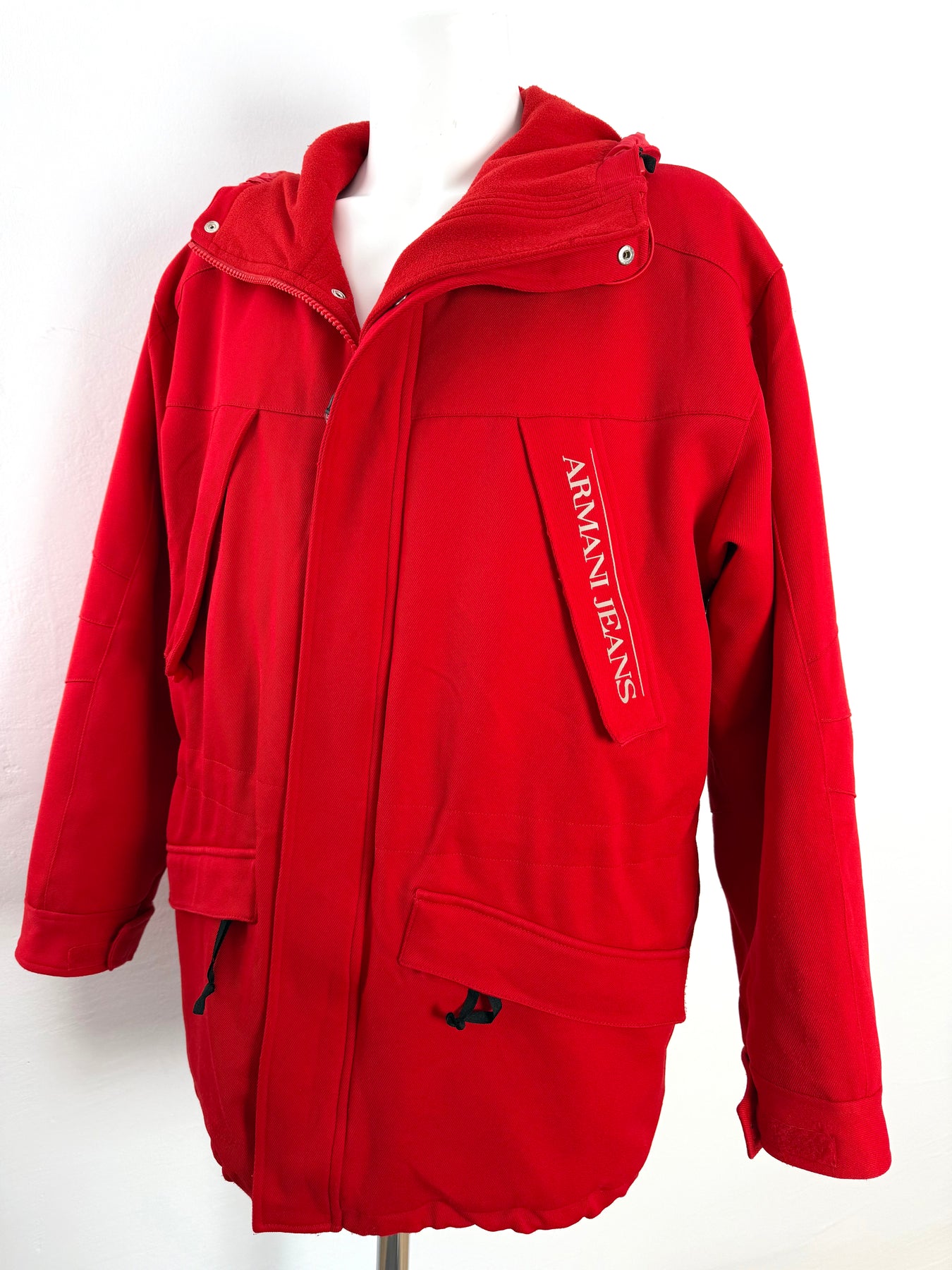 Abrigo Armani Jeans color rojo talla 50 (XL) en perfecto estado (practicamente nuevo con poco uso). Gran calidad de poliéster, cuenta con todos los botones y cremalleras originales.