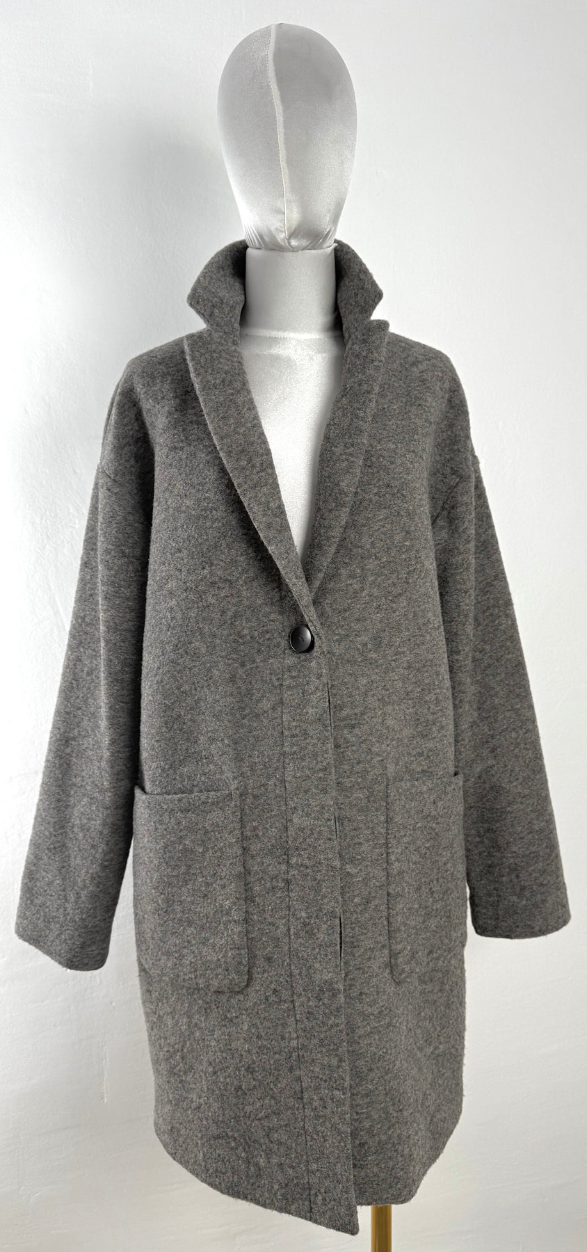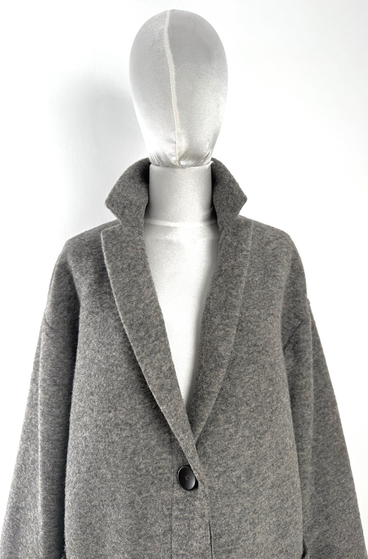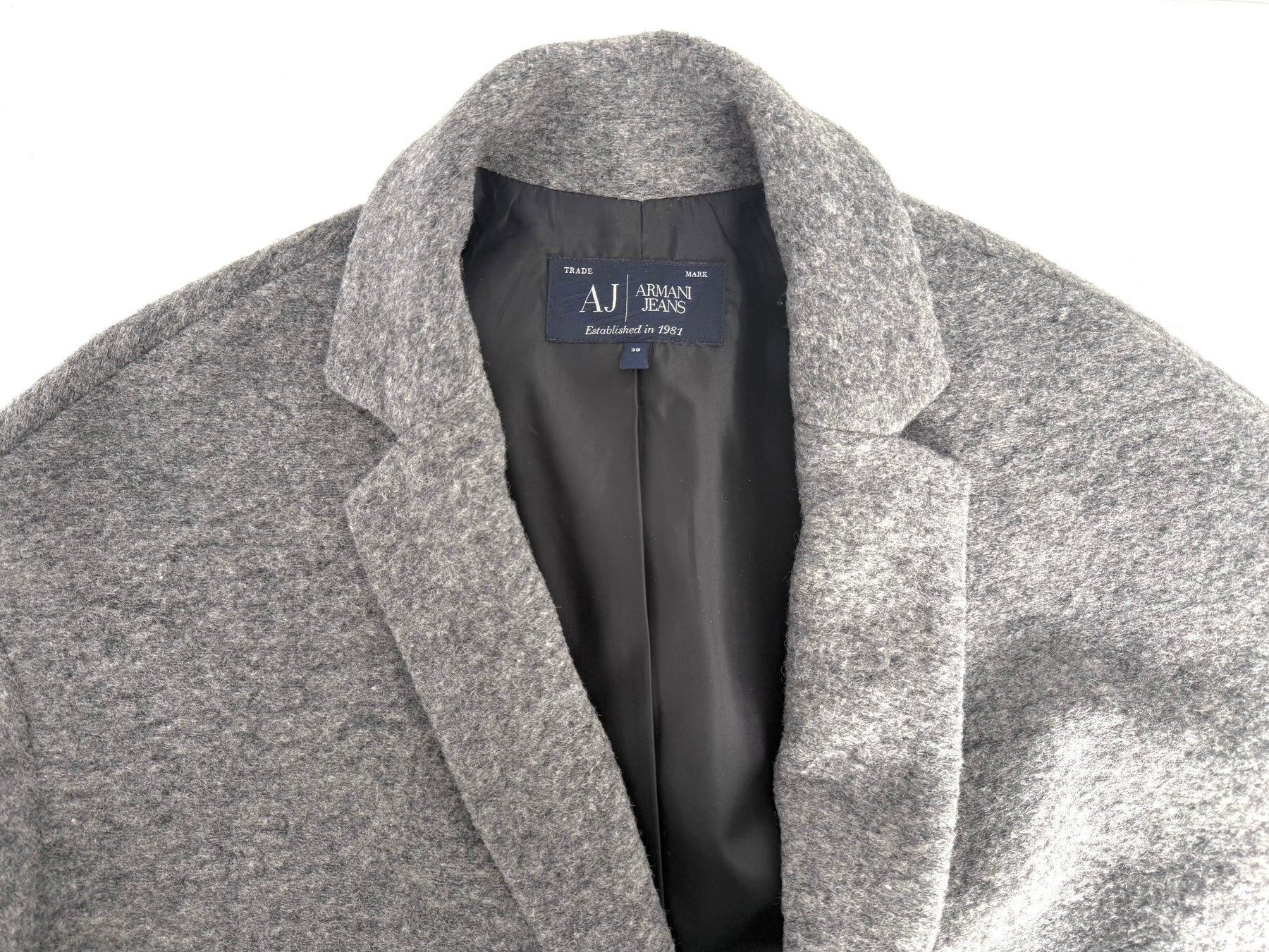 Abrigo Armani Jeans color gris talla 38 (XL) en perfecto estado (prácticamente nuevo con poco uso, falta el botón de abajo). Gran calidad de poliéster y lana con forro interior de poliéster, cuenta con todos los botones originales.