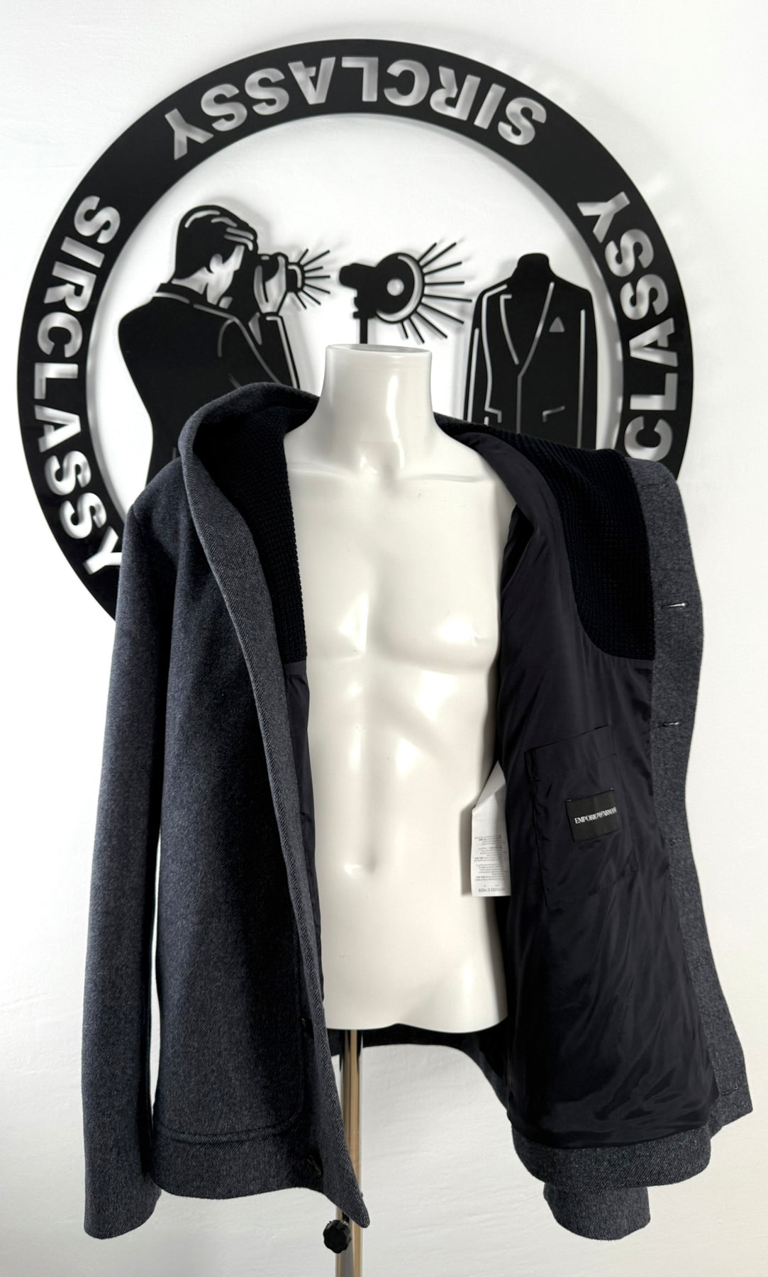 Abrigo de lana Emporio Armani color azul  marino talla 56 (XXL)en perfecto estado (prácticamente nuevo con poco uso). Gran calidad de lana con forro interior de acetato y poliéster, con todos los botones originales.
