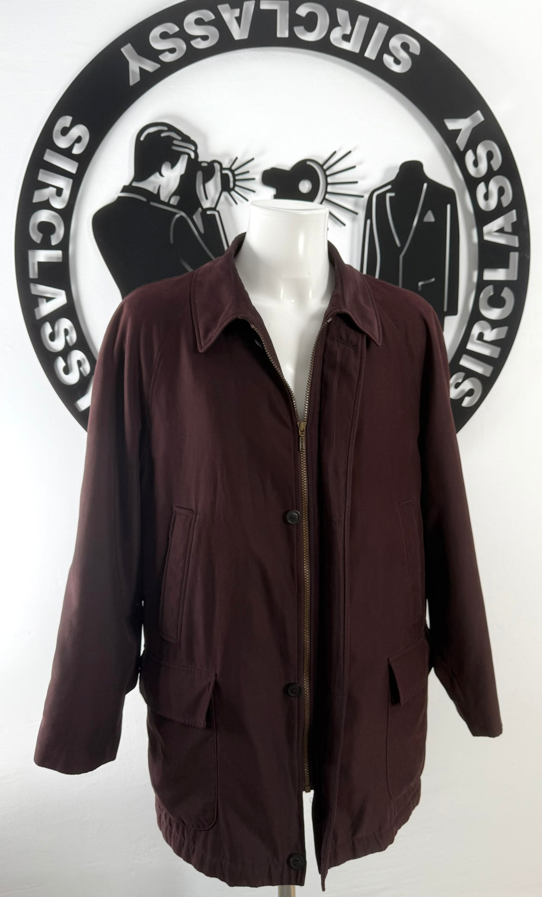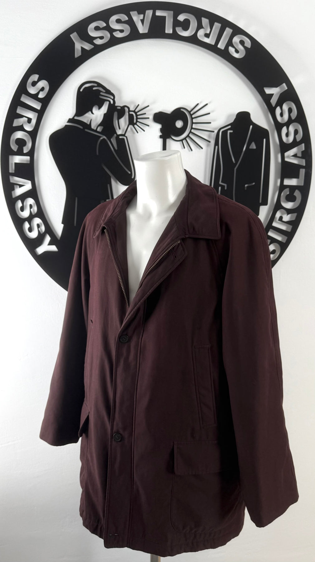 Abrigo Bugatti color burdeos oscuro talla 52 (L) en muy buen estado (pequeñas marcas de uso). Gran calidad de lana, poliéster y acrílico, cuenta con todos los botones y cremalleras originales.