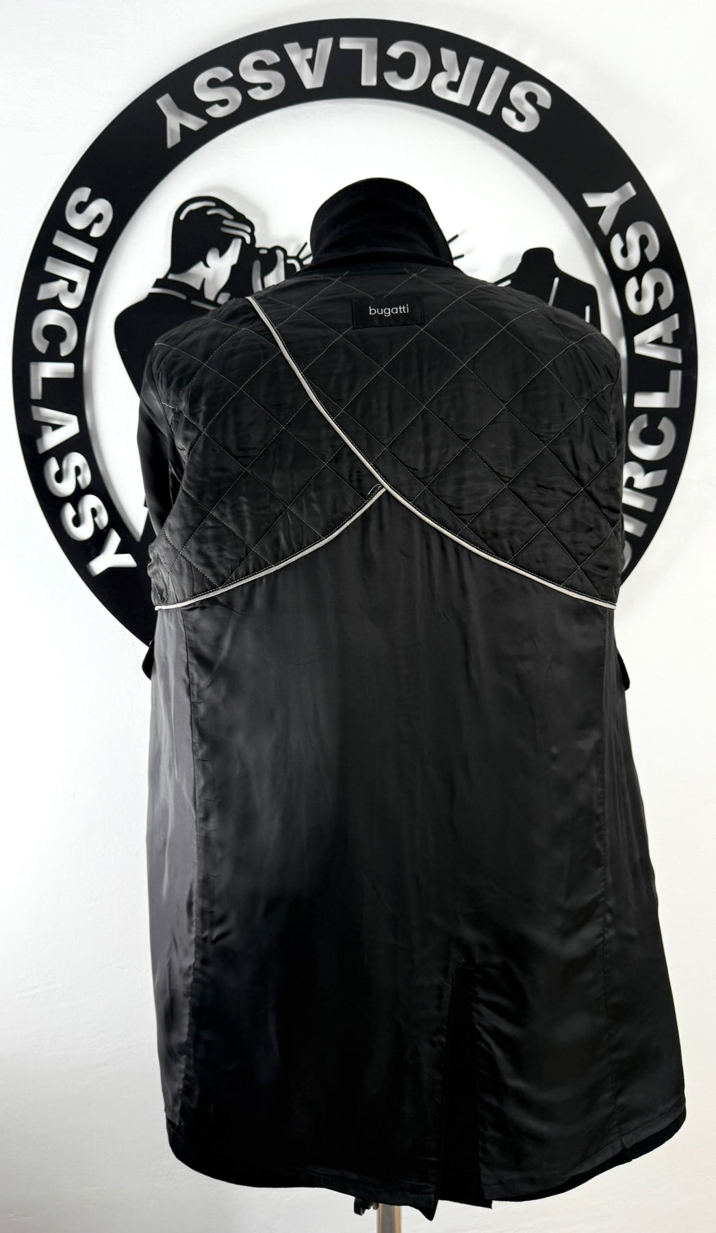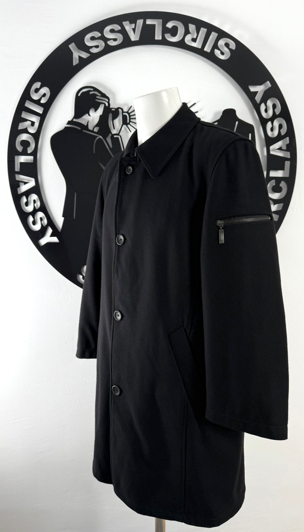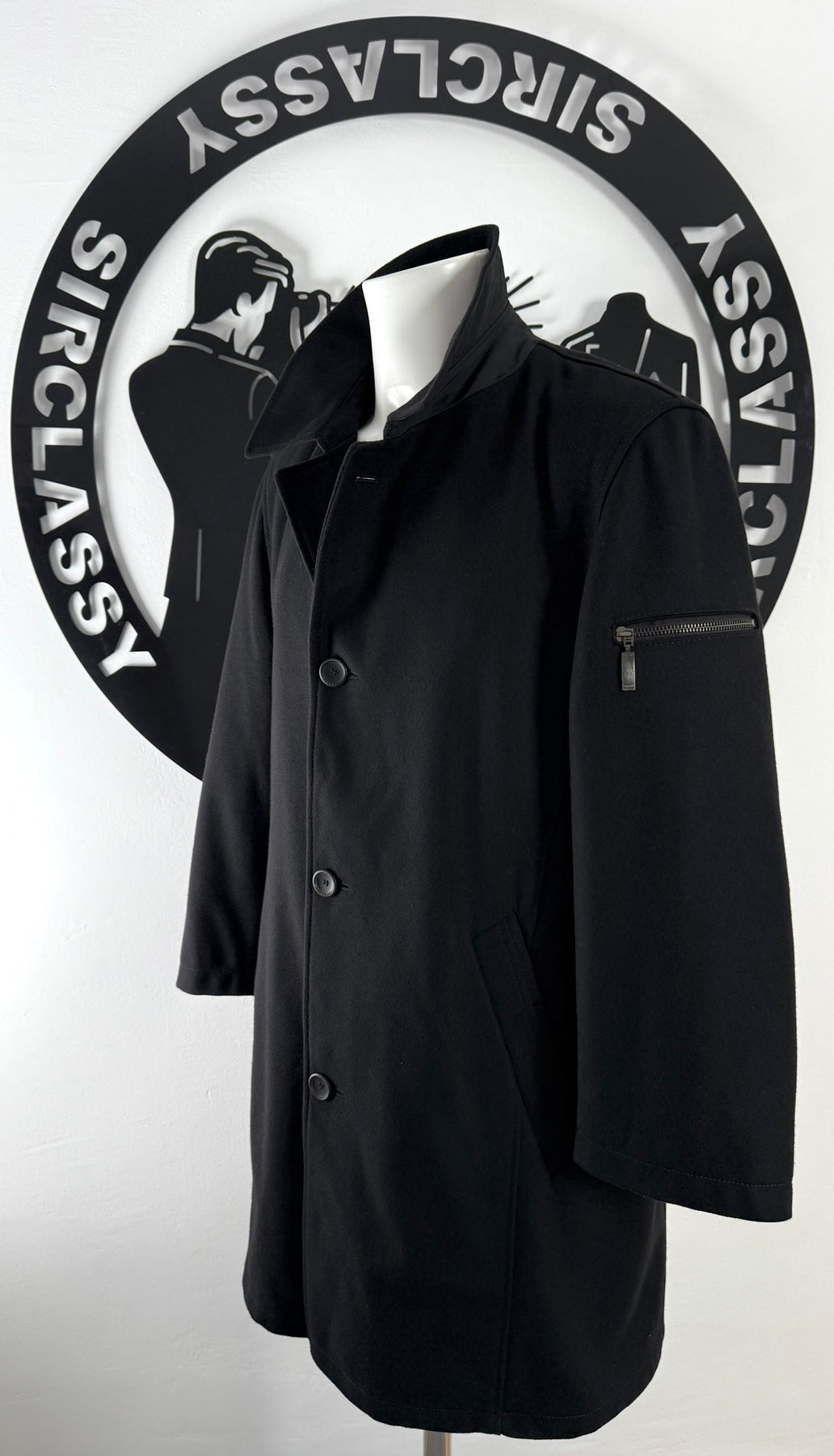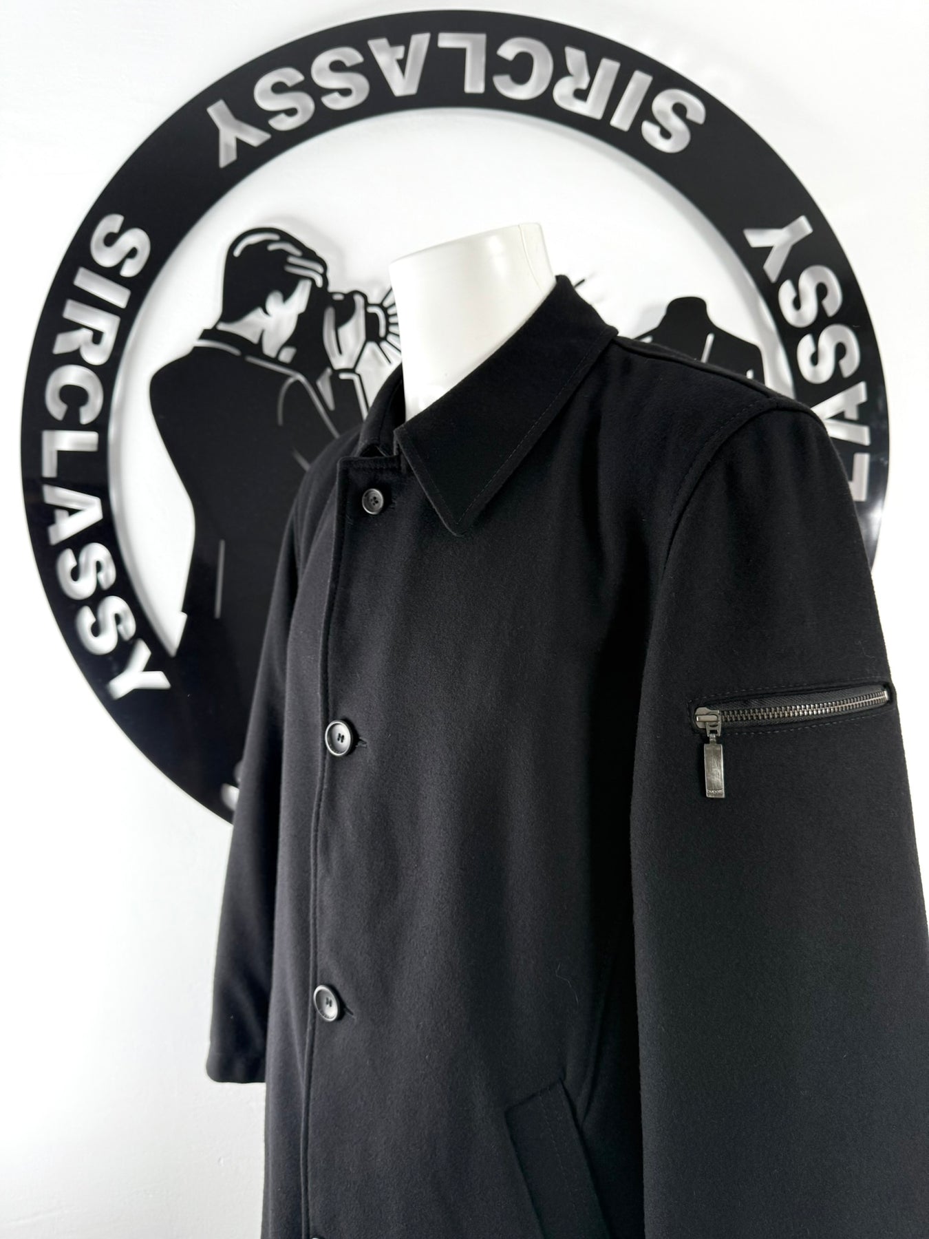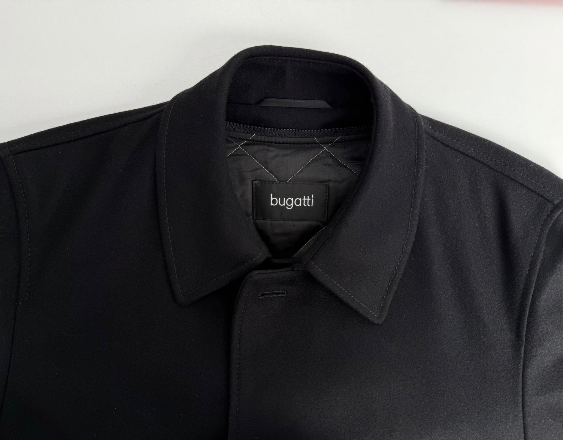 Abrigo largo de lana Bugatti color negro talla 50 (M) en perfecto estado (prácticamente nuevo con poco uso). Gran calidad de lana y poliamida con forro interior de viscosa, cuenta con todos los botones y cremalleras originales. No tiene chaleco interior.