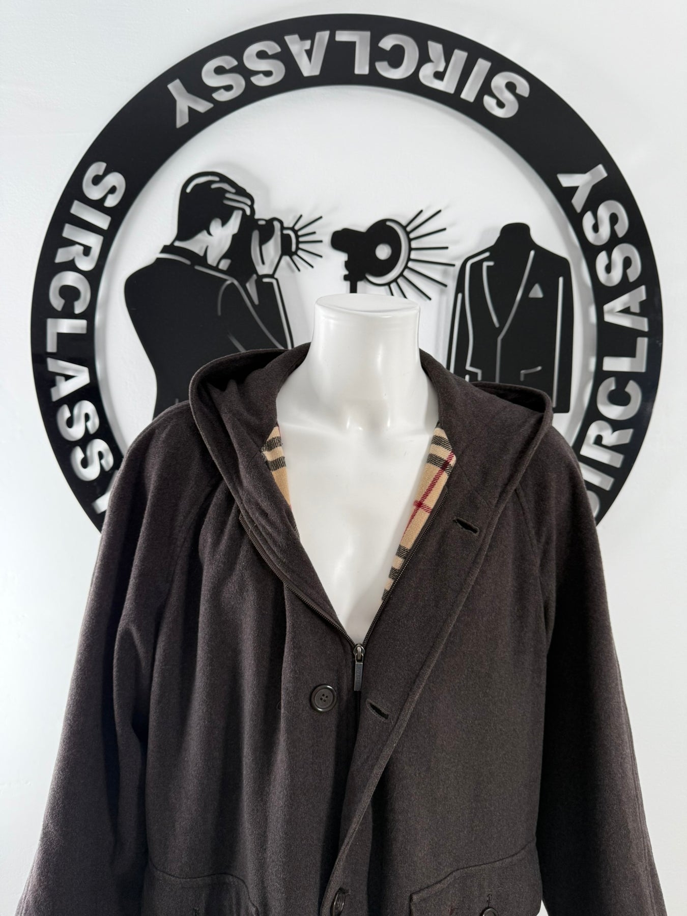 Abrigo de lana Burberry color marrón talla 52 (L) en perfecto estado (prácticamente nuevo con poco uso,). Gran calidad de lana y poliamida con forro interior de lana, acrílico y poliéster, cuenta con todos los botones y cremalleras originales.