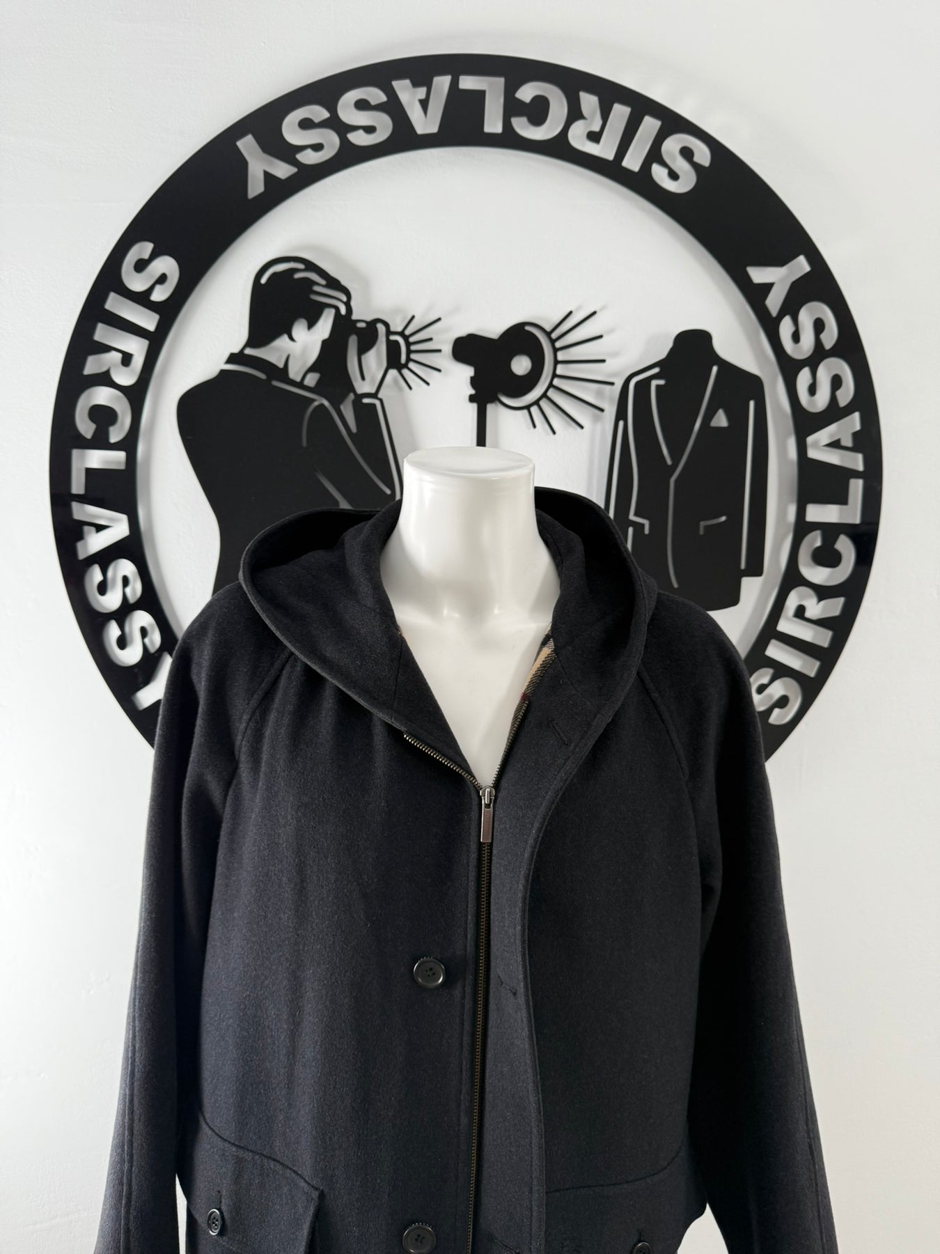 Abrigo de lana Burberry color gris oscuro talla 50 (L) en perfecto estado (prácticamente nuevo con poco uso). Gran calidad de lana y poliamida, cuenta con todos los botones y cremalleras originales.