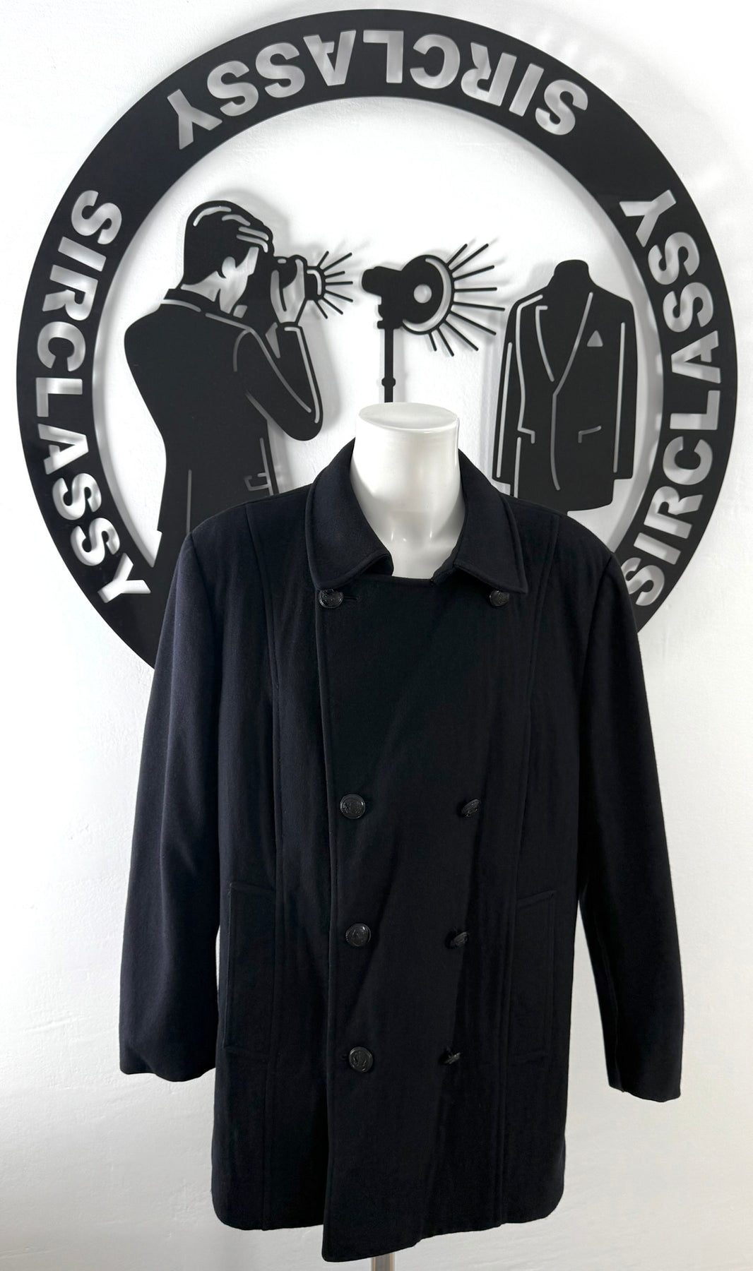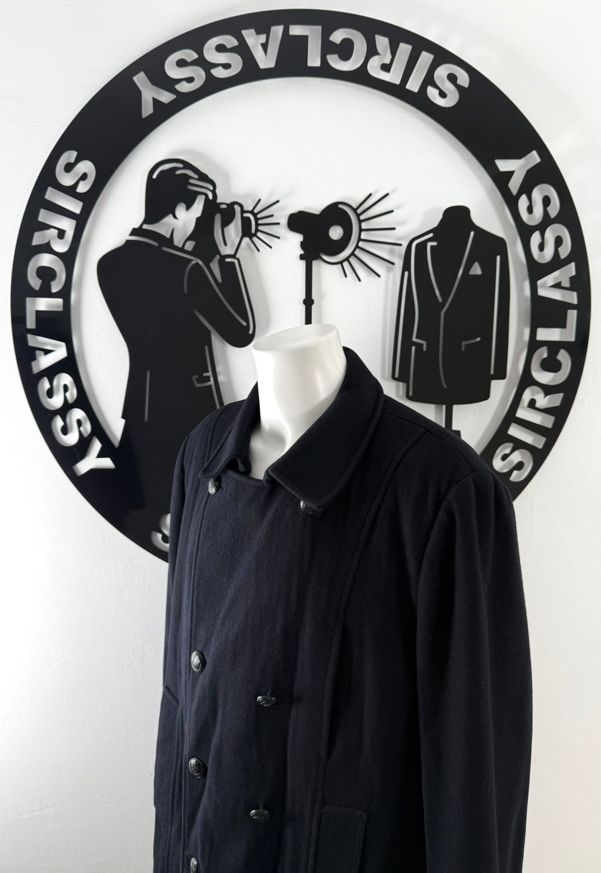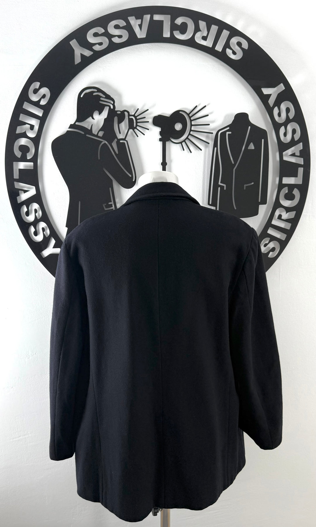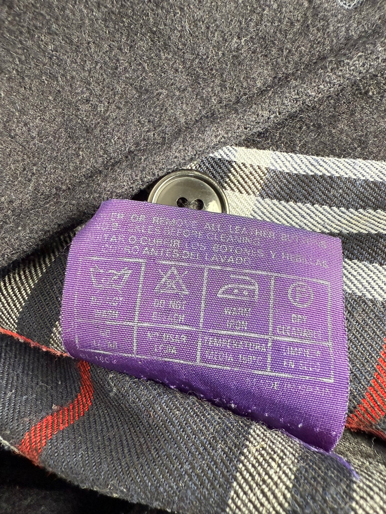 Abrigo de lana Burberrys color azul oscuro talla 52 (L) en perfecto estado (prácticamente nuevo con solo desgaste la etiqueta de composición). Gran calidad de lana y poliamida con forro interior de poliéster y viscosa, con todos los botones originales.