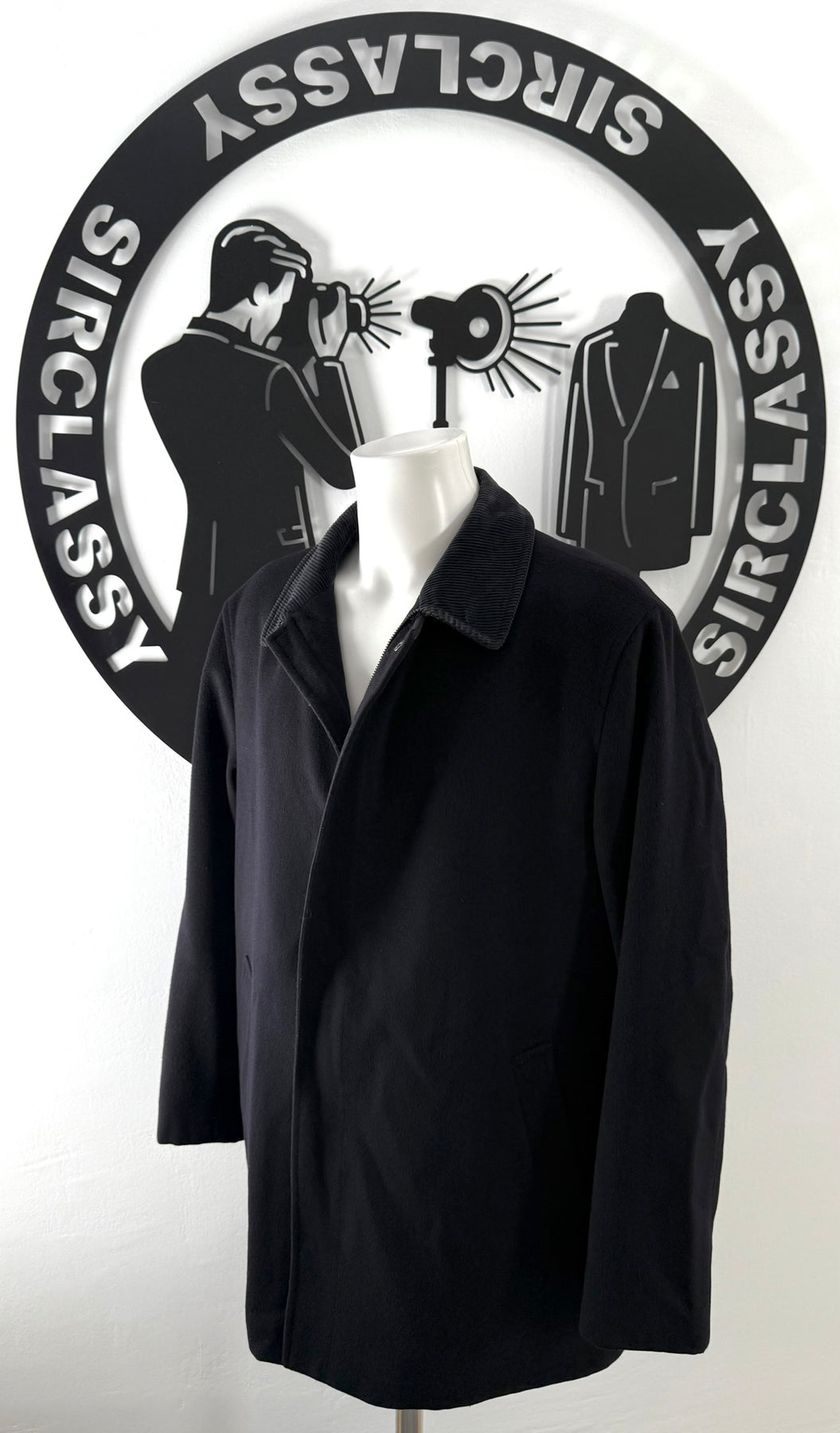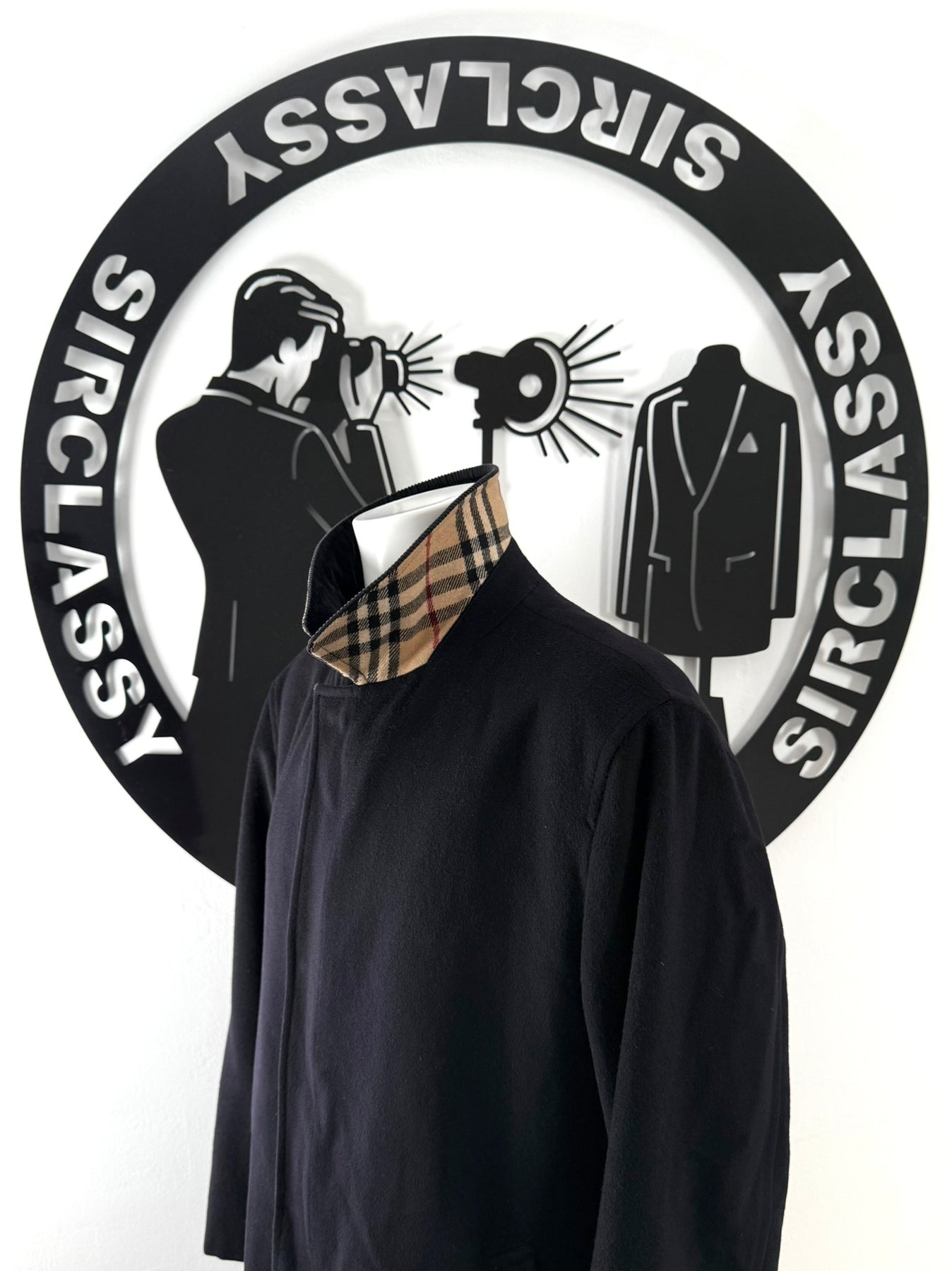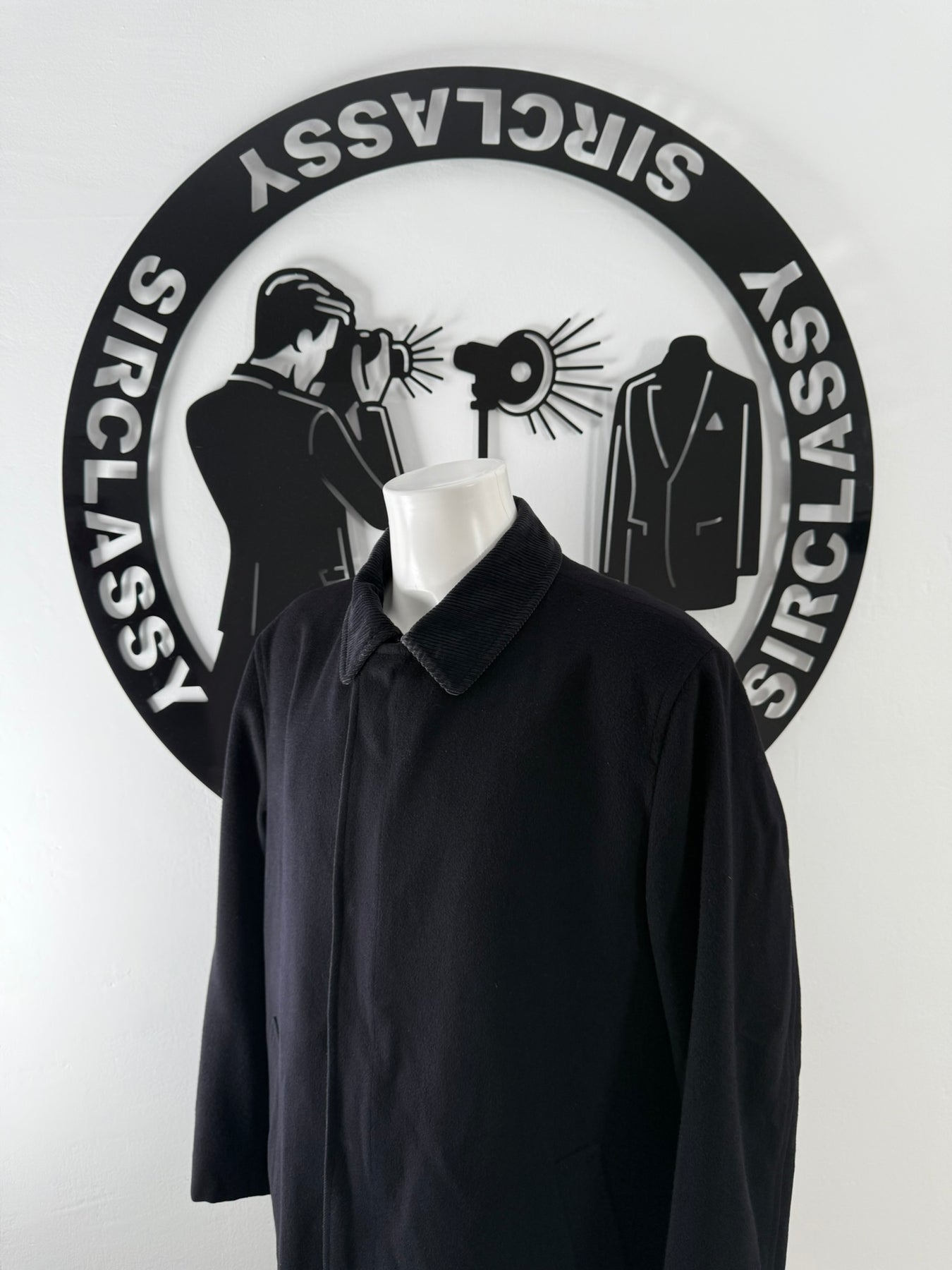 Abrigo de lana Burberry color azul oscuro talla 5 (L) en perfecto estado (prácticamente nuevo con poco uso). Gran calidad de lana y poliamida, con todos los botones y cremallera originales.