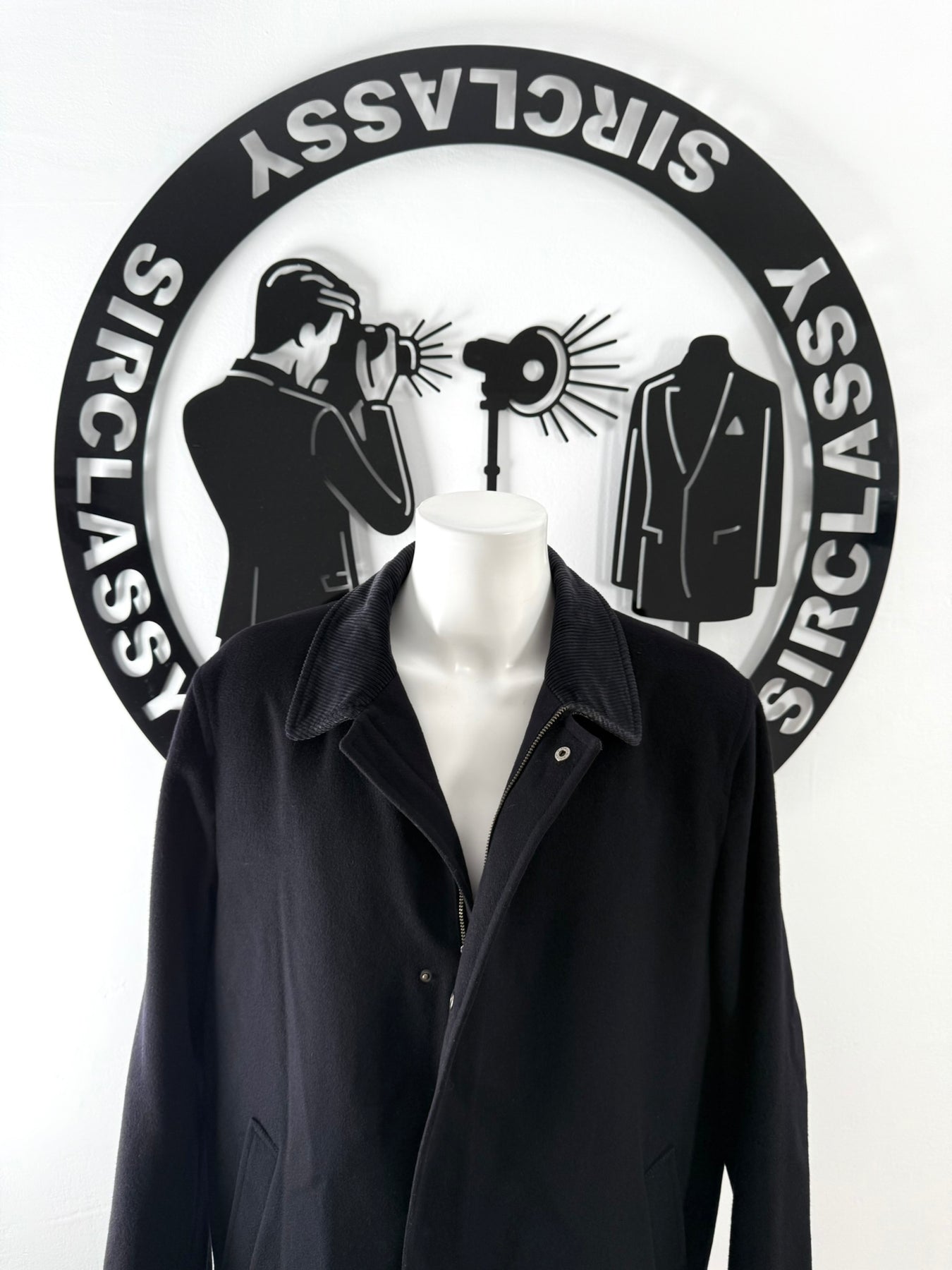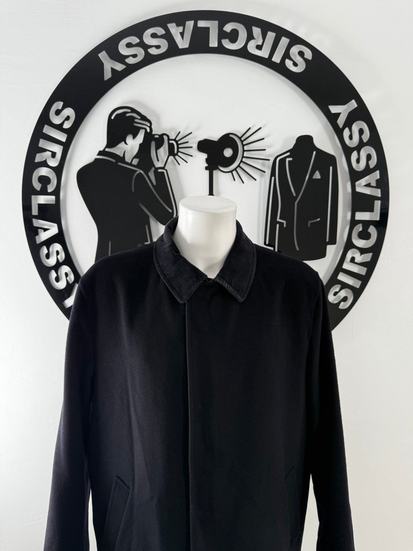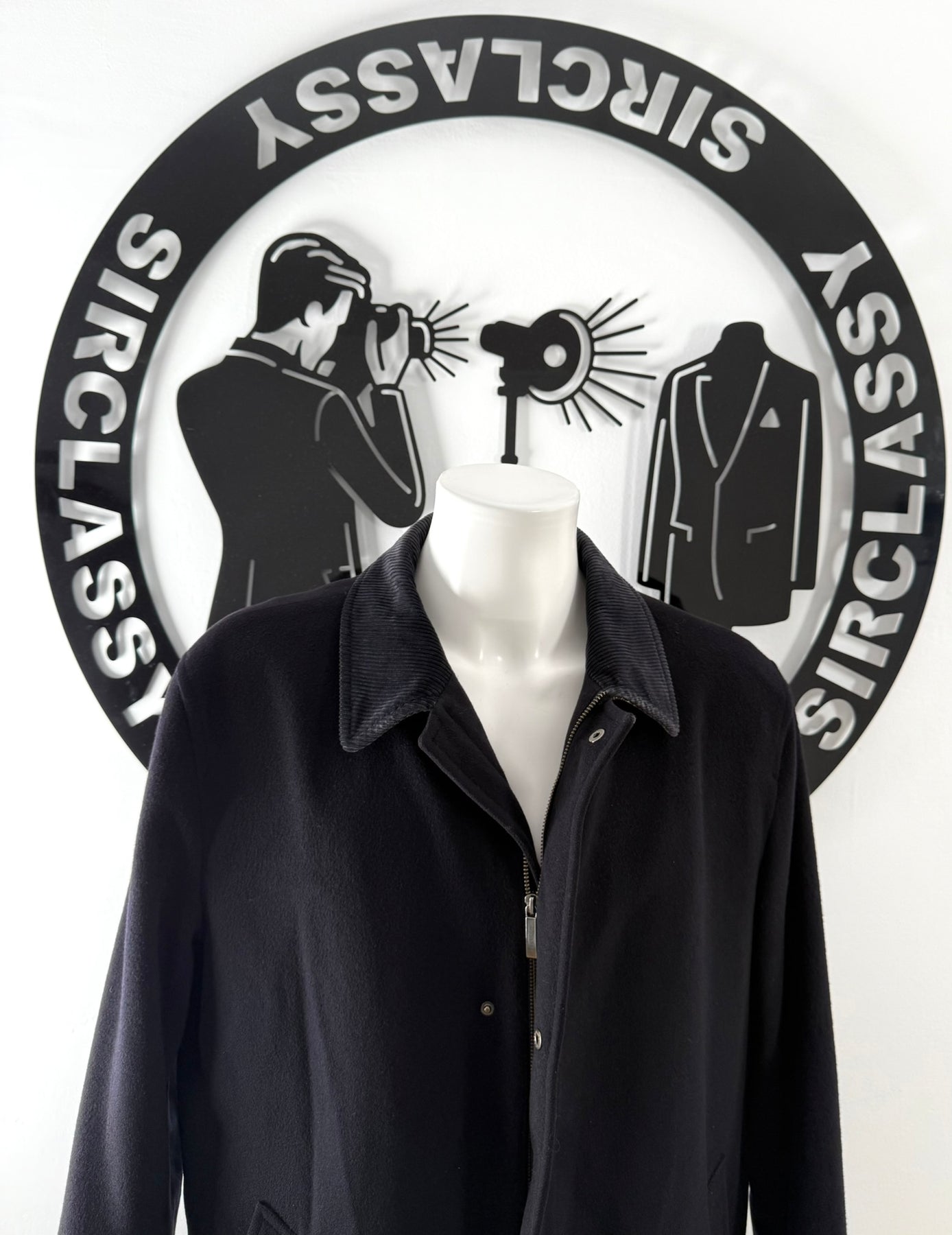 Abrigo de lana Burberry color azul oscuro talla 5 (L) en perfecto estado (prácticamente nuevo con poco uso). Gran calidad de lana y poliamida, con todos los botones y cremallera originales.