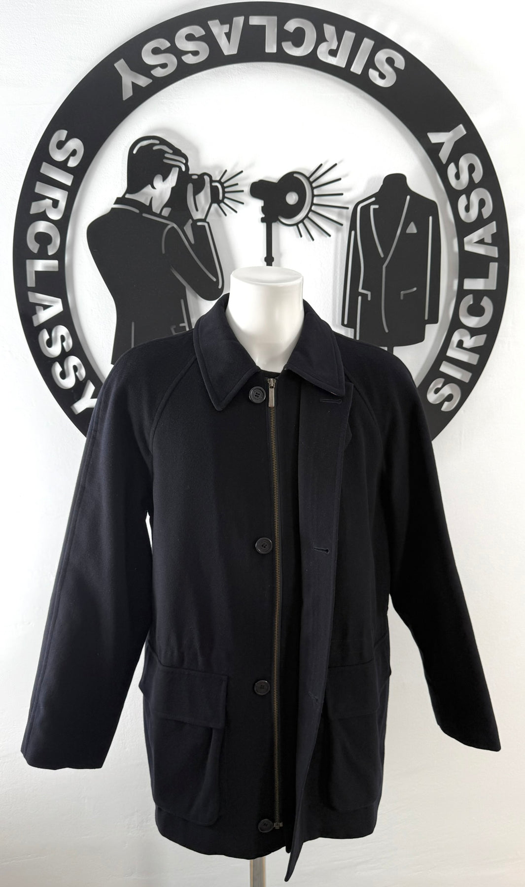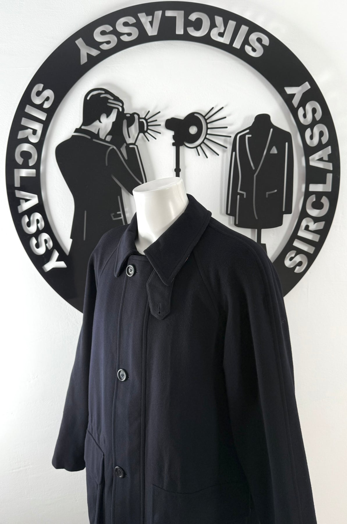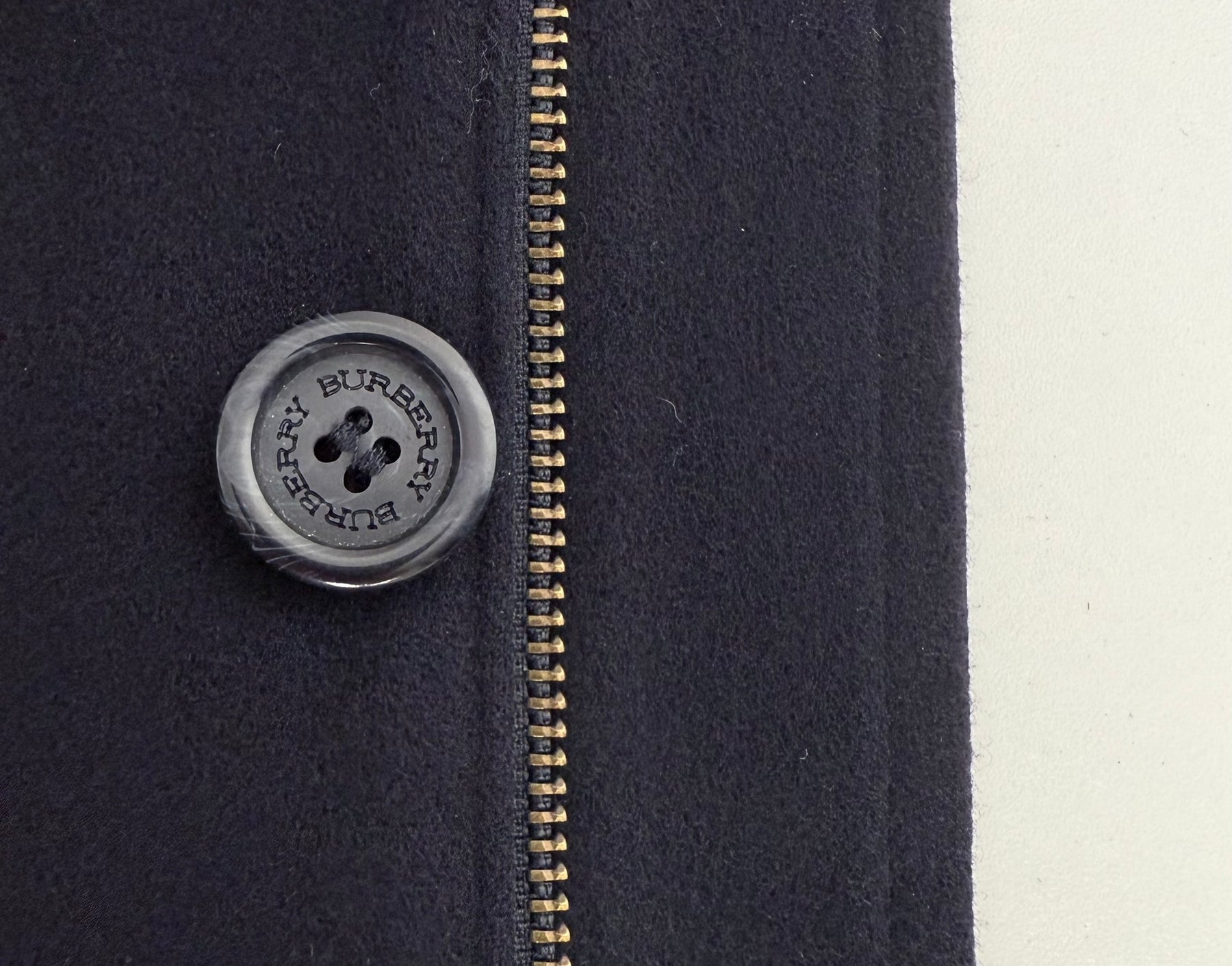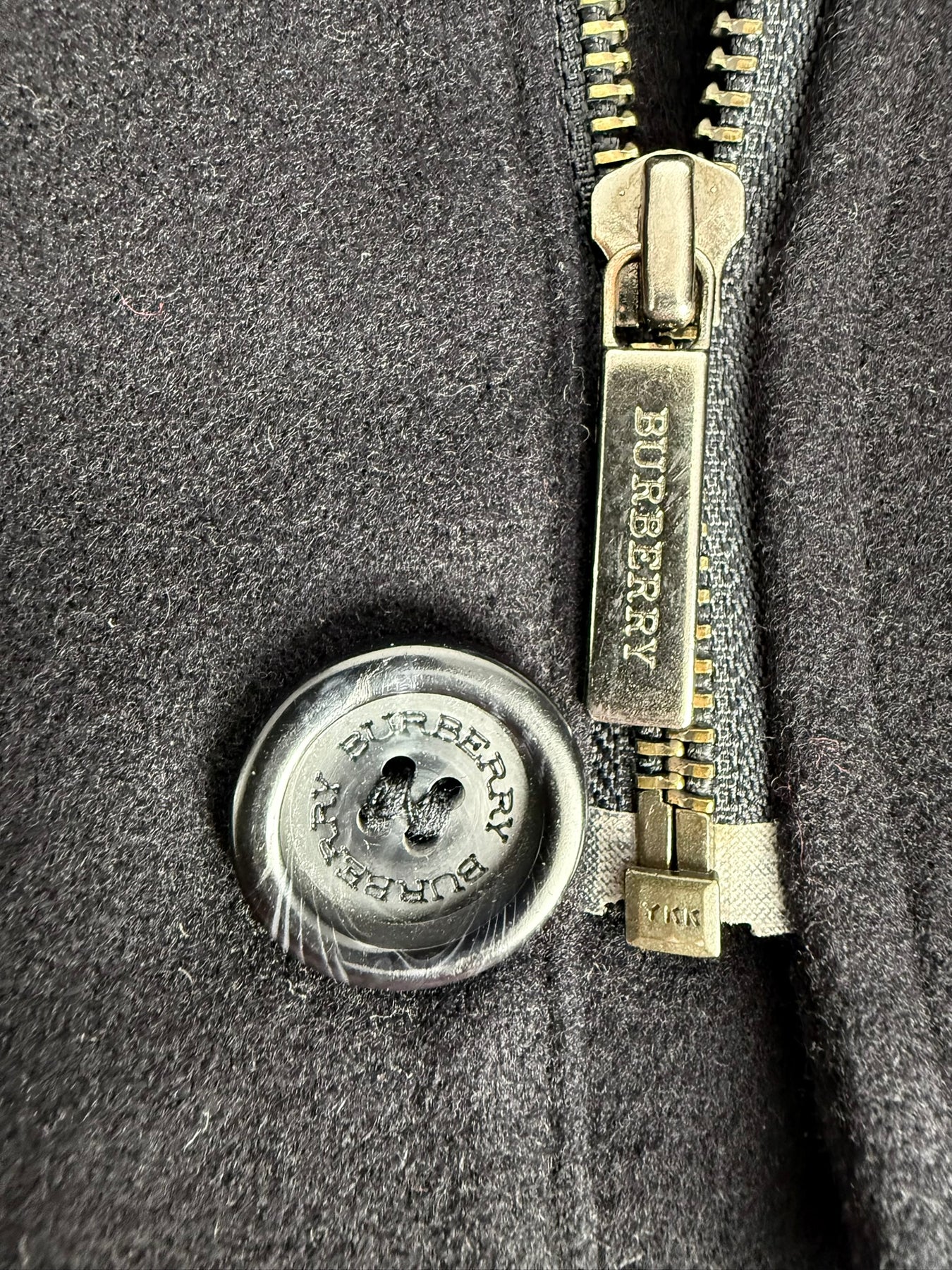 Abrigo de lana Burberry color azul oscuro talla 4 (L) en perfecto estado (prácticamente nuevo con poco uso). Gran calidad de lana y poliamida con forro interior de poliéster, cuenta con todos los botones y cremalleras originales.