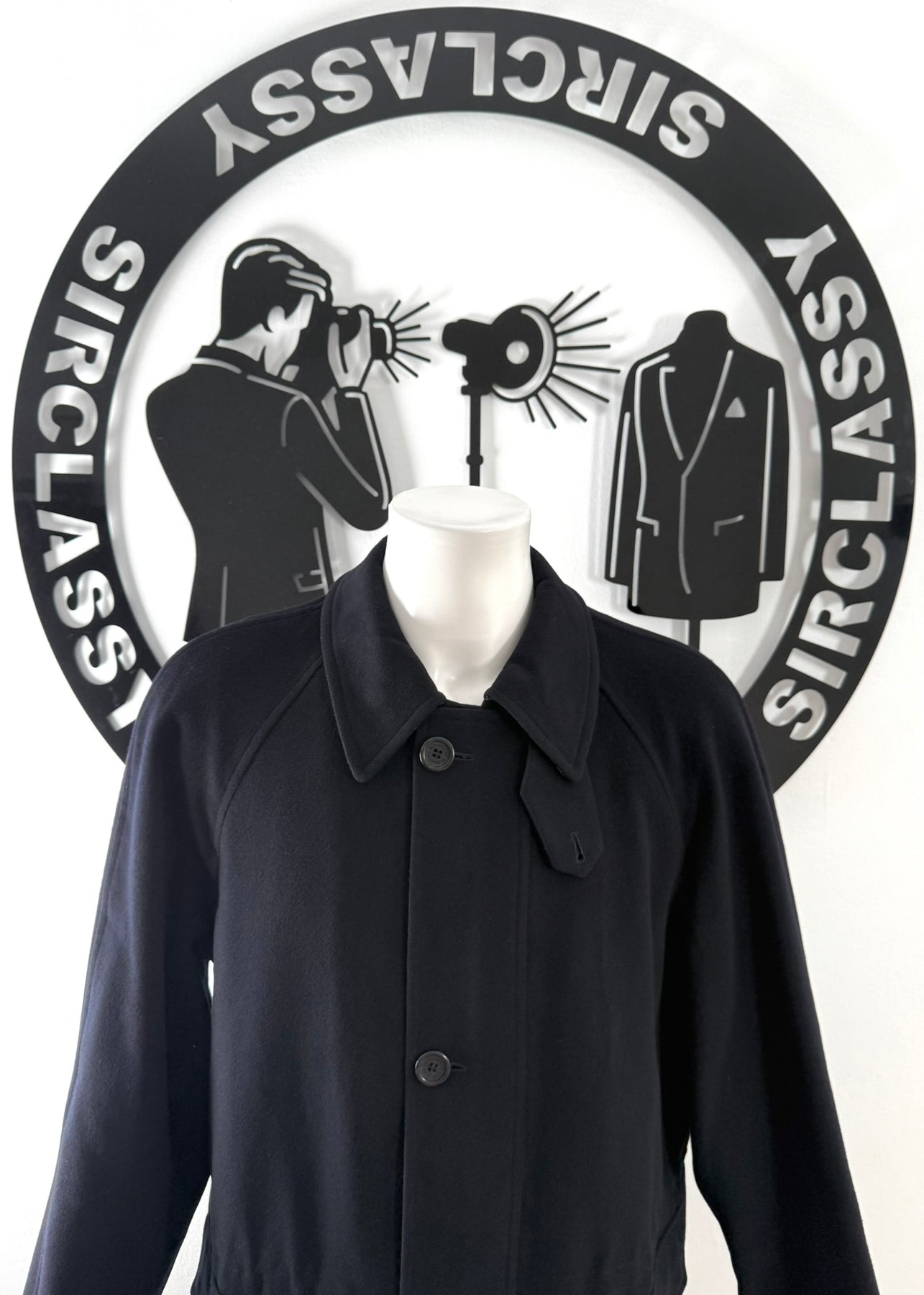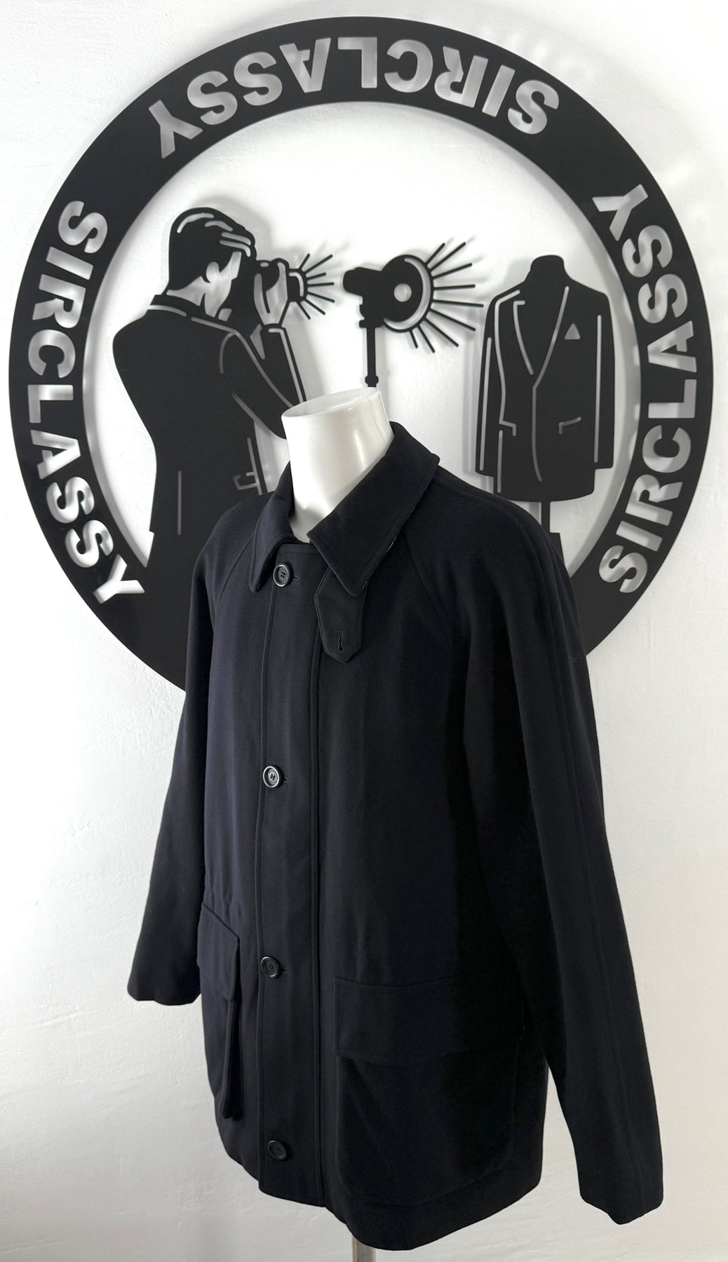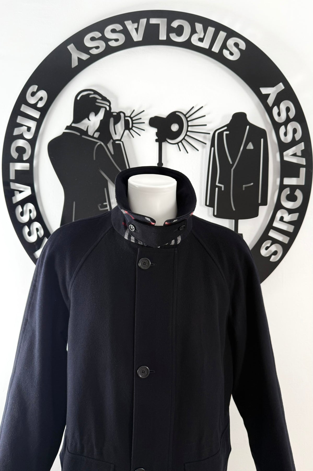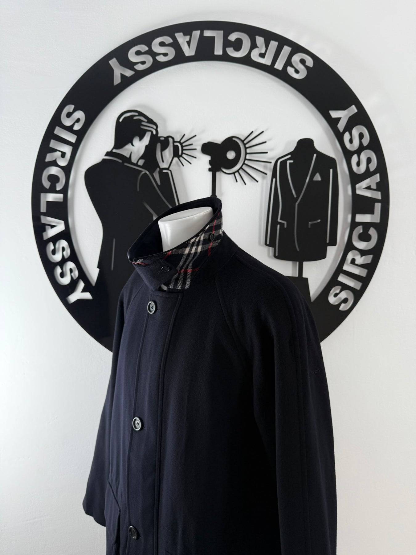 Abrigo de lana Burberry color azul oscuro talla 4 (L) en perfecto estado (prácticamente nuevo con poco uso). Gran calidad de lana y poliamida con forro interior de poliéster, cuenta con todos los botones y cremalleras originales.