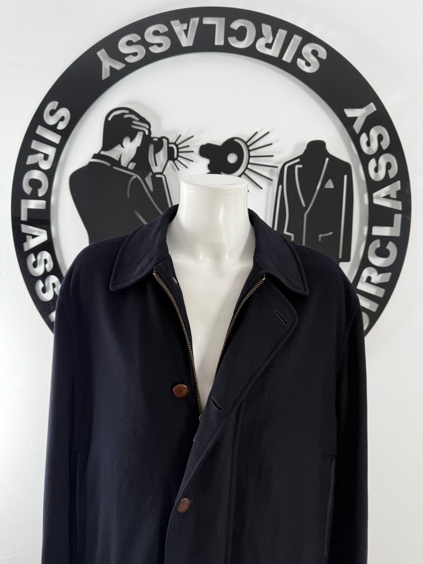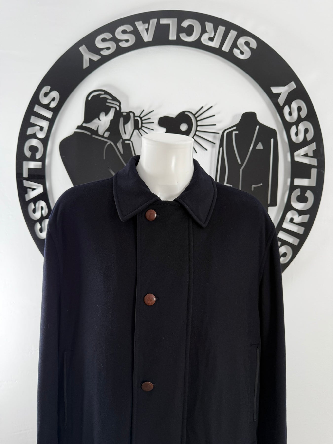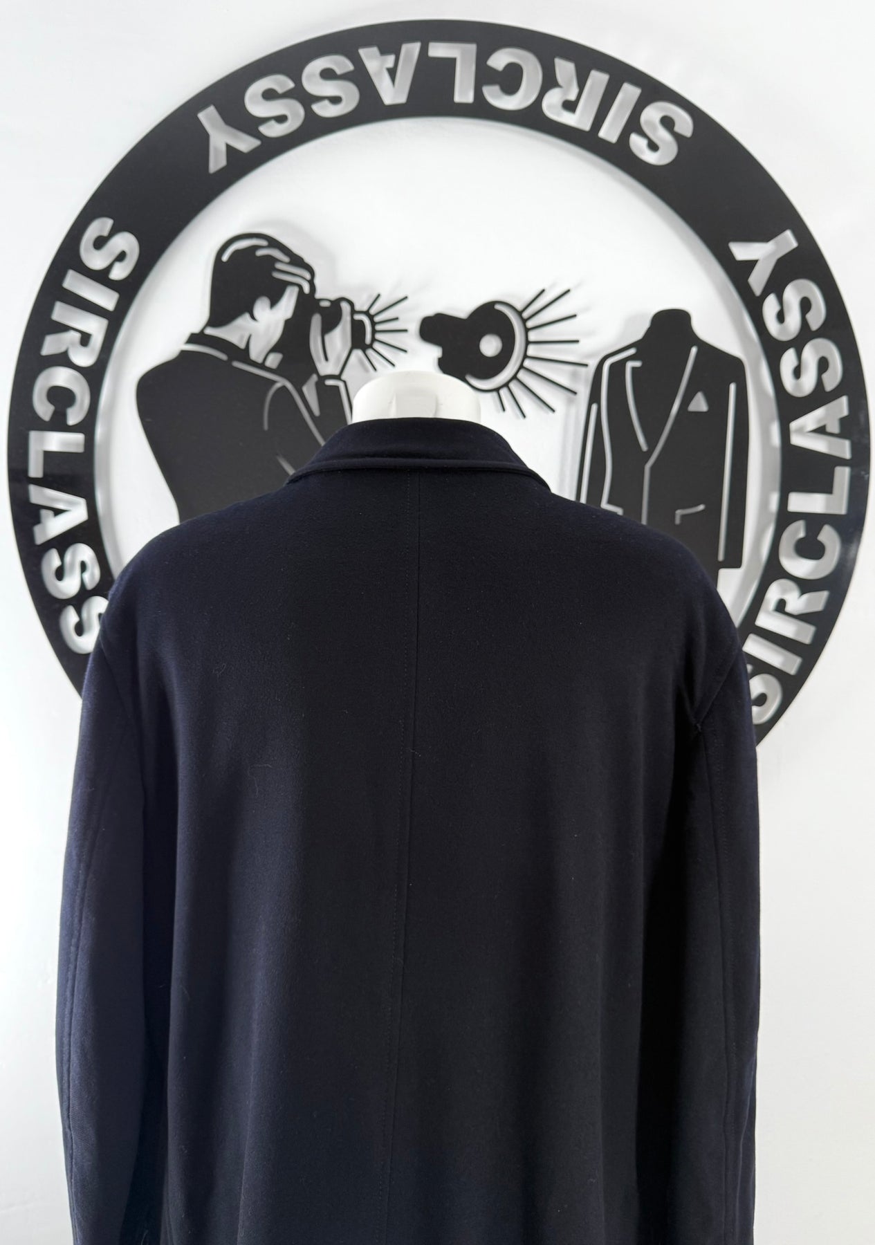 Abrigo de lana Corneliani color azul oscuro talla 52 (L) en perfecto estado (prácticamente nuevo con poco uso). Gran calidad de lana con forro interior de viscosa, cuenta con todos los botones y cremalleras originales.