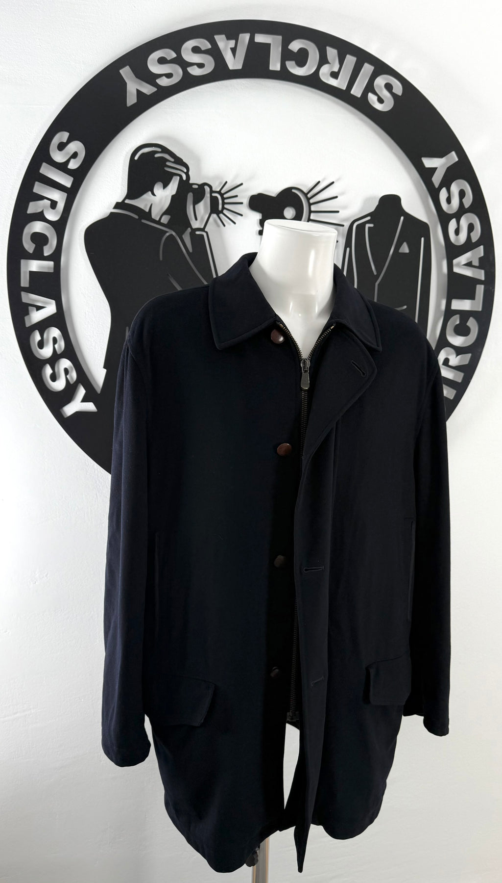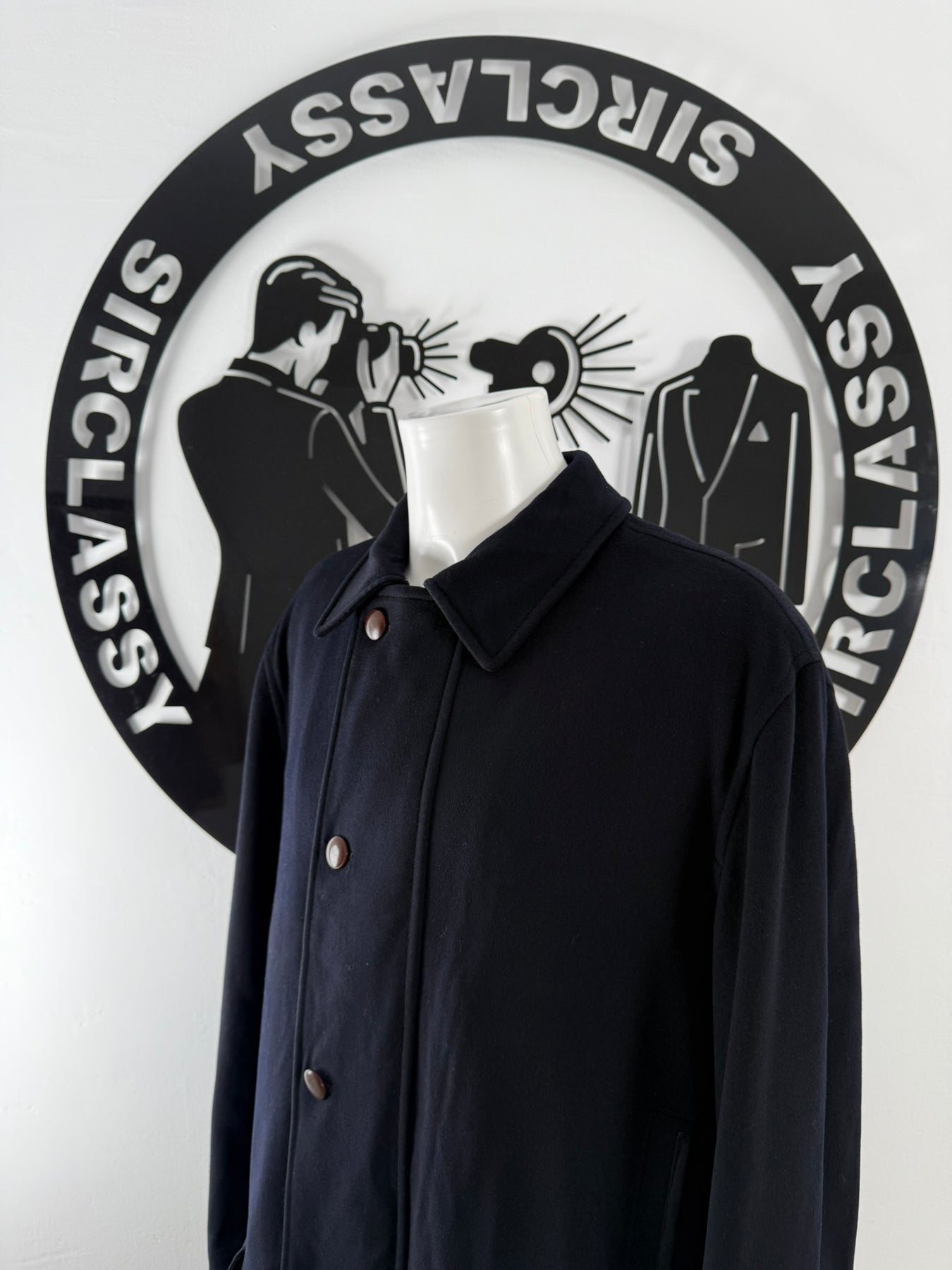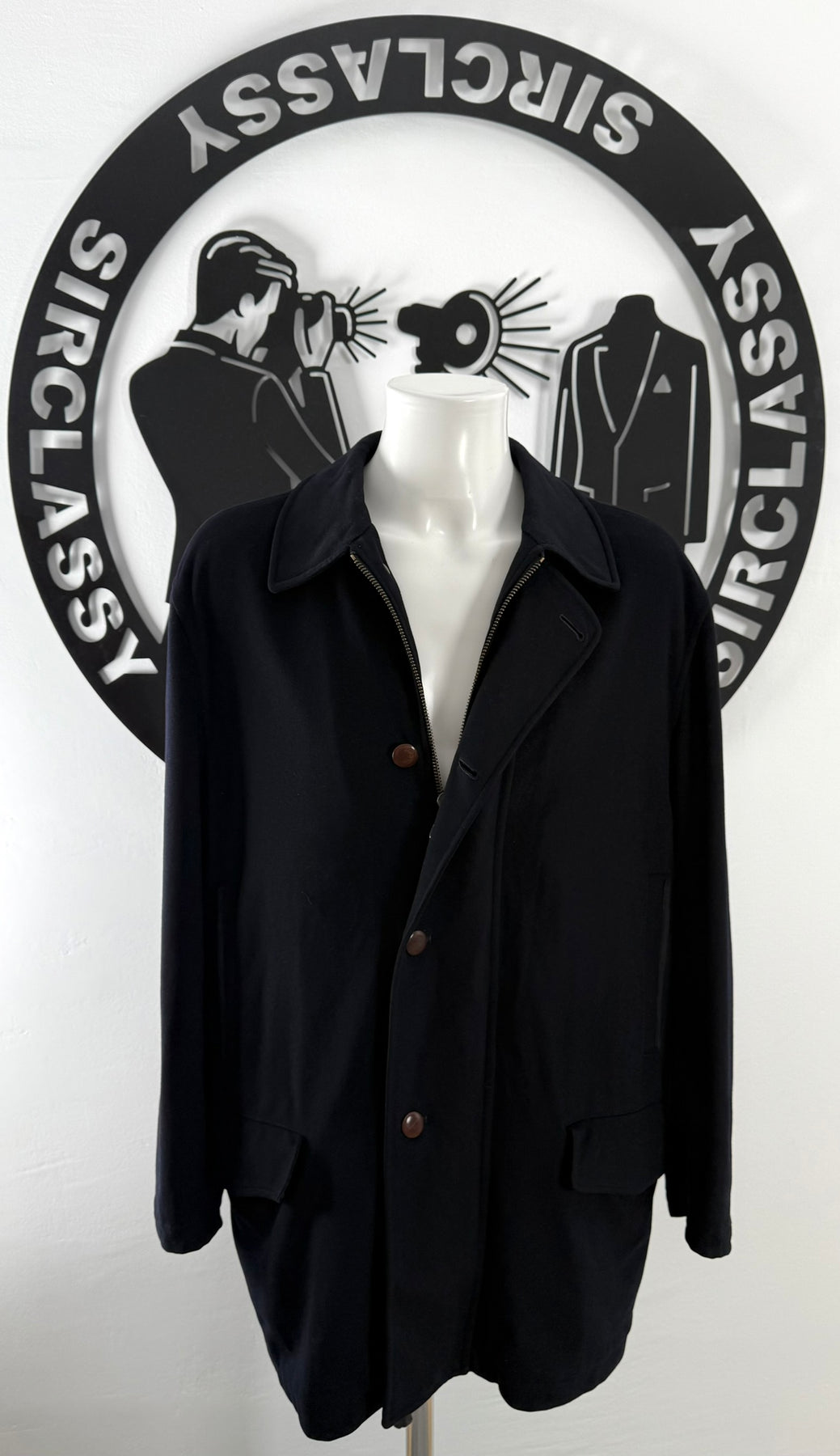 Abrigo de lana Corneliani color azul oscuro talla 52 (L) en perfecto estado (prácticamente nuevo con poco uso). Gran calidad de lana con forro interior de viscosa, cuenta con todos los botones y cremalleras originales.